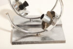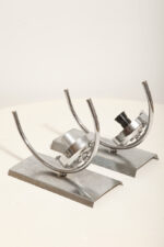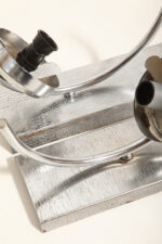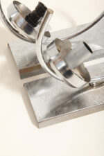 Stawiam na to, że kinkiet jest ręczną robotą jakiegoś niedużego włoskiego zakładu którego właściciel miał różnego typu sny i marzenia. Trochę w nich był o kosmosie, trochę o eleganckich lampach, nieco brutalizmu i wyszło co wyszło. Wszystkiego po trochu. I to jest niewątpliwa zaleta tych kinkietów (mamy drugi bardzo podobny, ale na tyle inny, że wystawiliśmy go oddzielnie – link do niego umieszczamy na dole). Dla ułatwienia i pokazania różnic między nimi zamieściliśmy kilka zdjęć gdy są obok siebie. Moim zdaniem można je potraktować równie dobrze jako komplet.