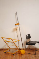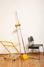 I znowu prostota jest siłą tego stolika. Wózek stosunkowo ciężki, szklane blaty są wkładane luzem w konstrukcję. Czyli są zamontowane grawitacyjnie. Gdyby nie odkryte onegdaj przyciąganie ziemskie mogłyby odfrunąć w siną dal. W rogach konstrukcji która je podtrzymuje zainstalowane są silikonowe dystanse które amortyzują i zabezpieczają szklane blaty na styku z zimnym i żółtym metalem.
