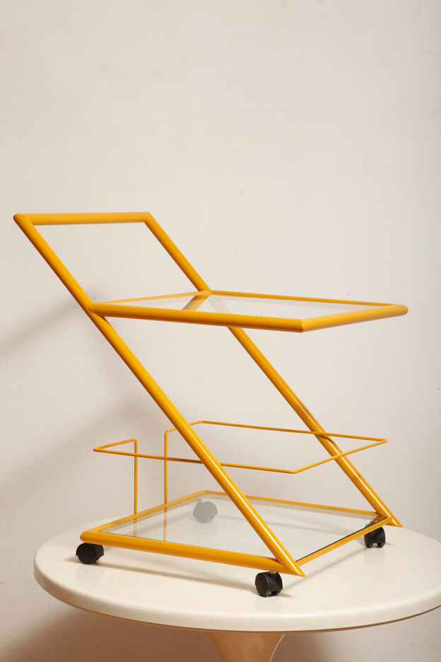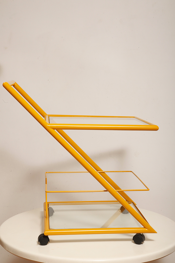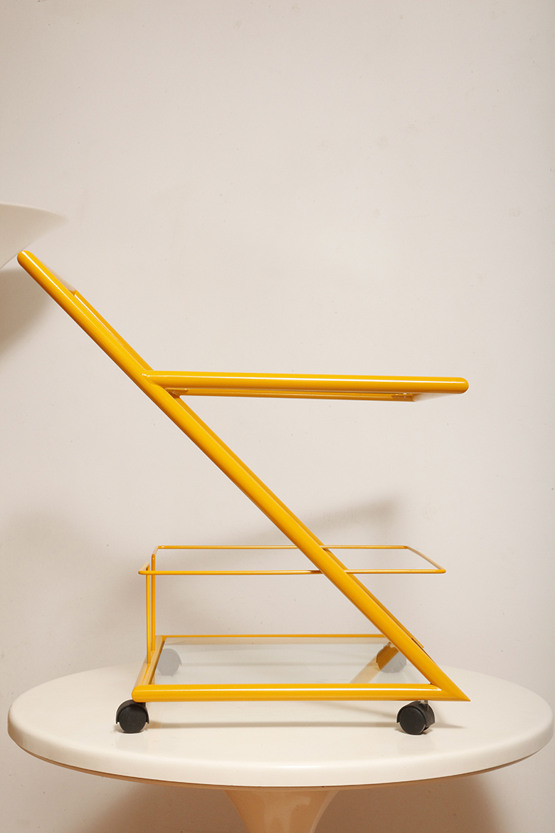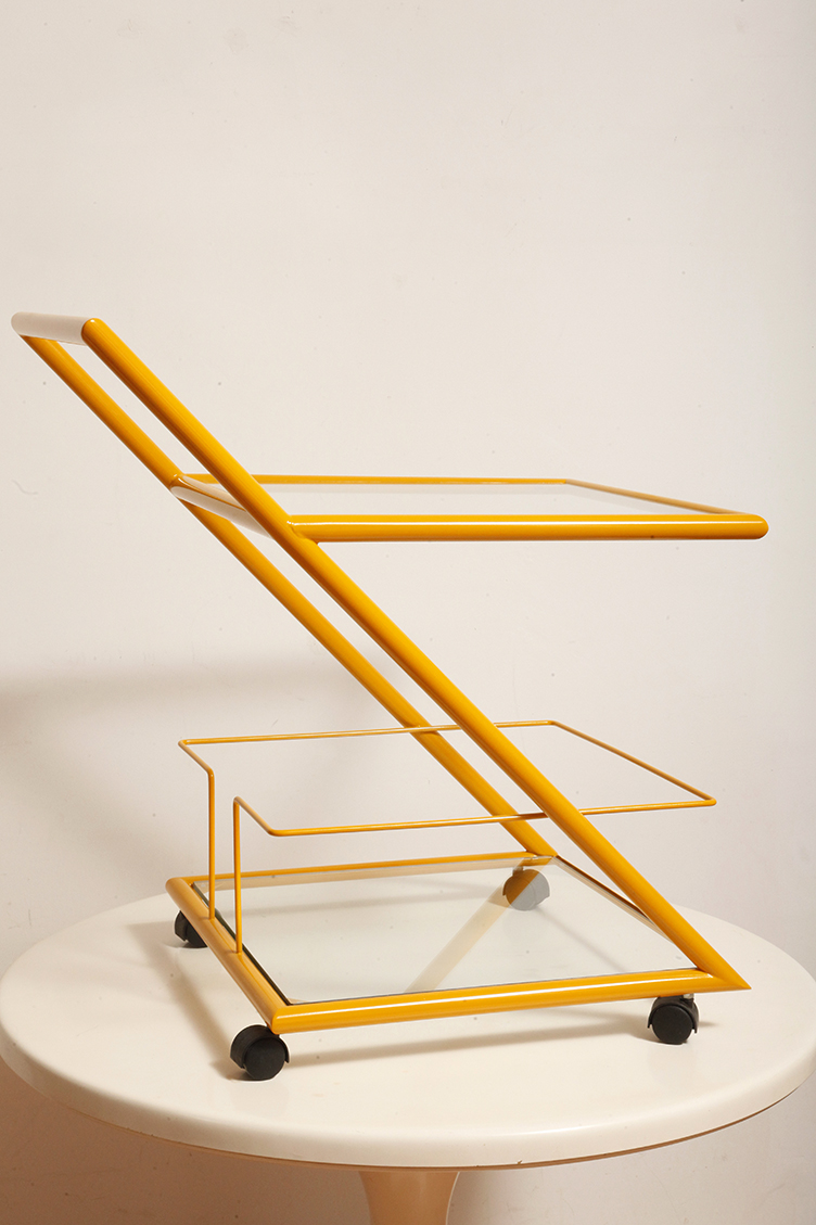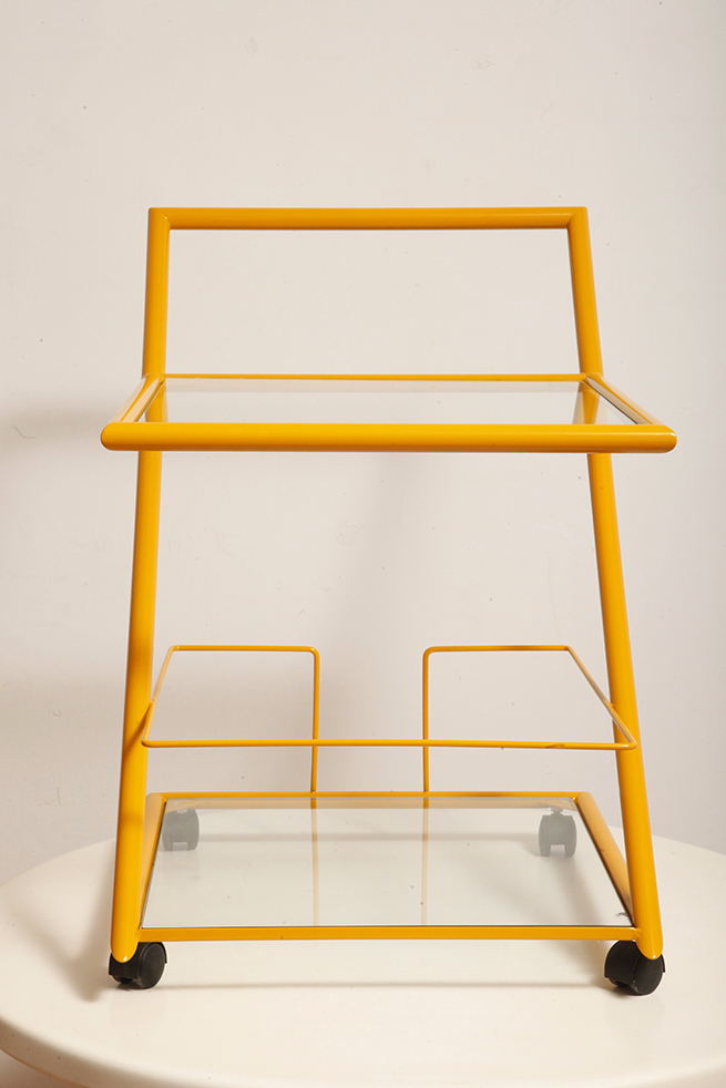 Wózek barowy jest klasycznym reprezentantem lat z których pochodzi (lata 80.). Ze względu na swoją prostą bryłę i śmiałe linie wydaje się, że bez problemu wpisze się w każdą przestrzeń urządzoną w dowolnym stylu.