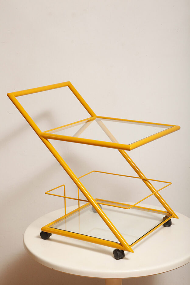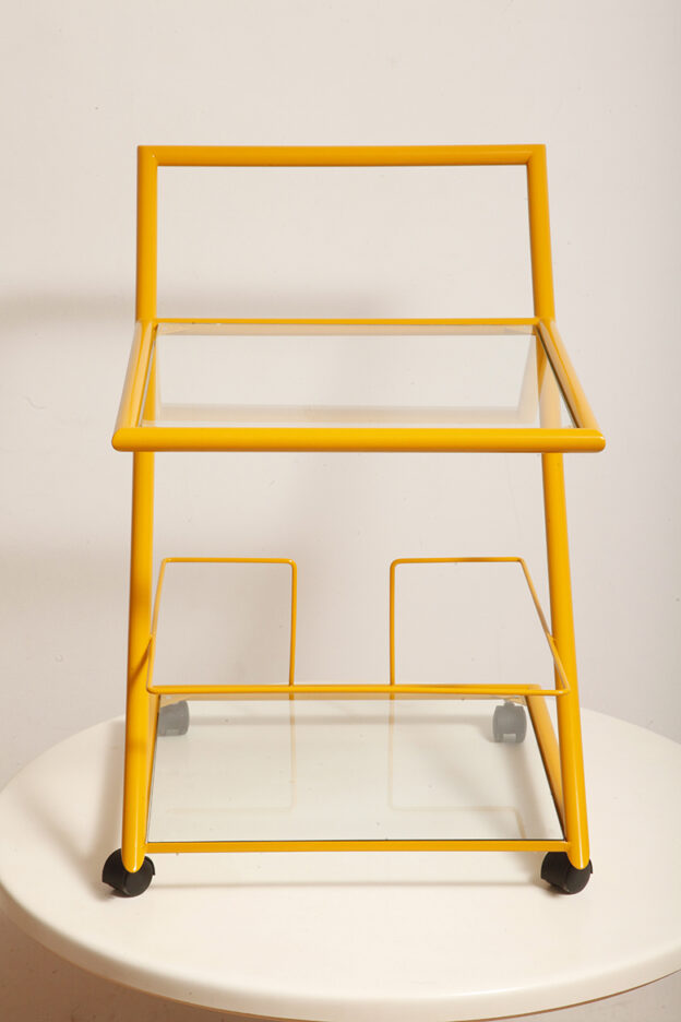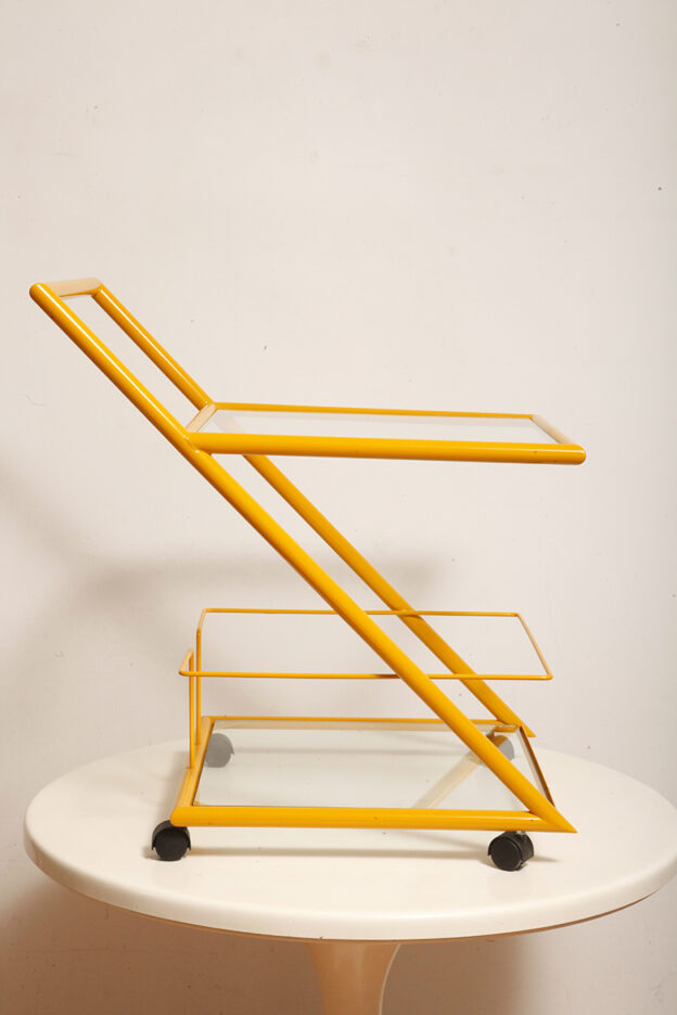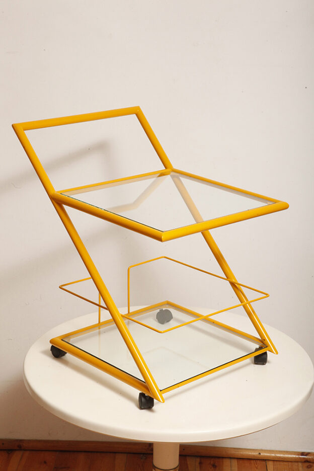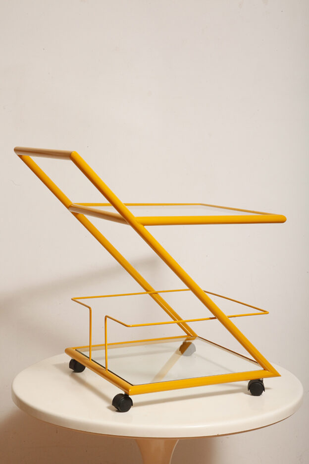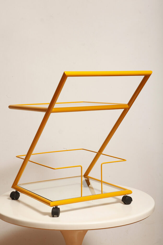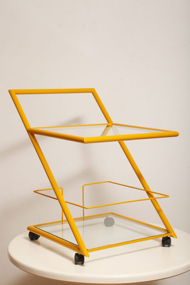 Wózek barowy jest klasycznym reprezentantem lat z których pochodzi (lata 80.). Ze względu na swoją prostą bryłę i śmiałe linie wydaje się, że bez problemu wpisze się w każdą przestrzeń urządzoną w dowolnym stylu.