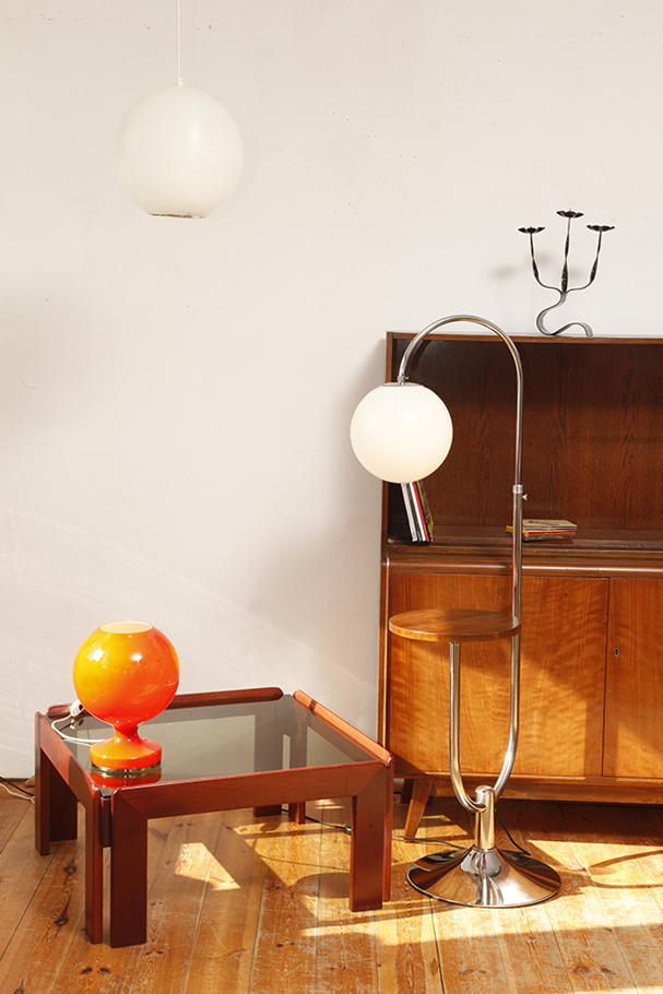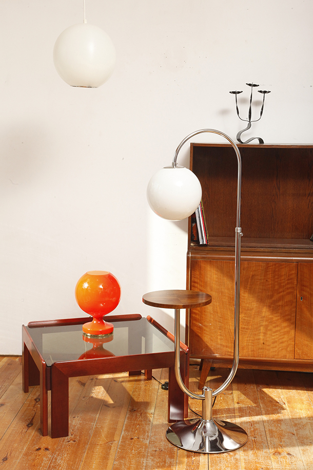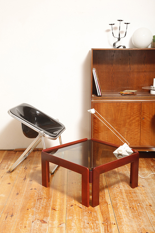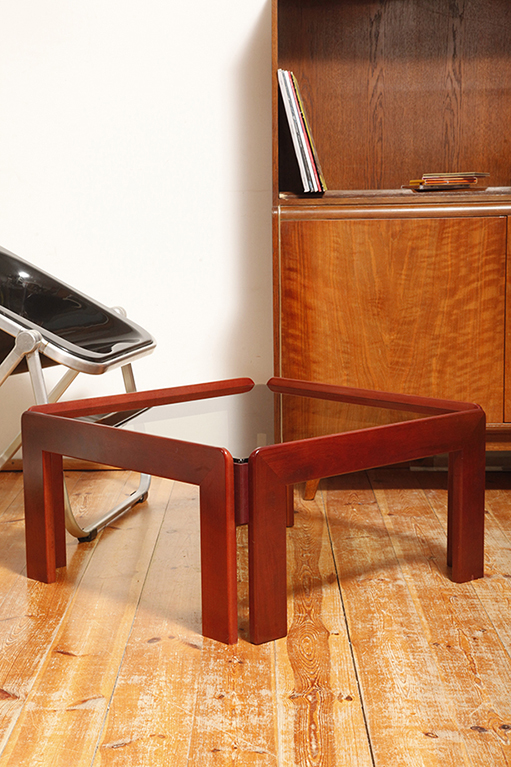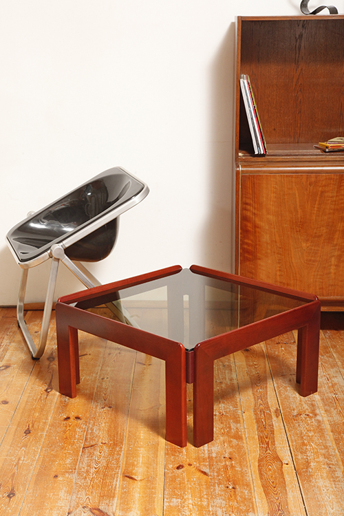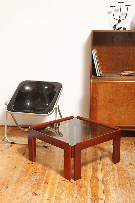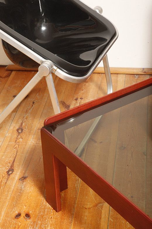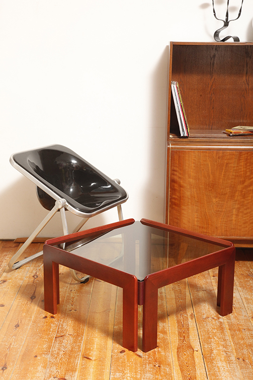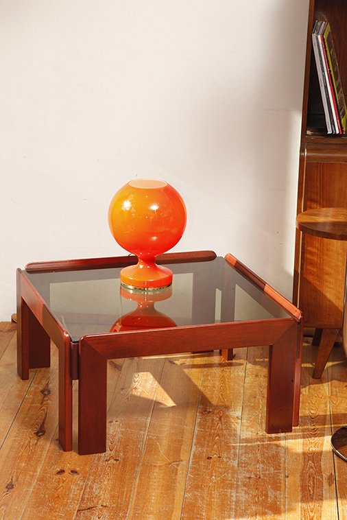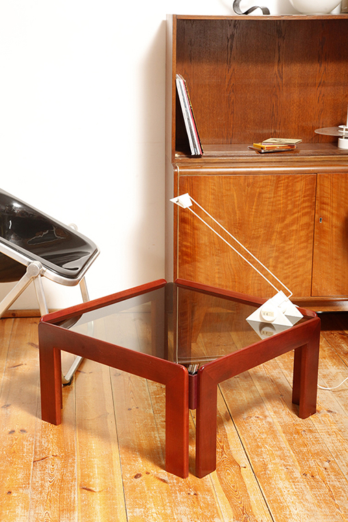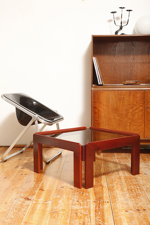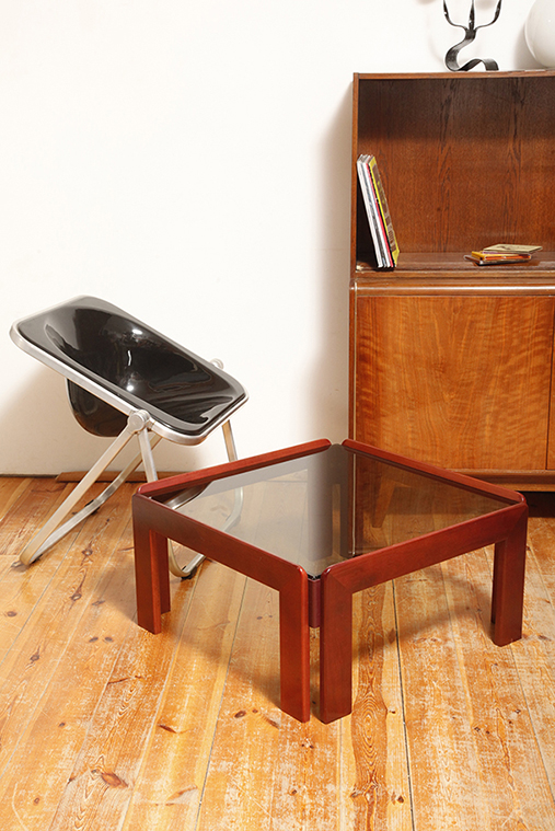 Stolik zaprojektowany przez Afrę i Tobię Scarpa we Włoszech, znanych z wyrafinowanego podejścia do formy i materiałów. Drewniana konstrukcja wspiera gruby szklany blat, który nadaje stolikowi jego charakterystyczny charakter. Stolik przez swoją lekką konstrukcję i półprzepuszczalny szklany blat nie przytłacza pomieszczenia w który stoi. Jest i zarazem jakby go poniekąd nie było.
