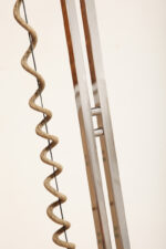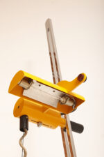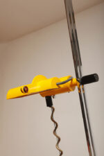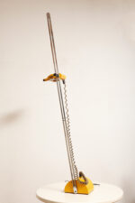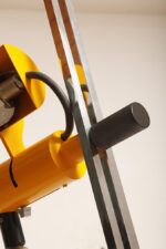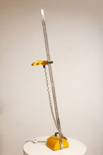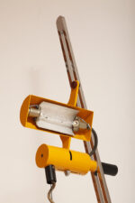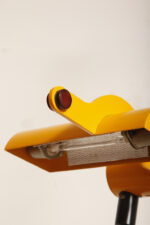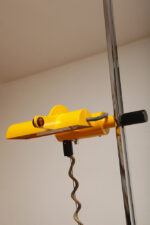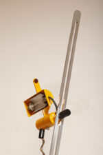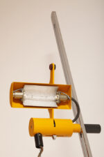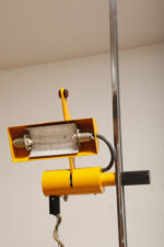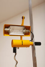 Nasza posiada metalową podstawę z chromowaną prowadnicą po której można przesuwać klosz zwalniając duże czarne pokrętło umieszczone po drugiej stronie klosza. Klosz można obracać o 90 stopni. Dzięki czemu lamp z powodzeniem może świecić do dołu jak i do góry.