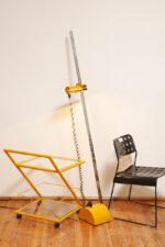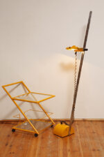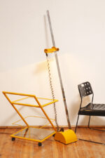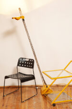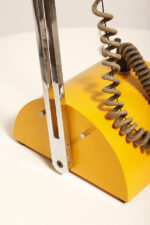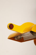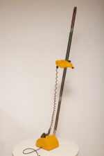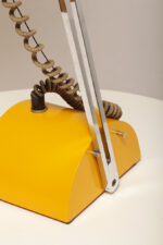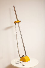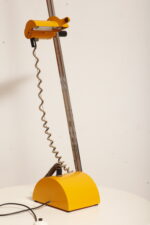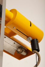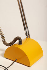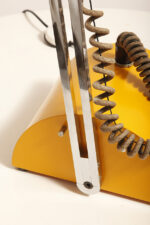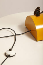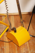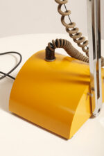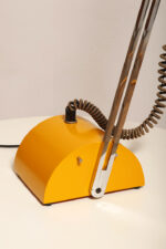 Lampa jest w bardzo dobrym stanie bo przez nas na nowo polakierowana na kolor melonowy (żółty). Jedynie oryginalny zasilający klosz „kabel telefoniczny” nosi oznaki wieku. W końcu to lampa vinatage.