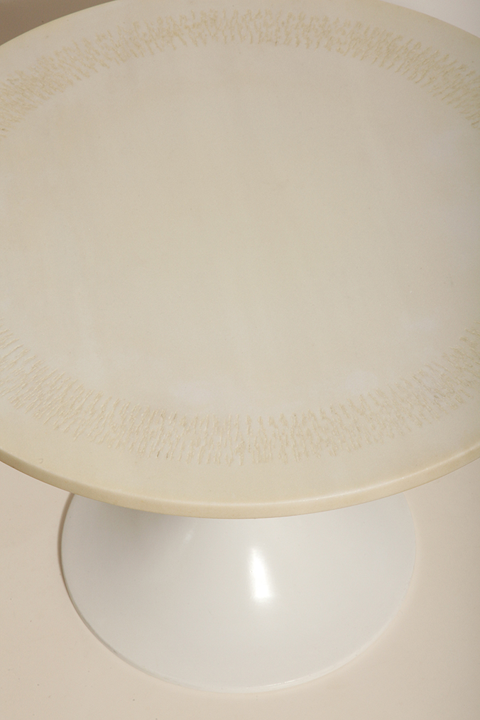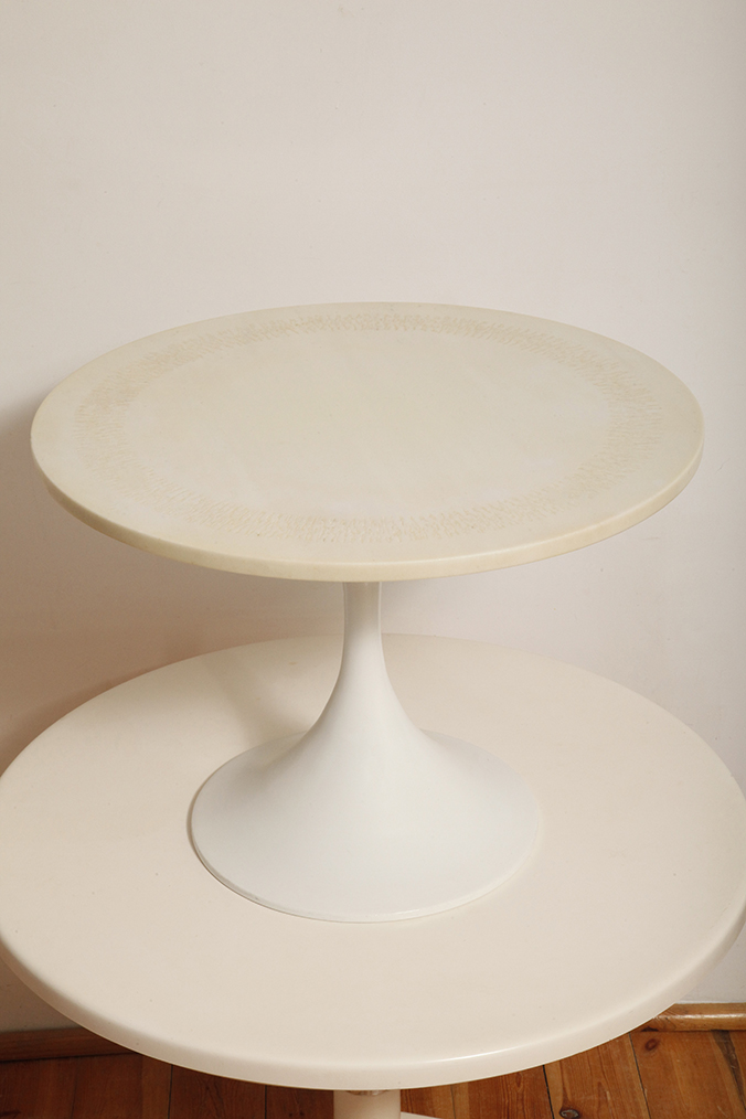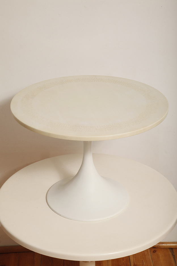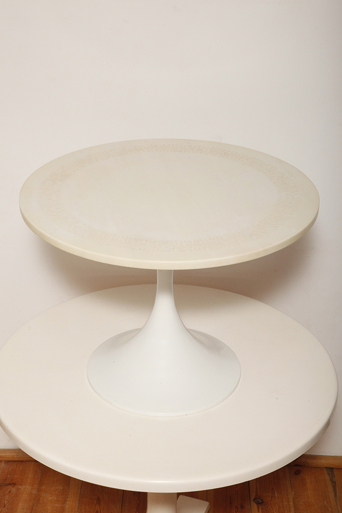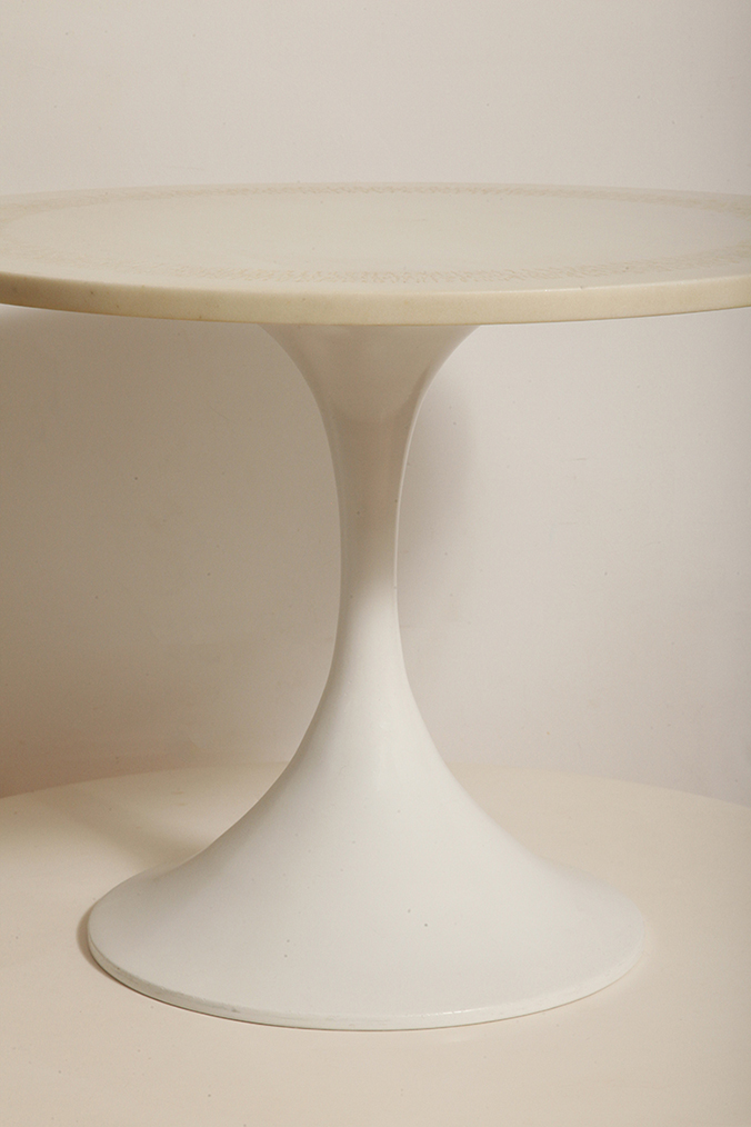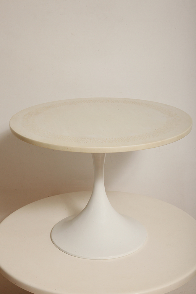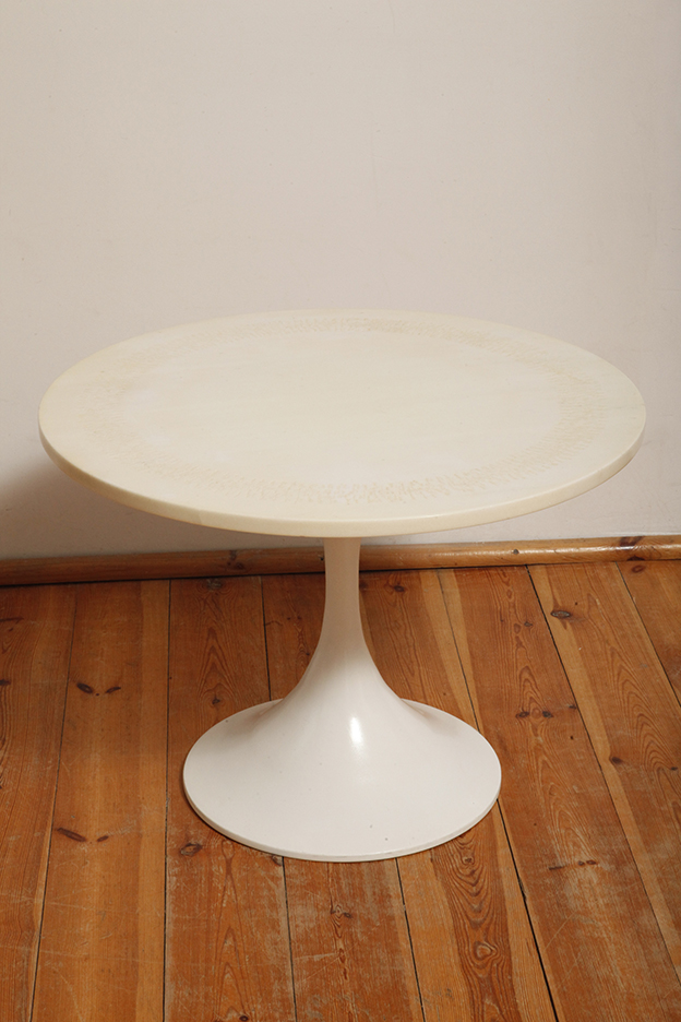 Stolik w 100 % nawiązuje do mebli epoki kosmicznej, czyli do stylu Space Agę. Zdecydowanie wpisuje się w stylistykę ikonicznych projektów z serii „Tulip”, którego ojcem był Eero Saarinen.