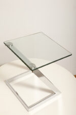 Masywny stolik boczny/pomocnik/stolik kawowy/stolik nocny z grubym blatem z hartowanego szkła na metalowych chromowanych profilach w kształcie litery „Z”, Gebra, Niemcy, lata 90.