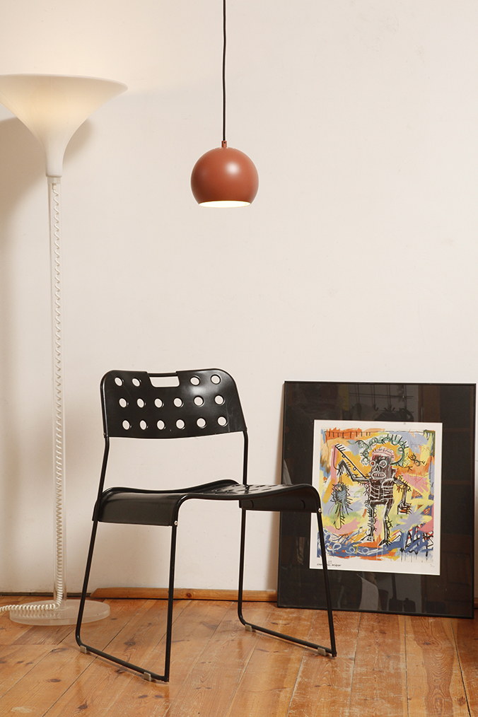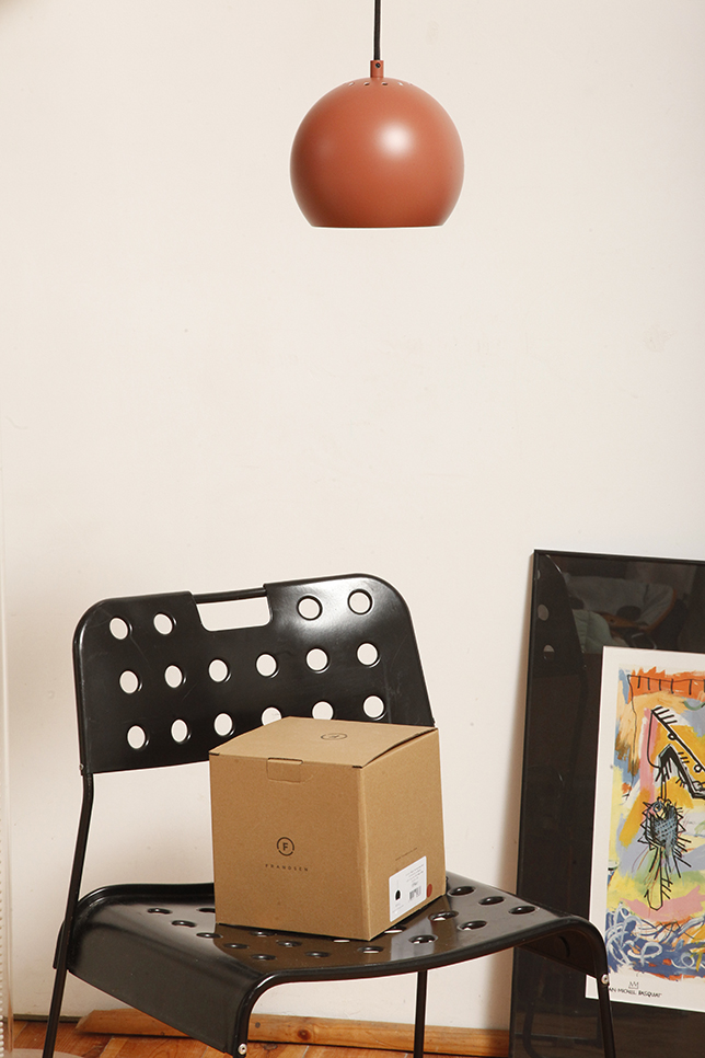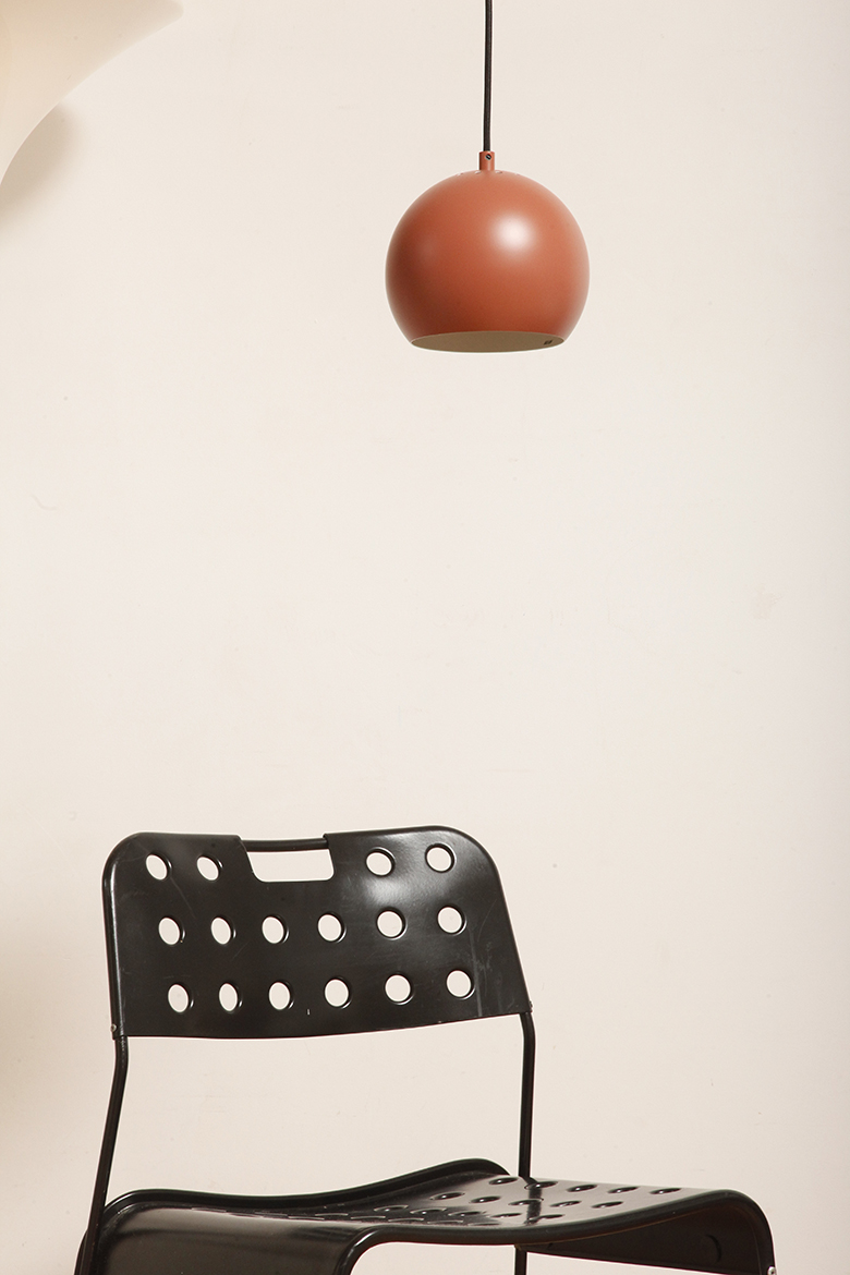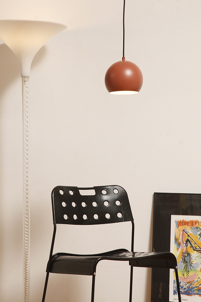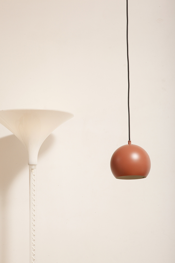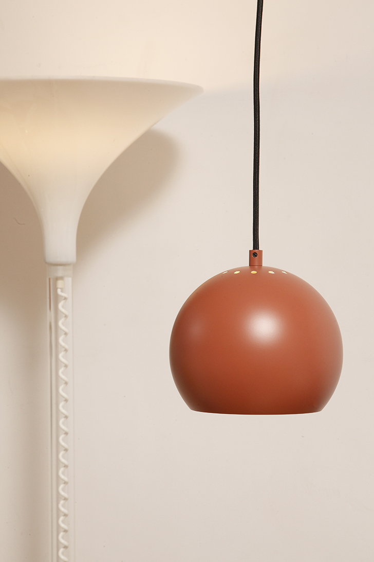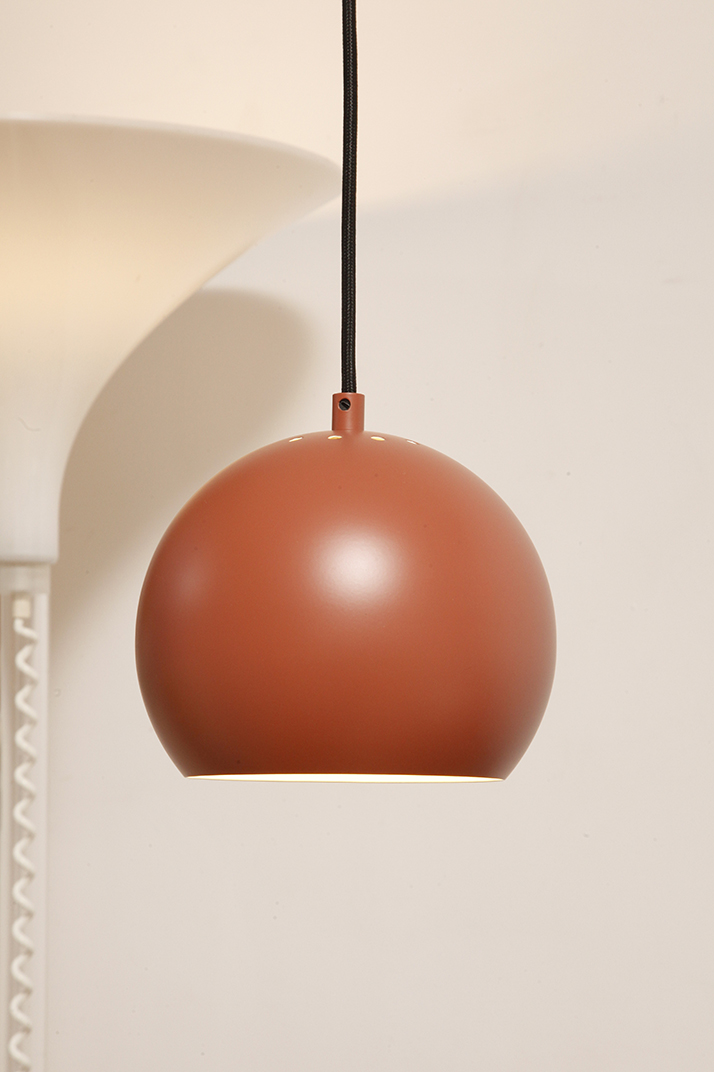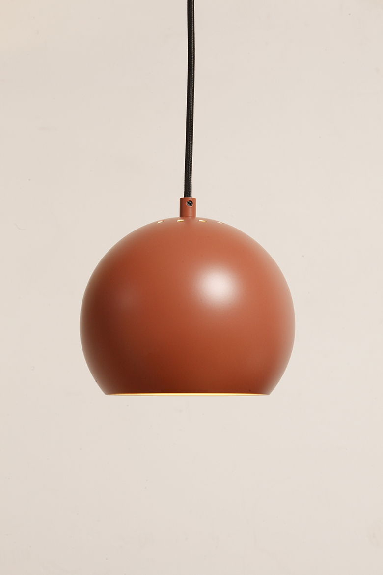 Poniżej zamieściłem opis stworzony przez firmę. Tak dla porównania tego co ja mógłbym sam o lampie napisać. Dla mnie to porządnie wykonana nieduża metalowa lampa w bezpiecznym aczkolwiek ciekawym terakotowym kolorze. Trochę w nim czerwieni, trochę rudego. Lakier jest matowy, a kształt niezatapialny wynikający z tradycji wzornictwa spod Space Agę. Niezatapialny i ponadczasowy kształt kuli który nigdy się nie zestarzeje.
