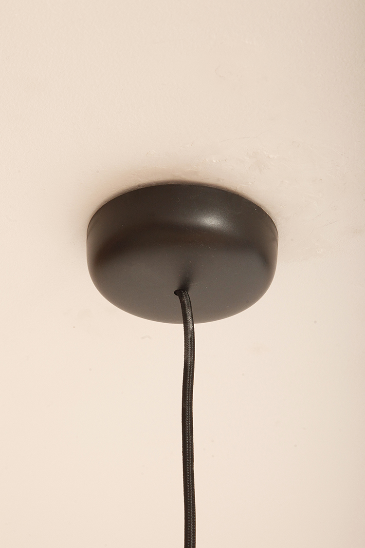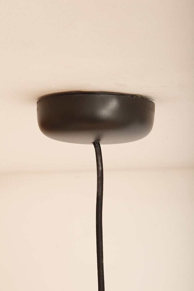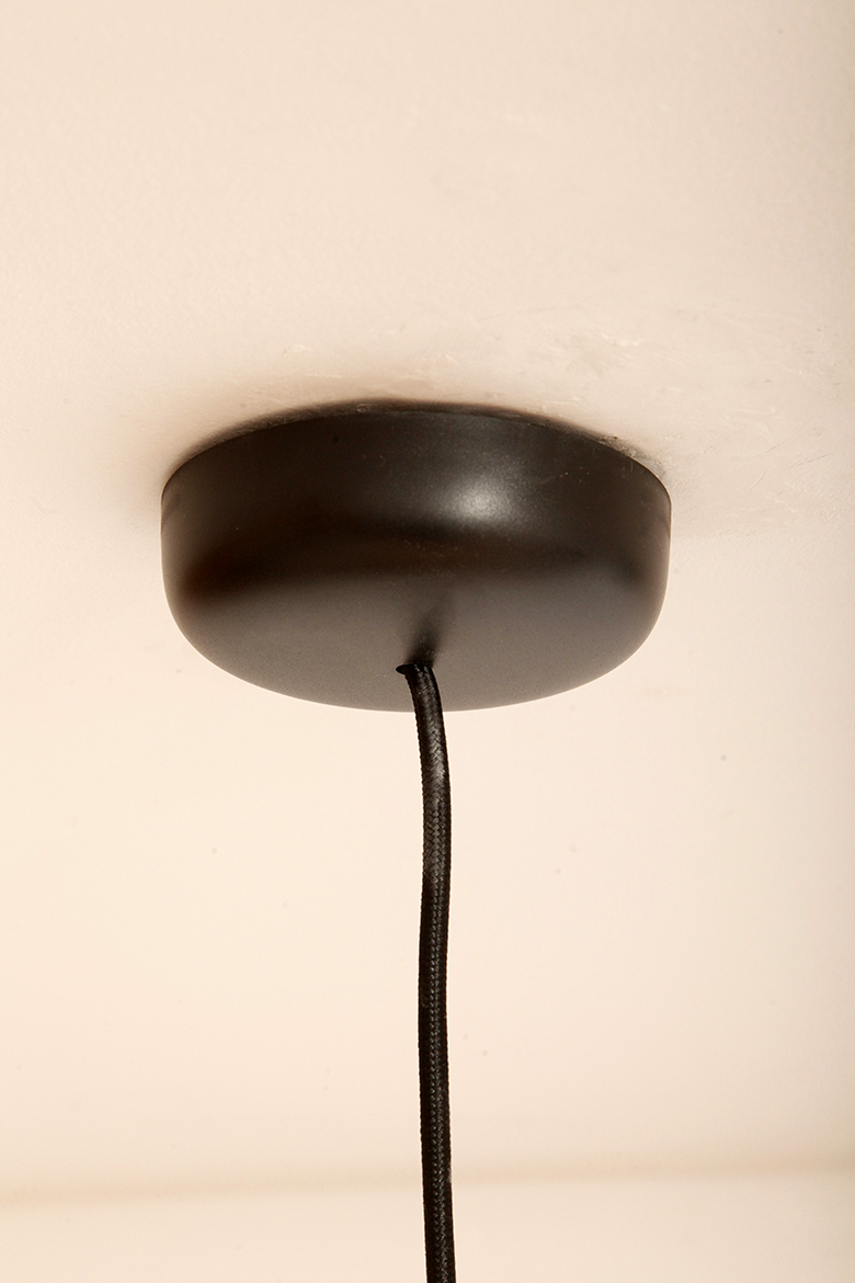 Wisior zaopatrzony w 200 cm kabla obleczonego „materiałem” i plastikową matową okrągłą i płaską podsufitkę w kolorze czarnym. Wykonanie jest bardzo dobre. Metal wyjątkowo dobrej jakości. Zwarty i stosunkowo ciężki. Koniec. Kropka.