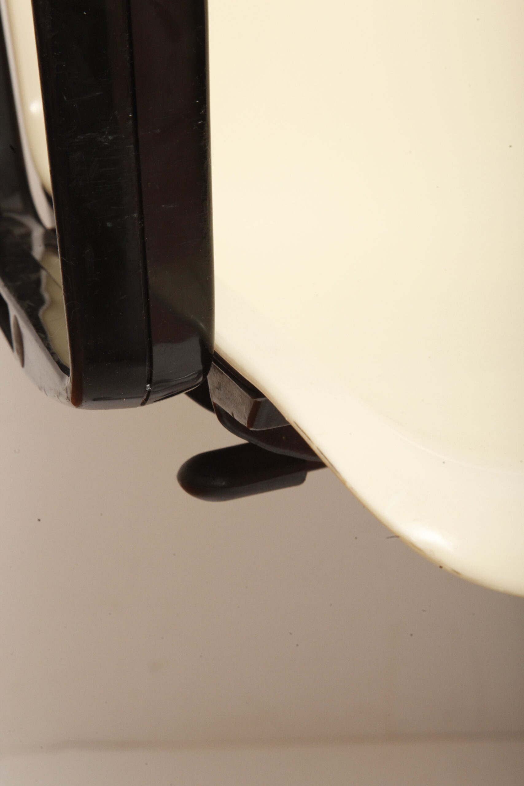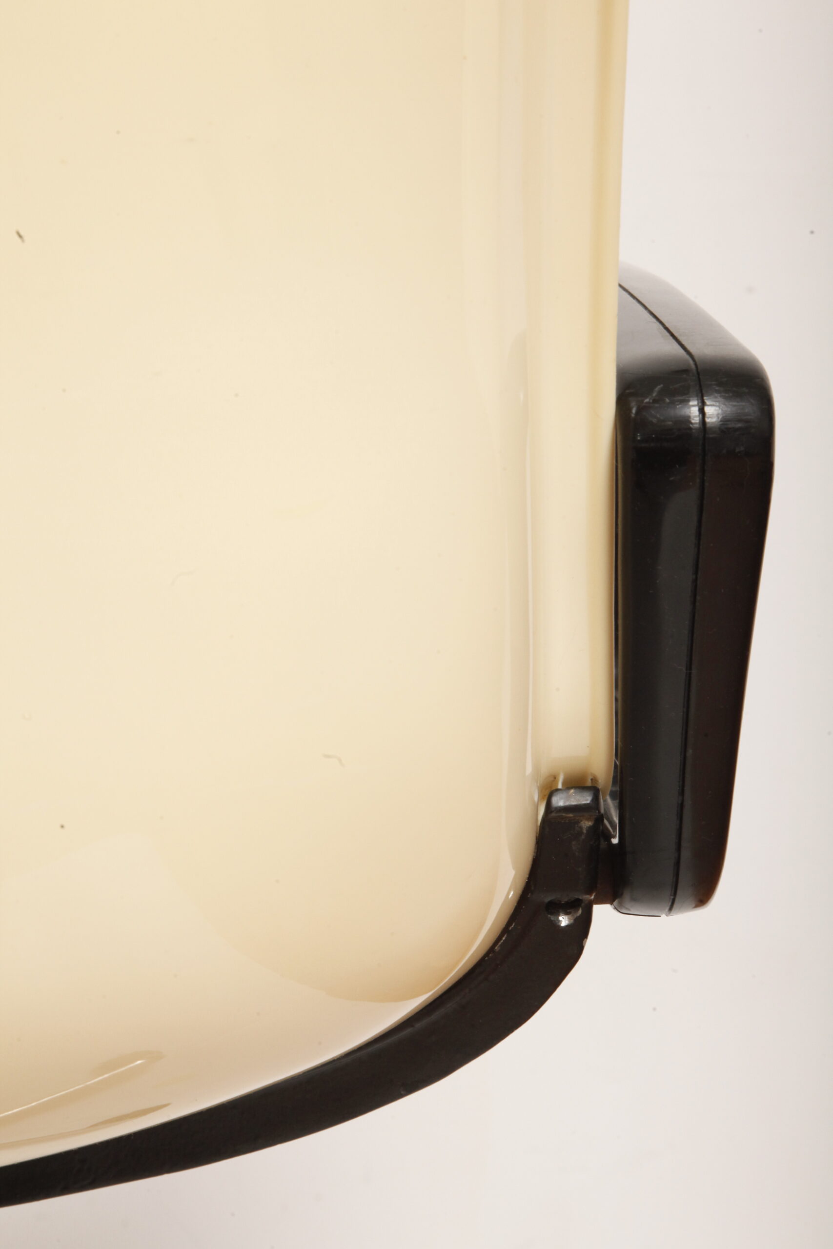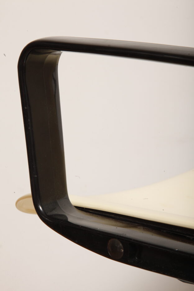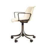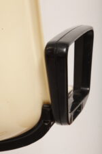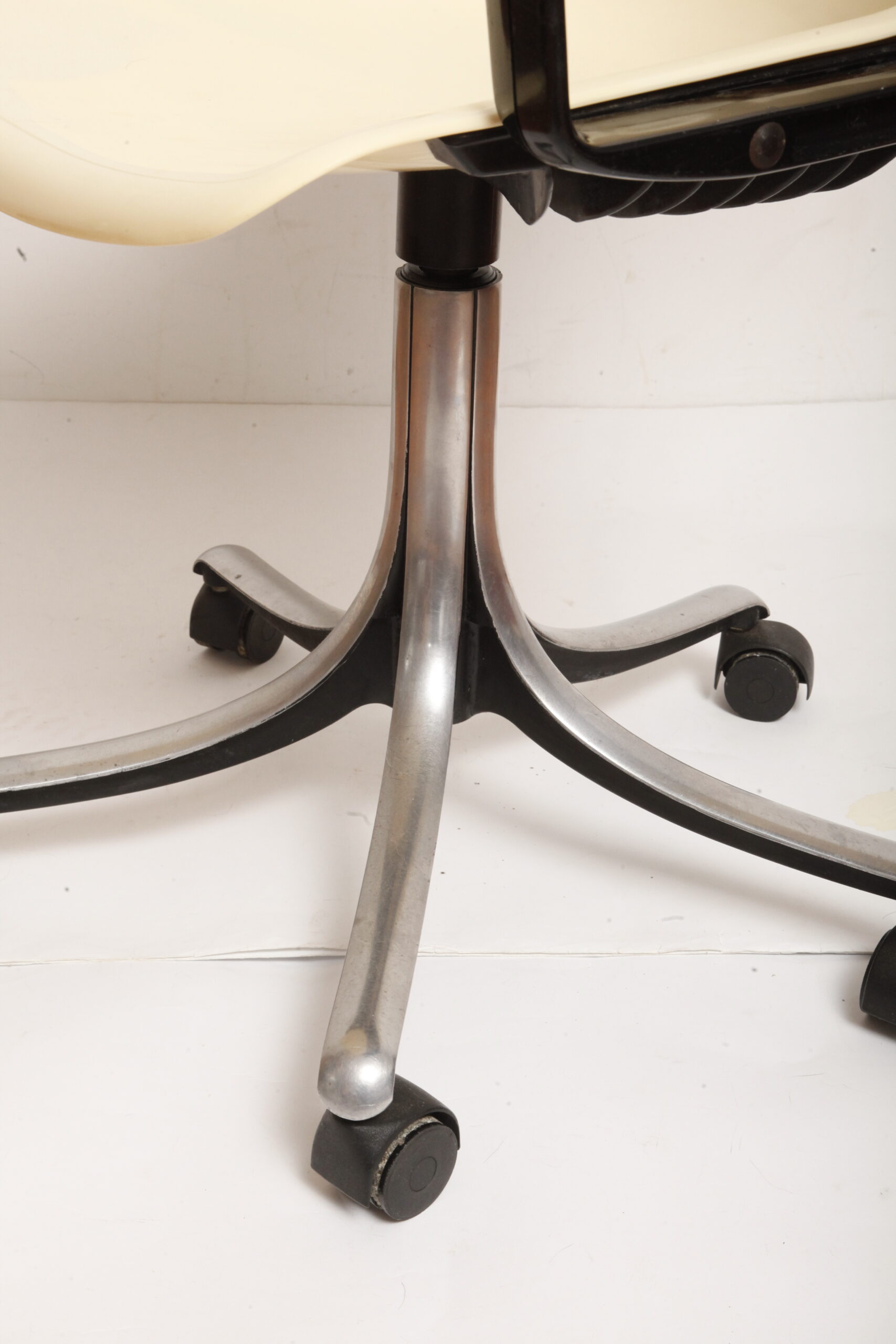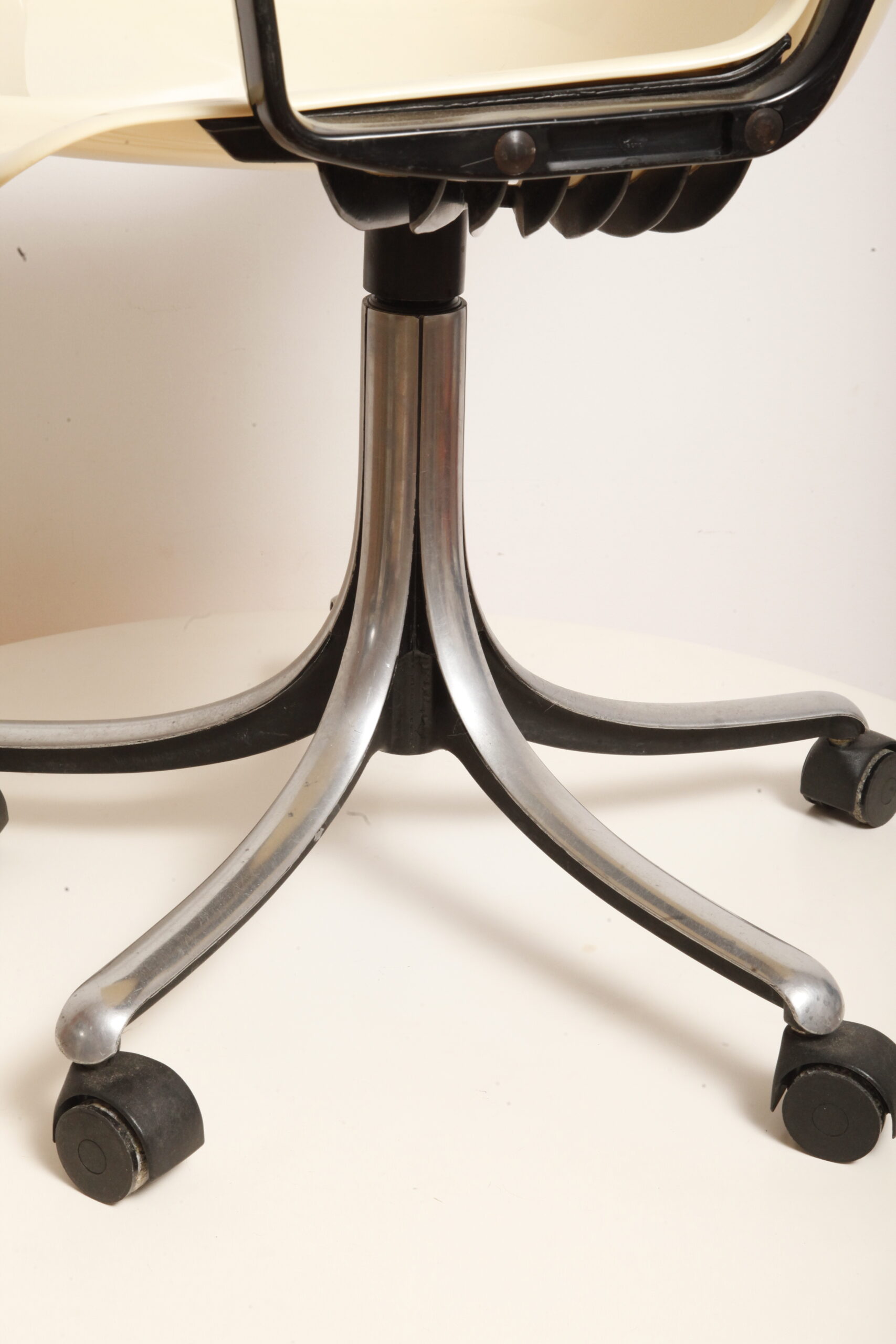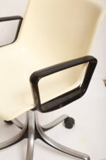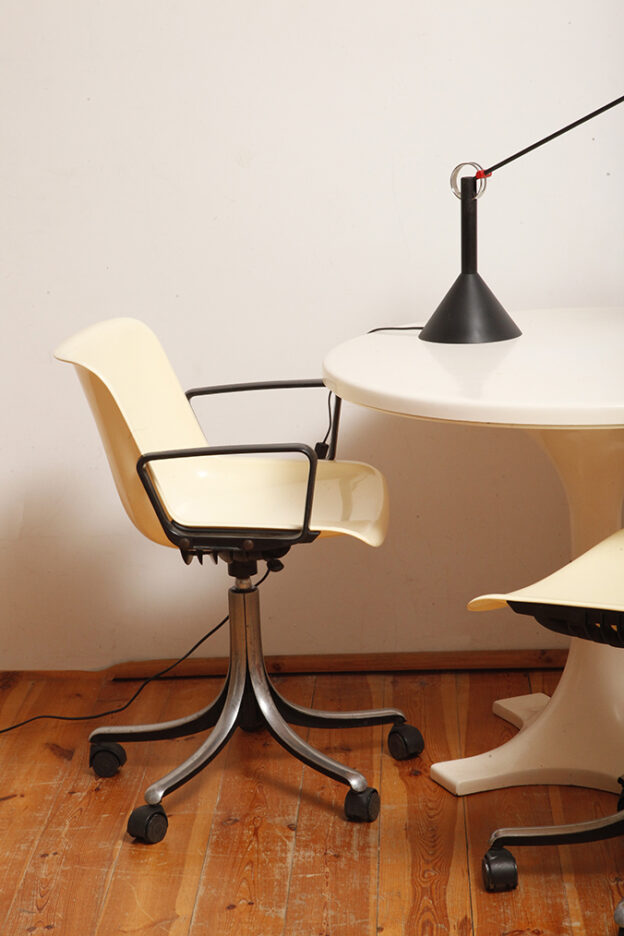 Mobilne krzesło „Modus” z czarnymi podłokietnikami i jasno kremowym siedziskiem z tworzywa ABS osadzonym na metalowej nodze z regulowaną wysokością, projekt Osvaldo Borsani dla firmy Tecno, Włochy, wzór z 1972 roku