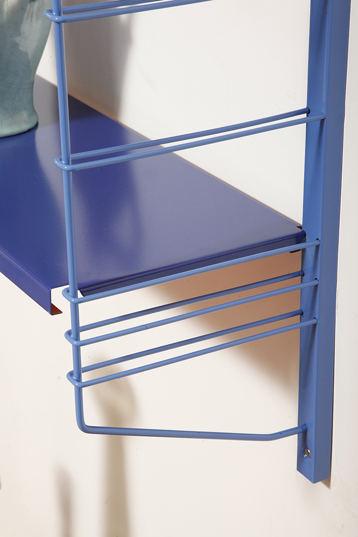 Bezpośrednio mocowana do ściany konstrukcja, z niebieskich pionowych trzymadeł-wsporników jest lekka, a jednocześnie wytrzymuje duże obciążenia.