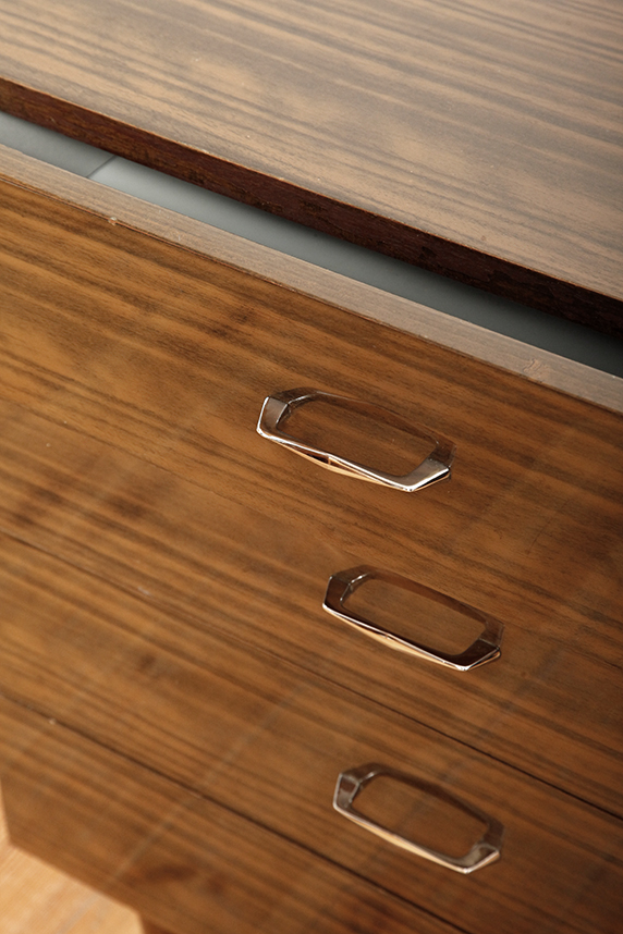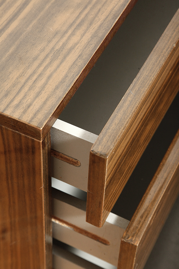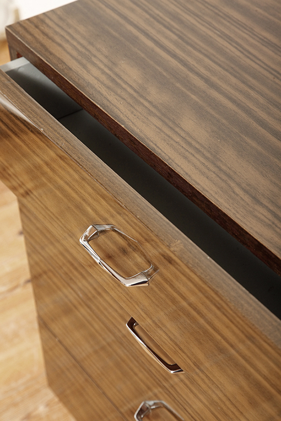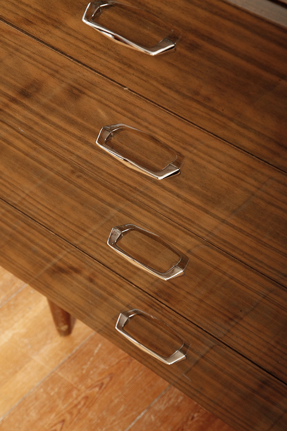 A dlaczego mało widocznymi ? A dlatego, że w Polsce w latach 70. kładli wyjątkowo twardy lakier na meblach. Nie do zajechanie krótko mówiąc, mimo że jakieś z 5 dych ma na karku (i komoda i lakier).