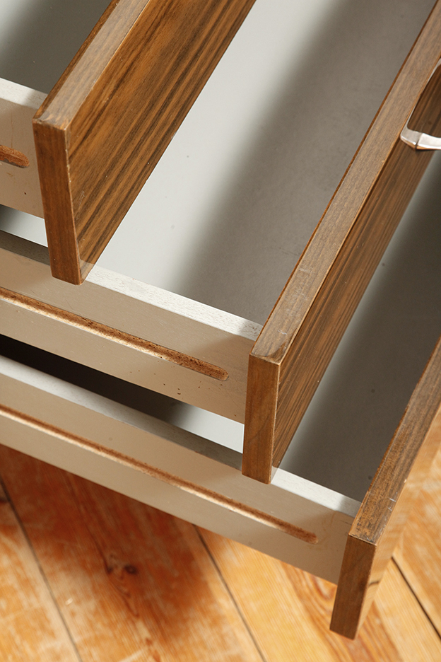 Ścianki i dno szuflady oryginalnie zachowane w szarościach.