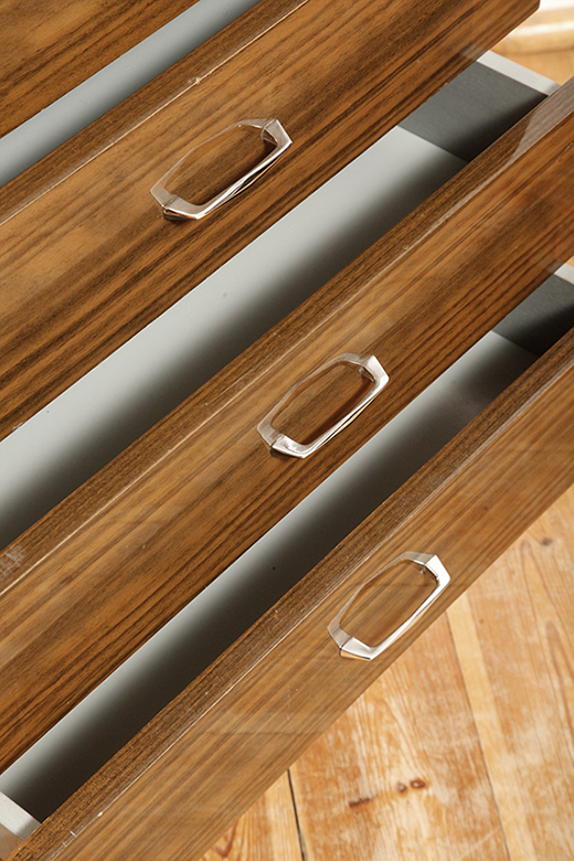 Uchwyty przy szufladach metalowe i świecące się jak psu … pyszczek. Są nieskazitelne.