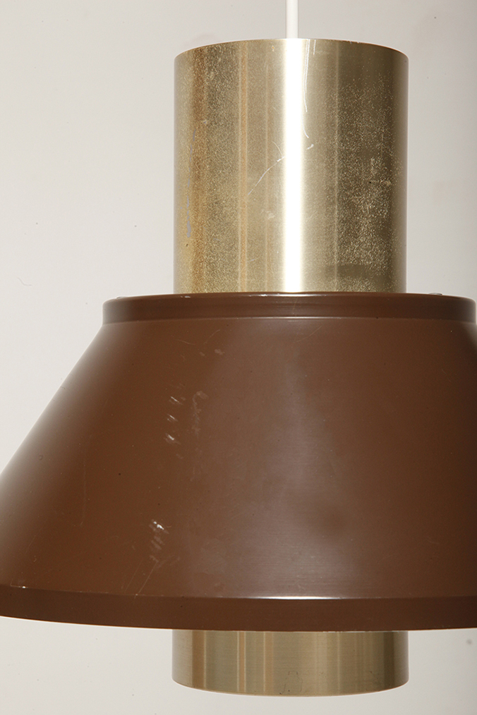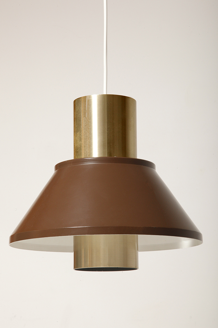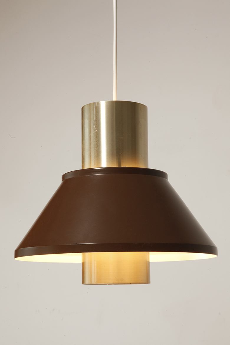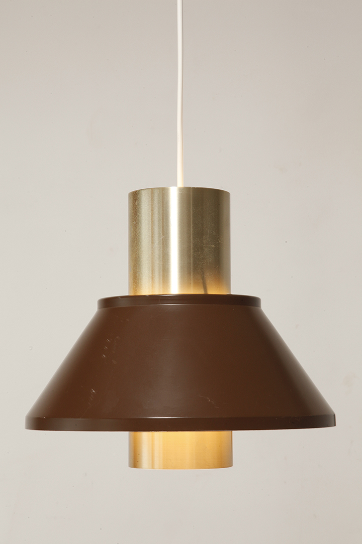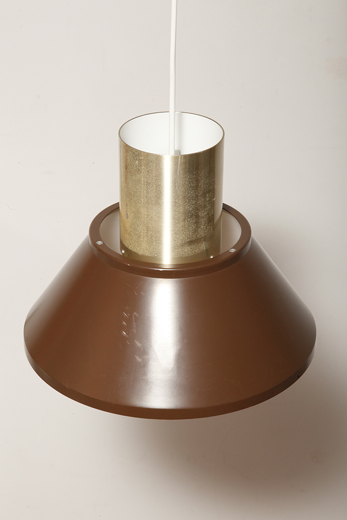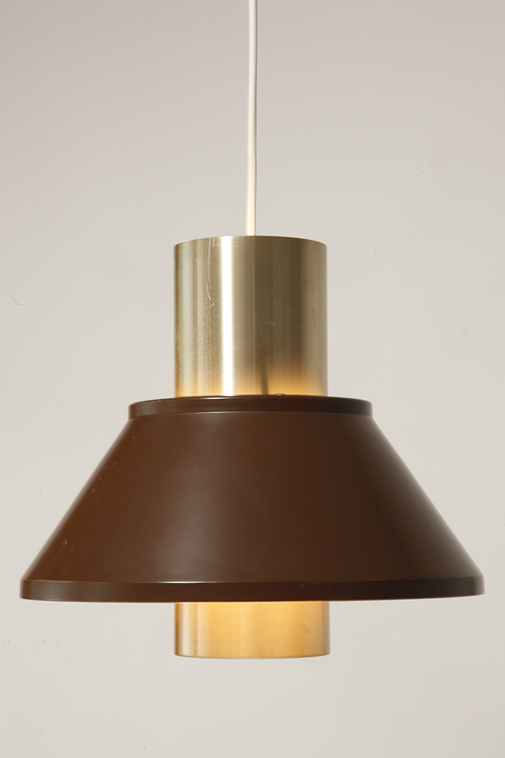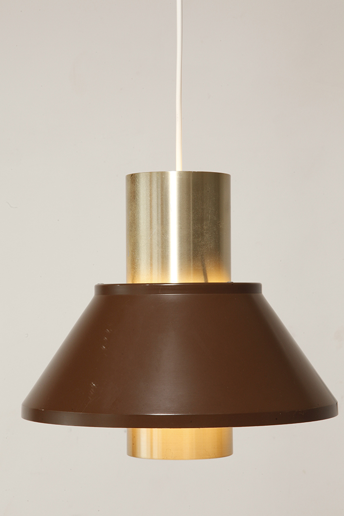 Nieduża jednopunktowa brązowo złota lampa wisząca/sufitowa 'LIFE”, projekt Jo Hammerborg dla Fog & Mørup, Dania, lata 70.