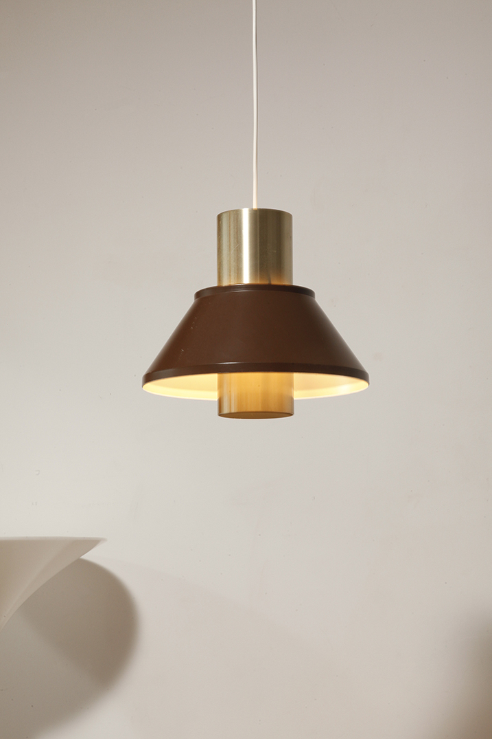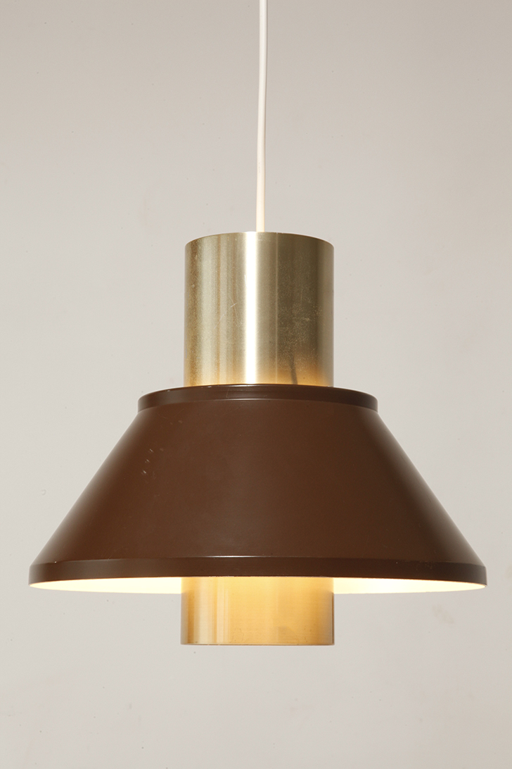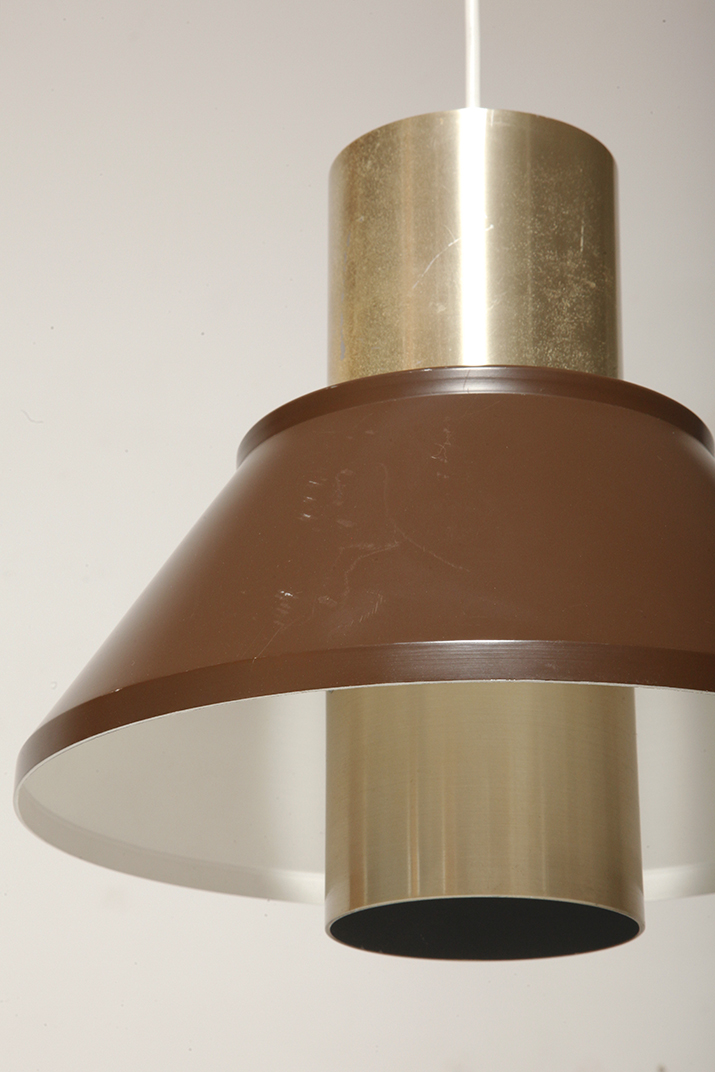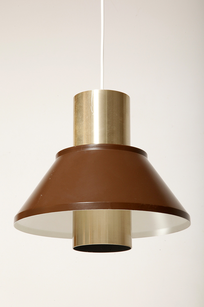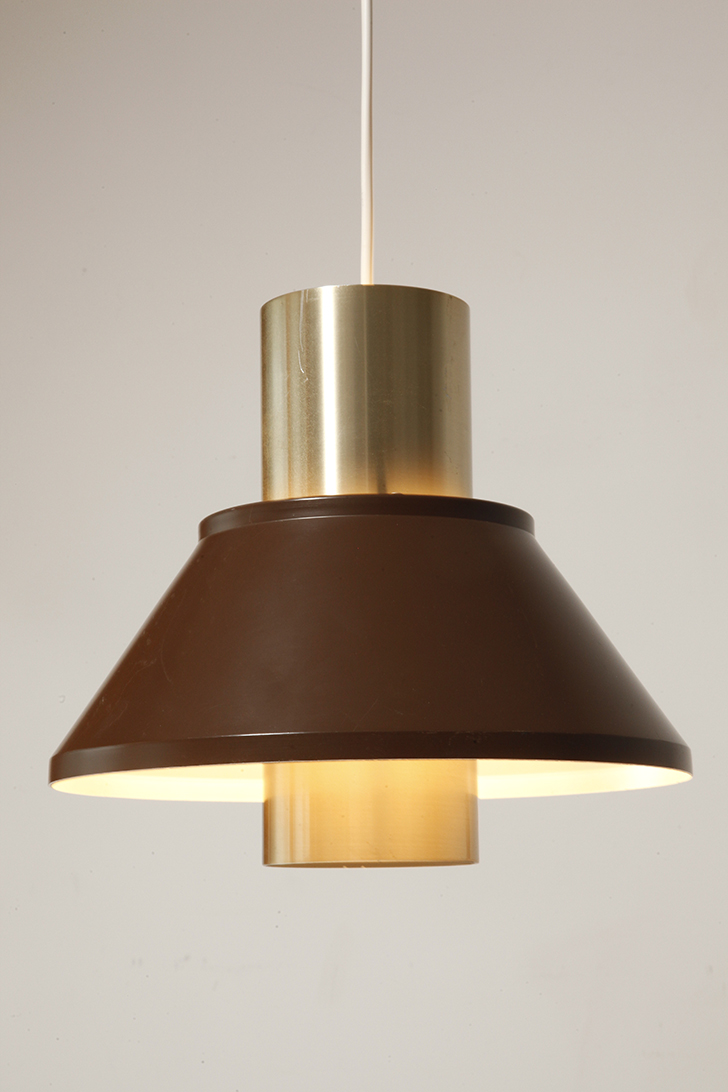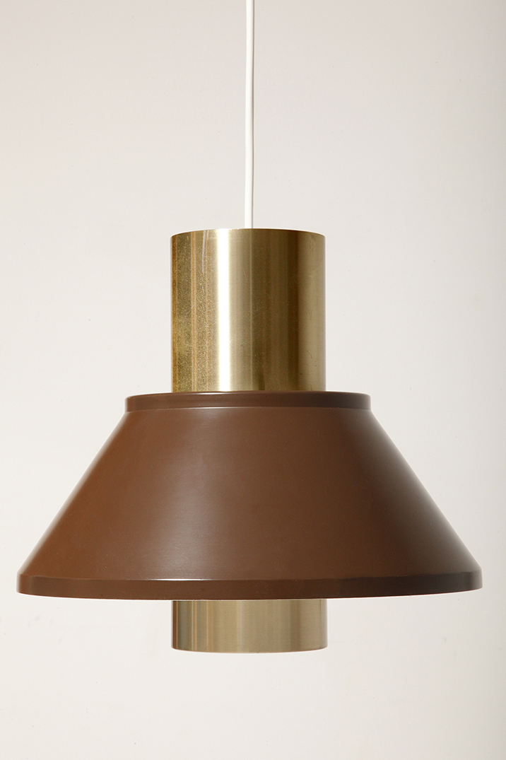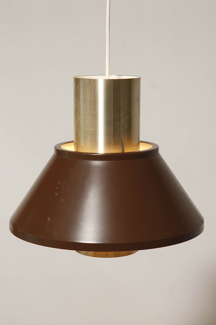 Nieduża jednopunktowa brązowo złota lampa wisząca/sufitowa 'LIFE”, projekt Jo Hammerborg dla Fog & Mørup, Dania, lata 70.