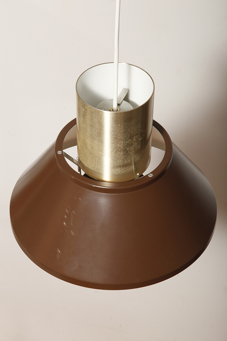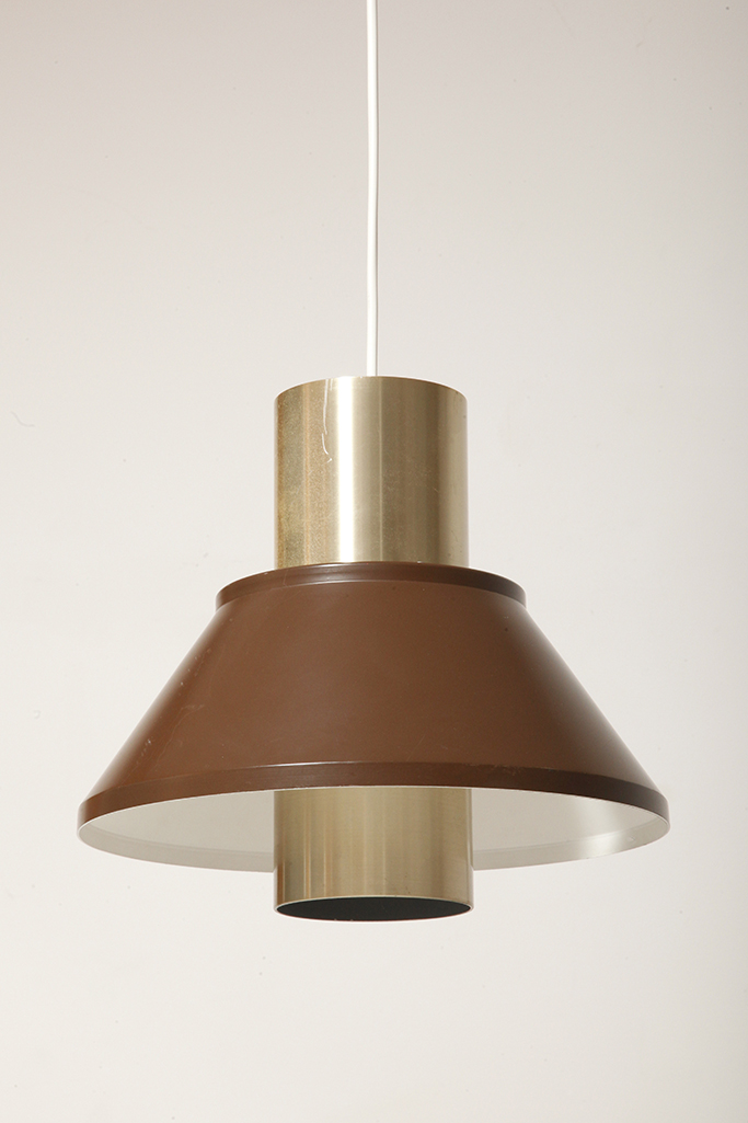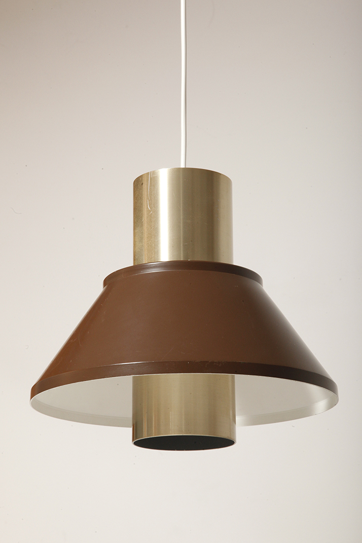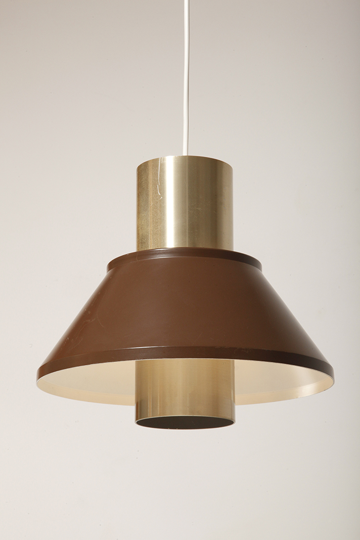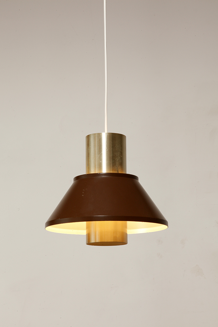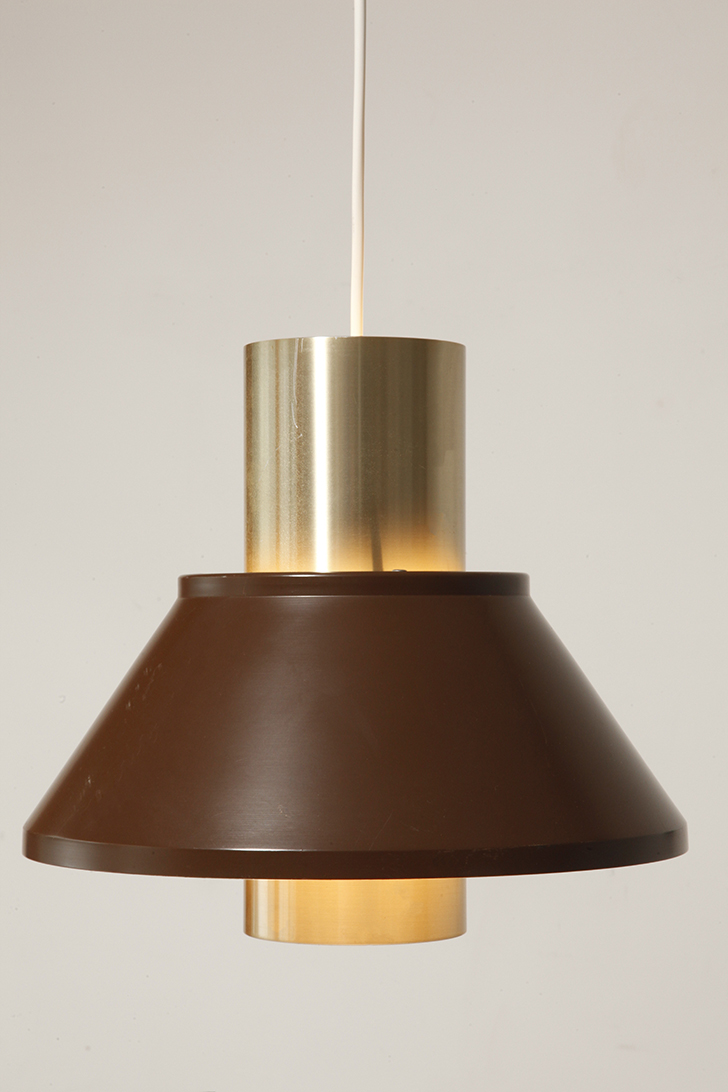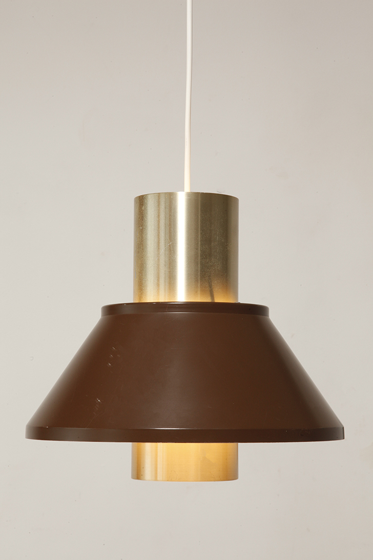 Nieduża jednopunktowa brązowo złota lampa wisząca/sufitowa 'LIFE”, projekt Jo Hammerborg dla Fog & Mørup, Dania, lata 70.