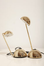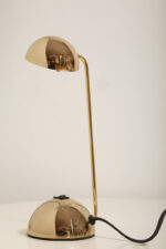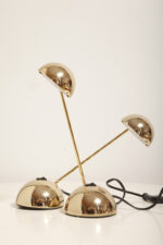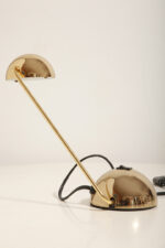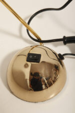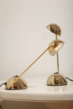 Ta lampa to wczesny powiew pojawiającego się stylu Memphis, może troszkę jeszcze nieśmiało, ale w tym właśnie kierunku. Zabawa proporcjami i geometrycznymi bryłami. A do tego złotość, czyli na bogato.