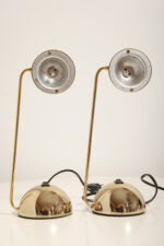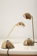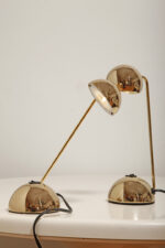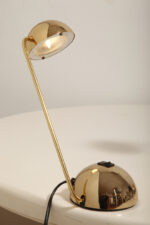 Nieduża złota metalowa jednopunktowa lampa biurkowa/nocna „Minikini” z ruchomym ramieniem i głowicą, projekt Roberto Barbieri i Giorgio Marianelli dla Tronconi illuminazione, Włochy, wzór z 1981 roku