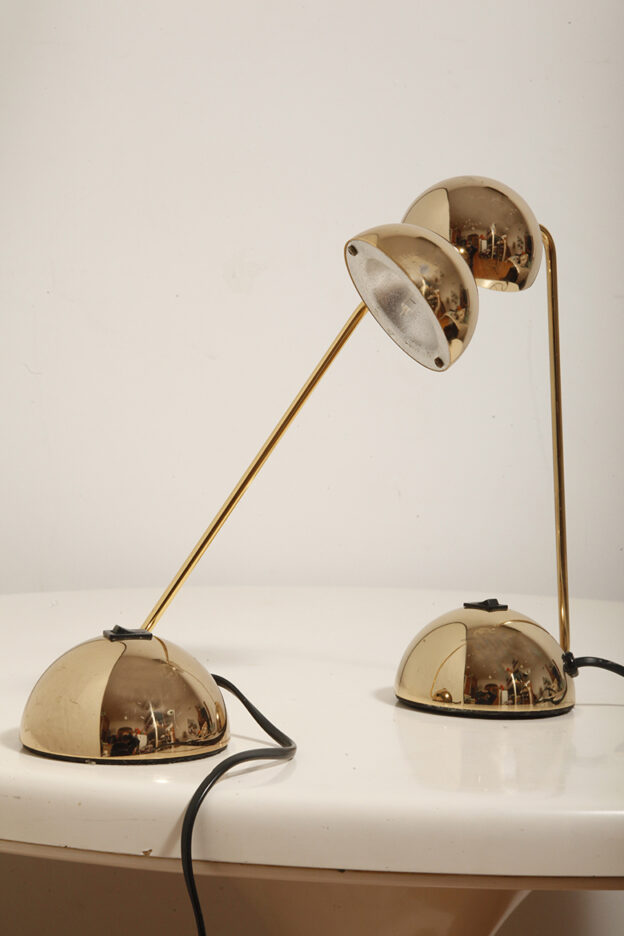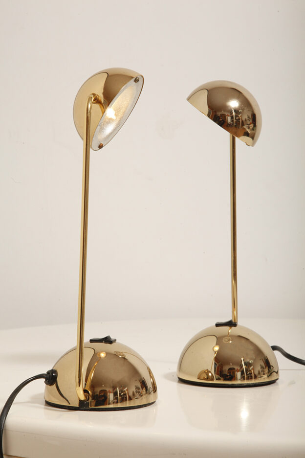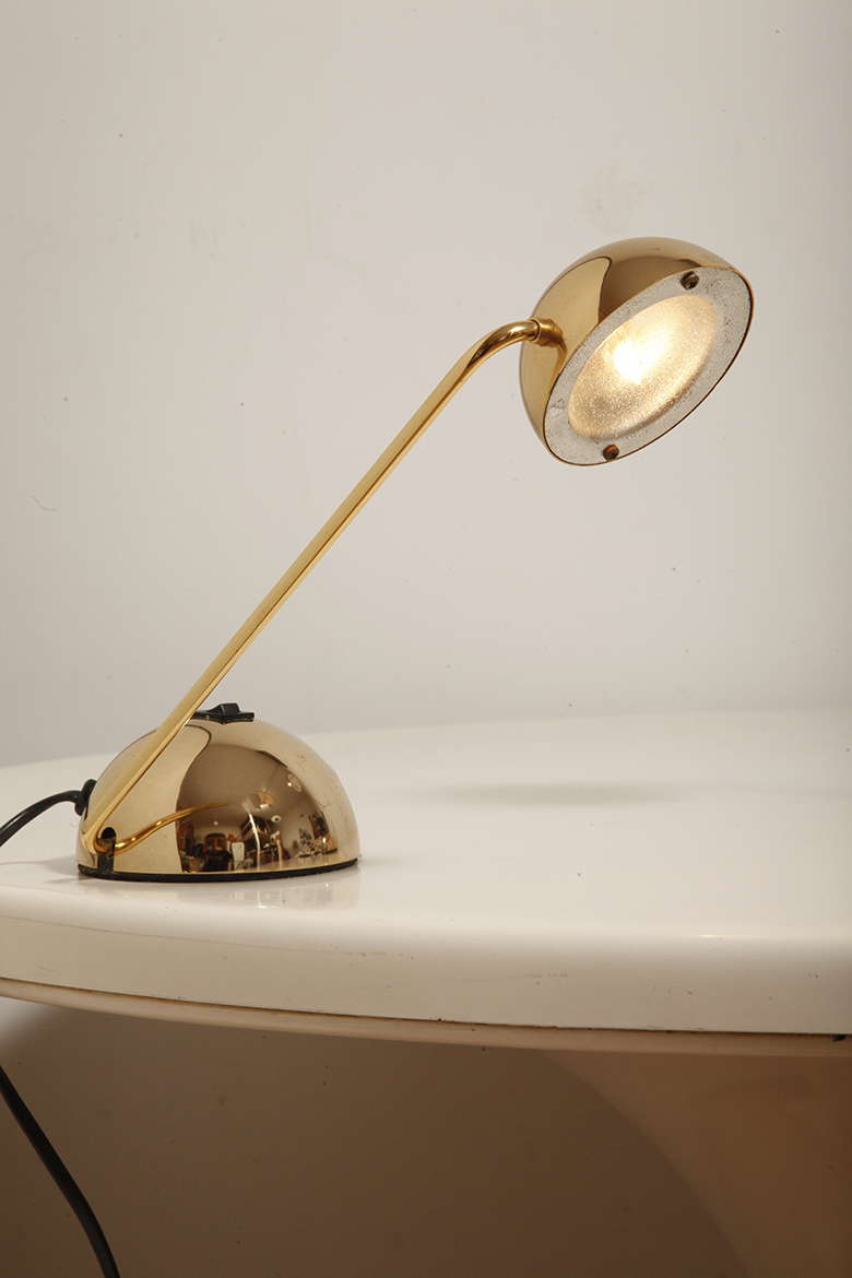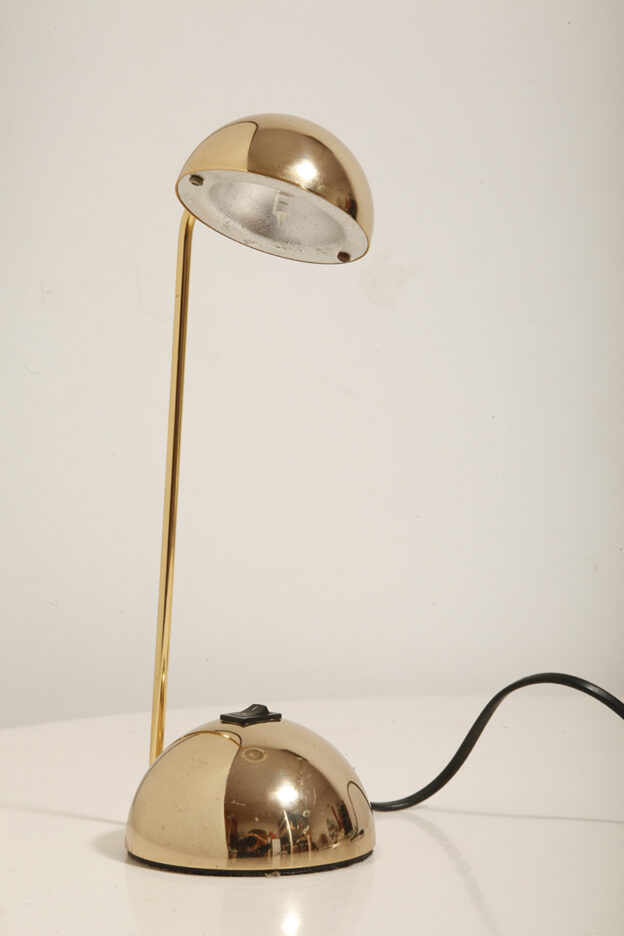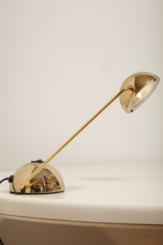 Nieduża złota metalowa jednopunktowa lampa biurkowa/nocna „Minikini” z ruchomym ramieniem i głowicą, projekt Roberto Barbieri i Giorgio Marianelli dla Tronconi illuminazione, Włochy, wzór z 1981 roku