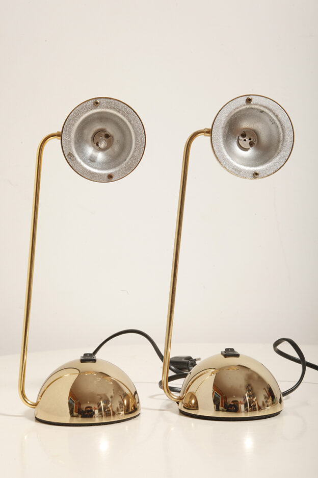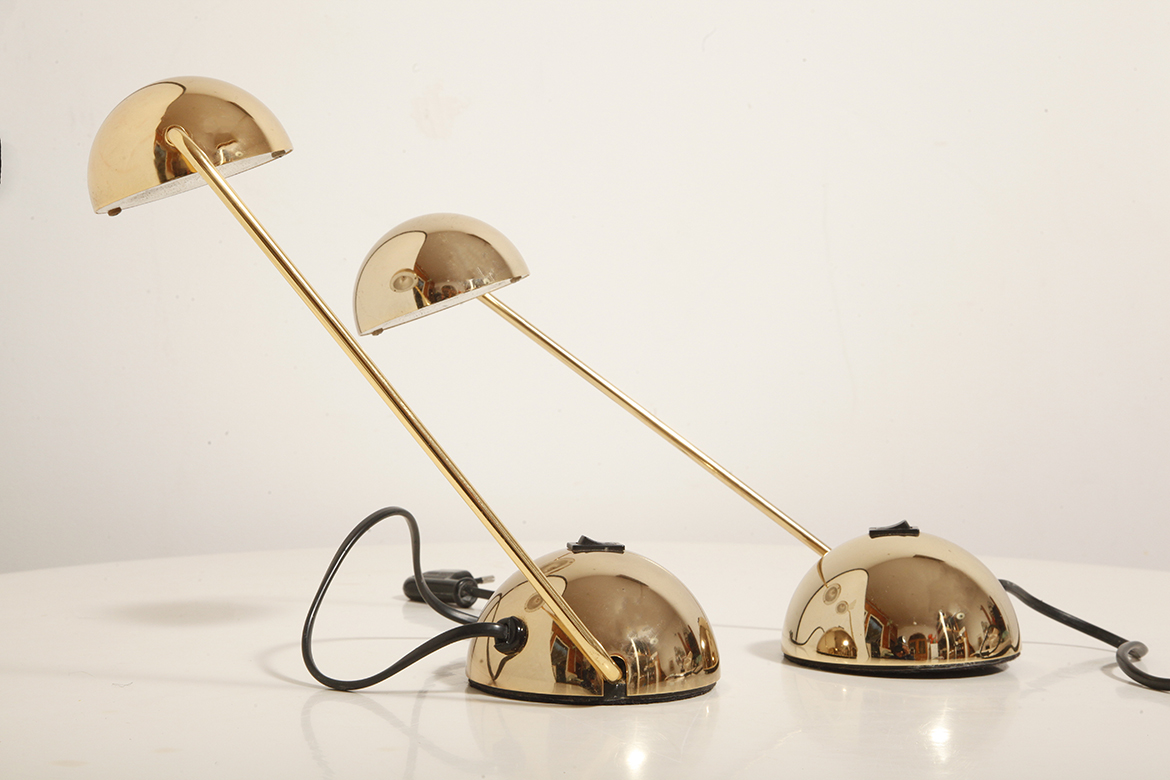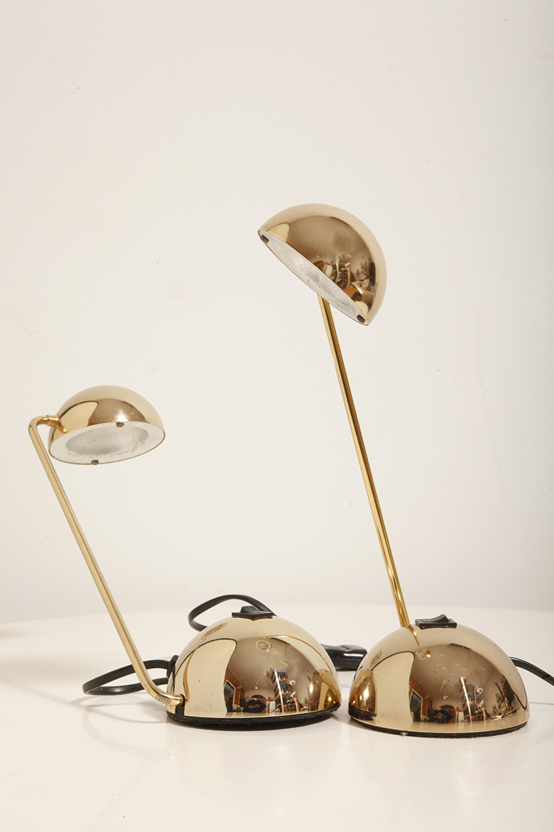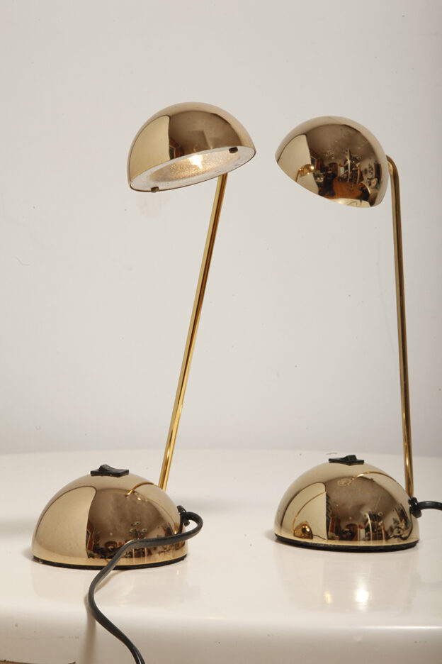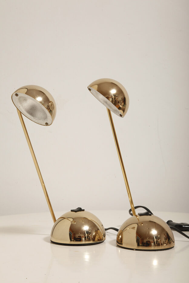 Nieduża złota metalowa jednopunktowa lampa biurkowa/nocna „Minikini” z ruchomym ramieniem i głowicą, projekt Roberto Barbieri i Giorgio Marianelli dla Tronconi illuminazione, Włochy, wzór z 1981 roku