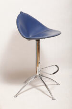 Obrotowy stołek barowy/hoker/krzesło „Fiorile”z niebieskim skórzanym siedziskiem osadzonym na masywnej chromowanej nodze, projekt Claudio Dondoli i Marco Pocci dla Fasem, Włochy, lata 80.