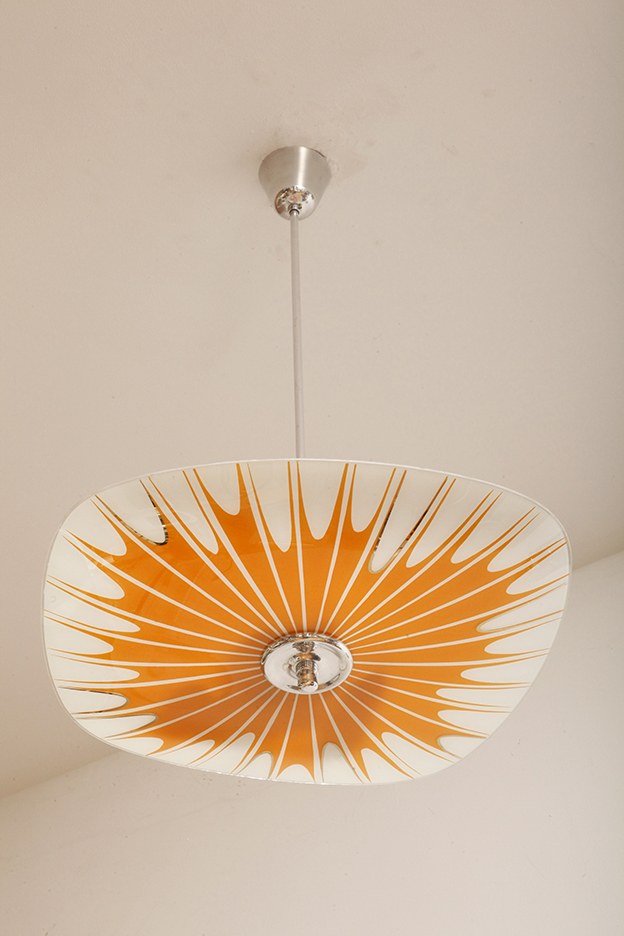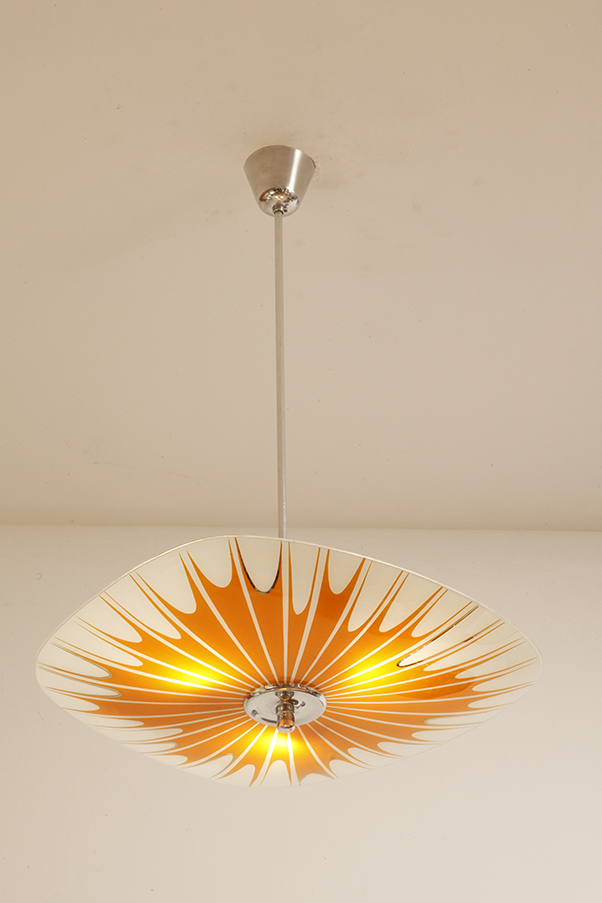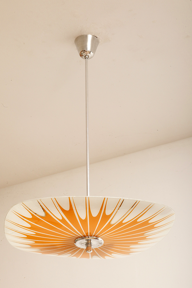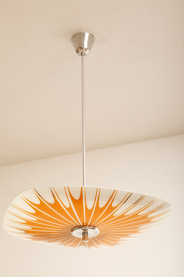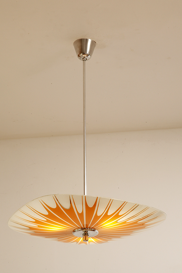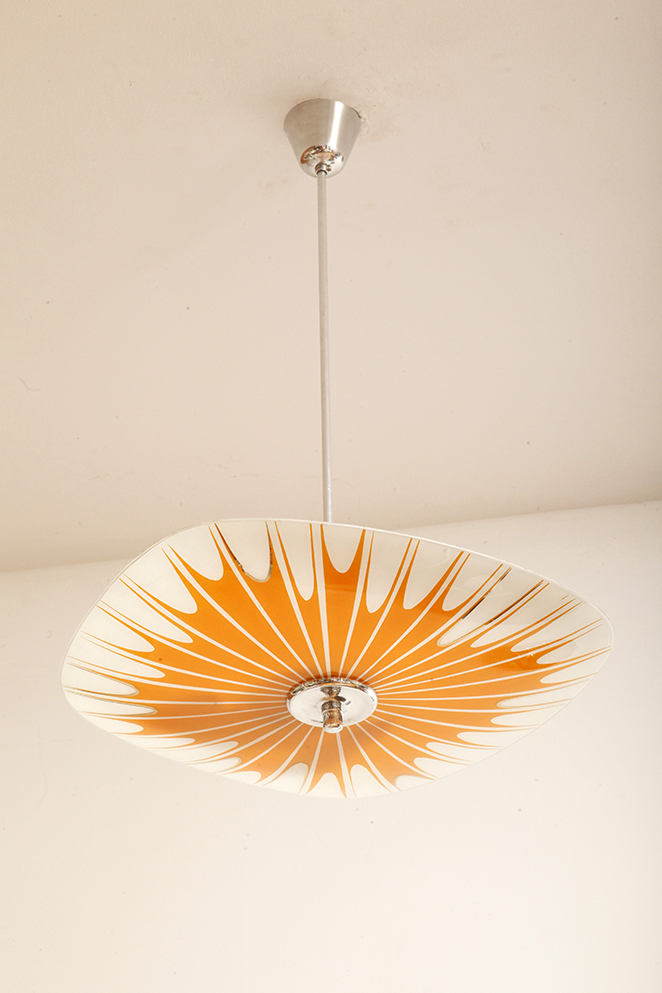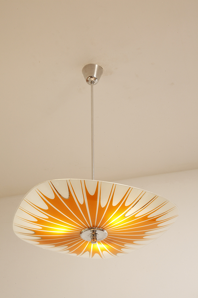 Lampa sufitowa z czechosłowackiej wytwórni Napako wypuszczana w świat w latach 50/60. XX w.