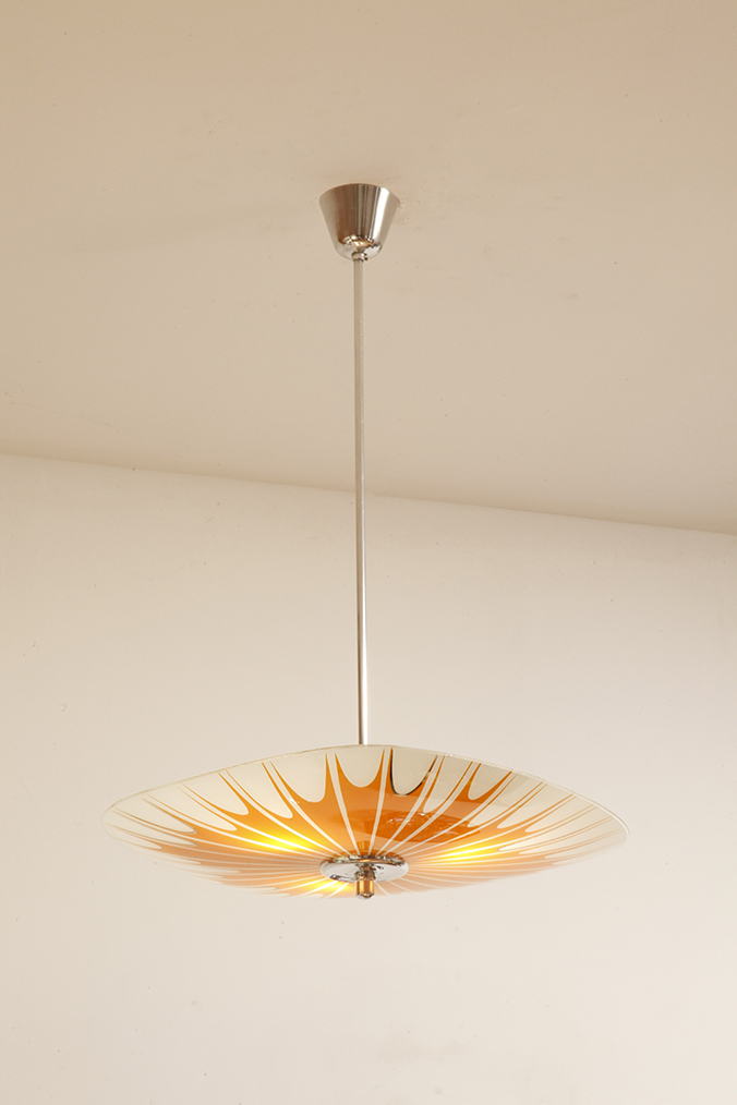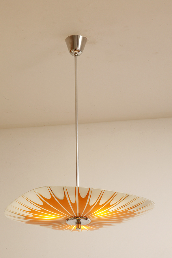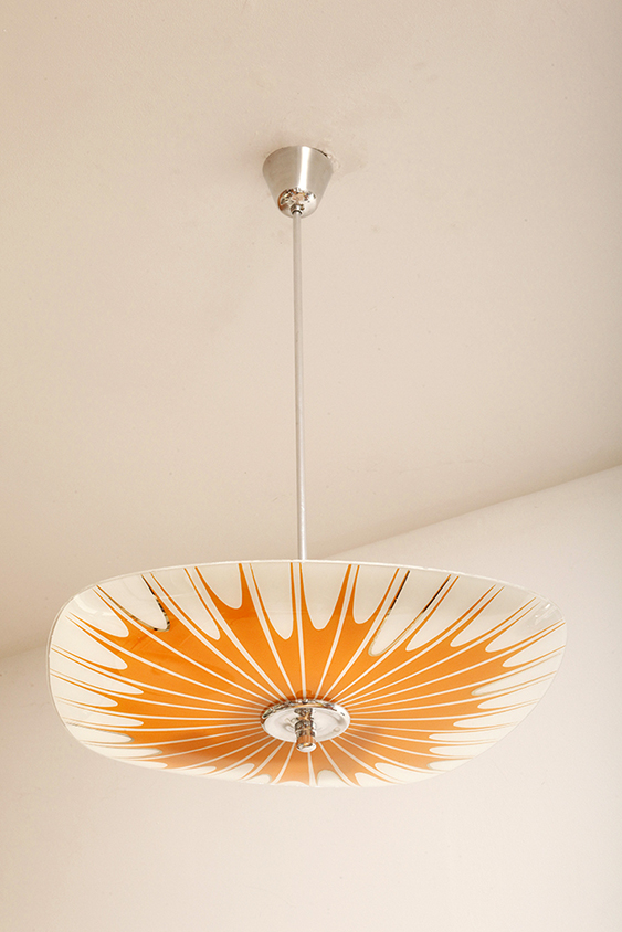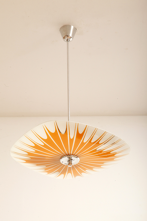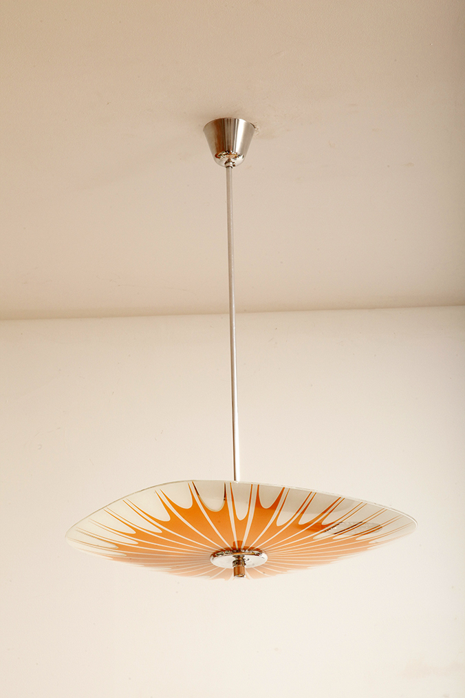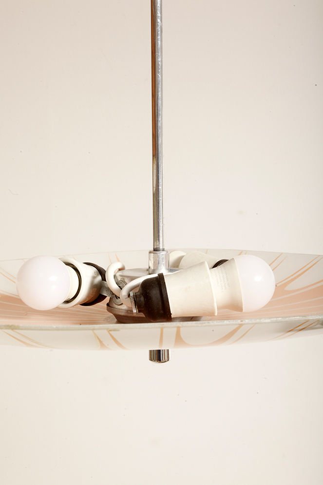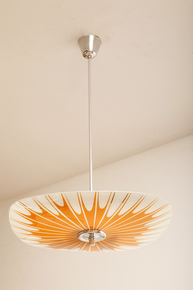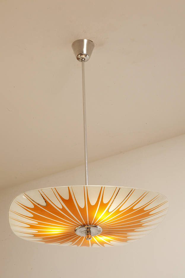 Lampa sufitowa z czechosłowackiej wytwórni Napako wypuszczana w świat w latach 50/60. XX w.