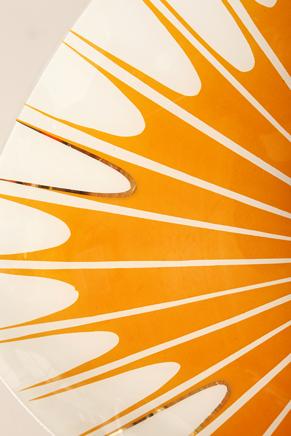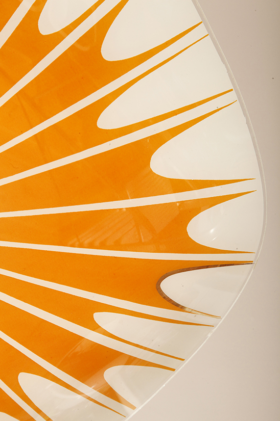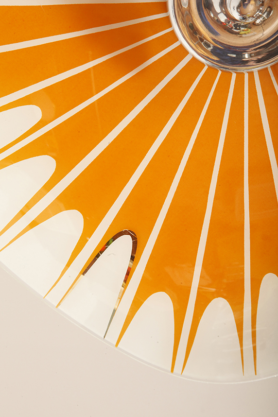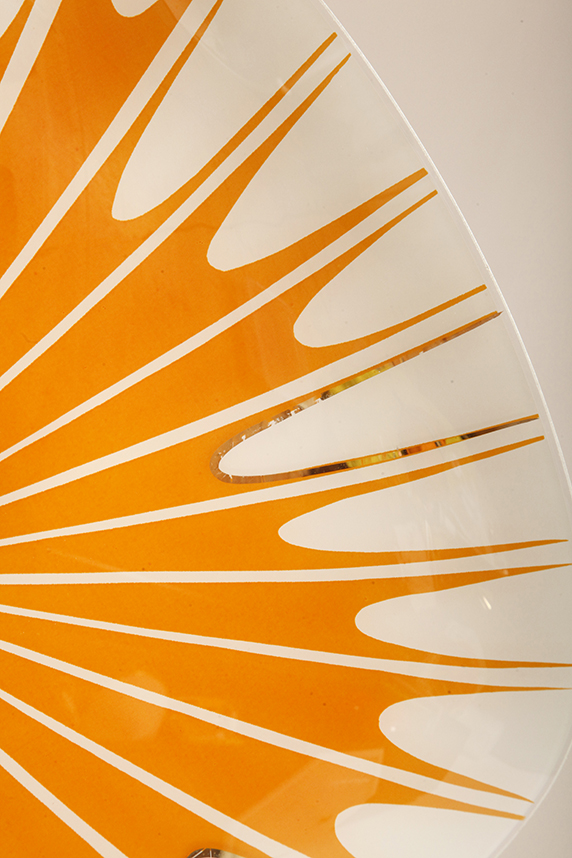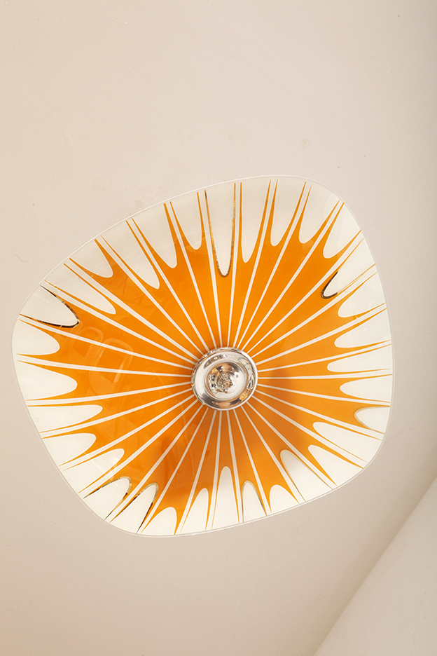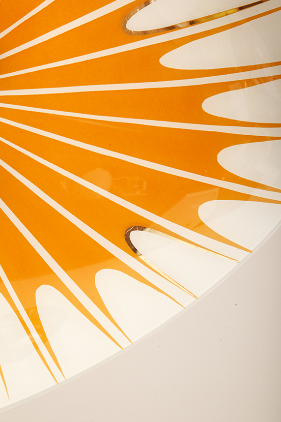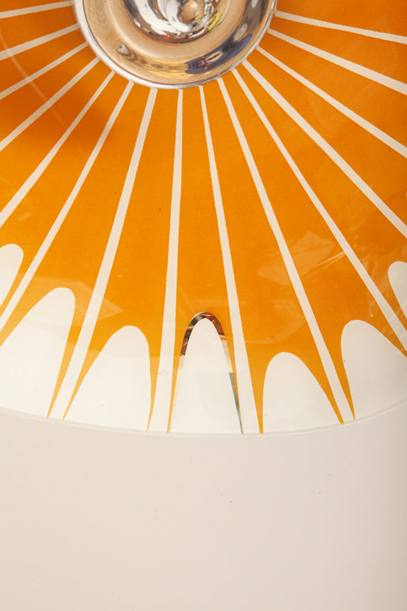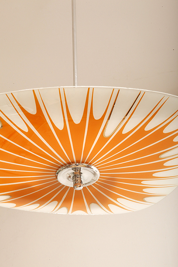 Wzór, kształt klosza przywodzi na myśl styl mid century modern w pełnej krasie. Geometryczny wzór to jest to.