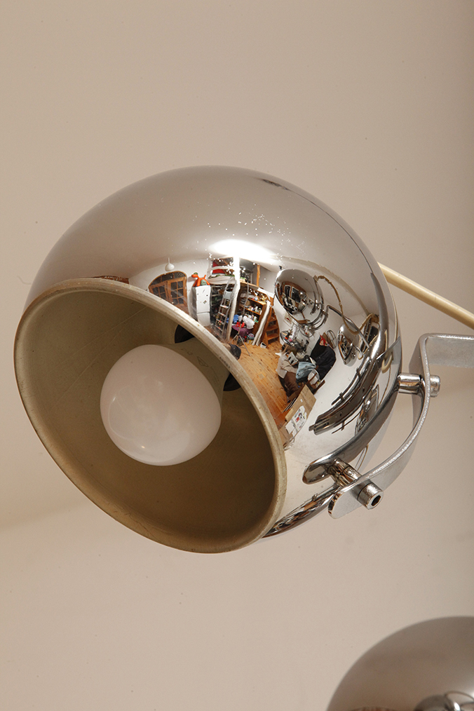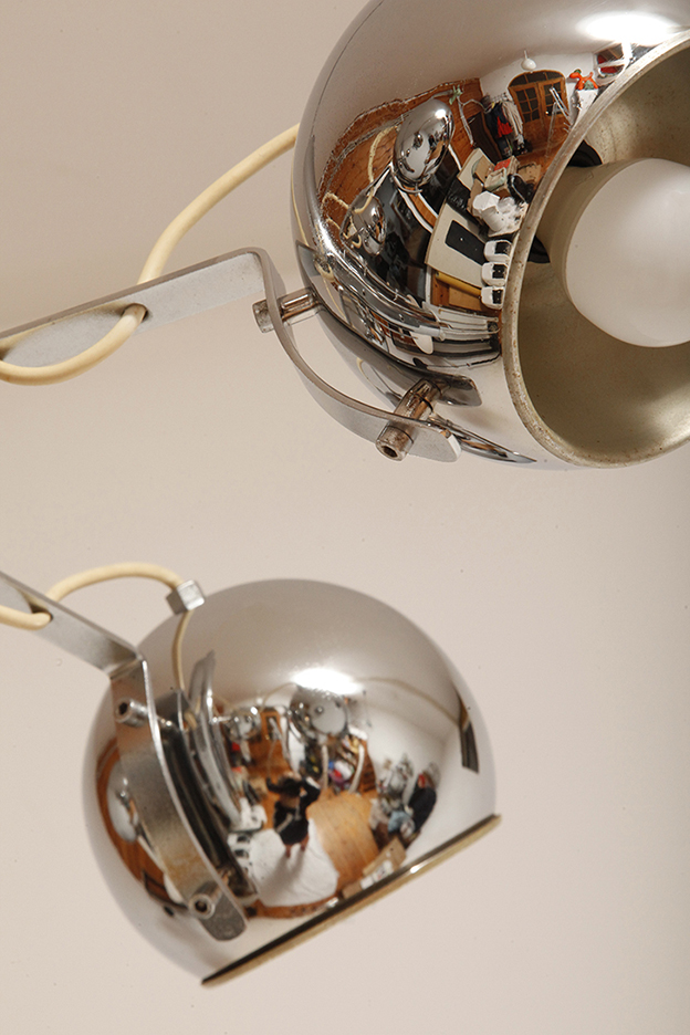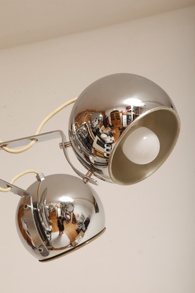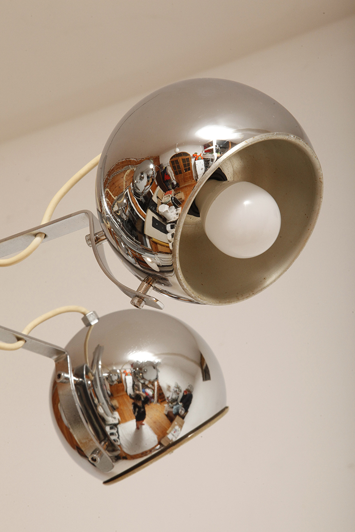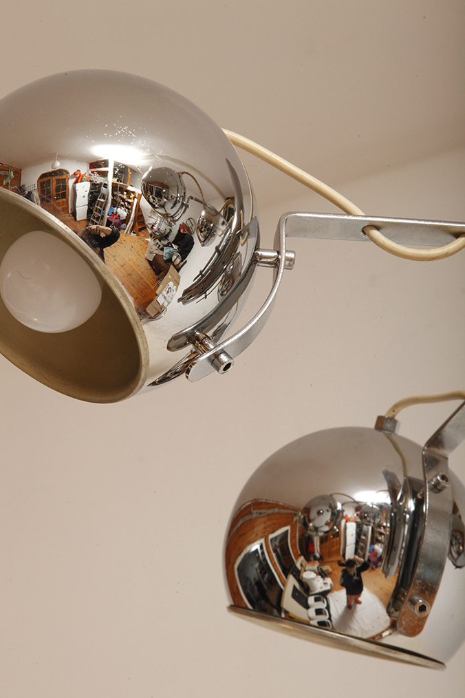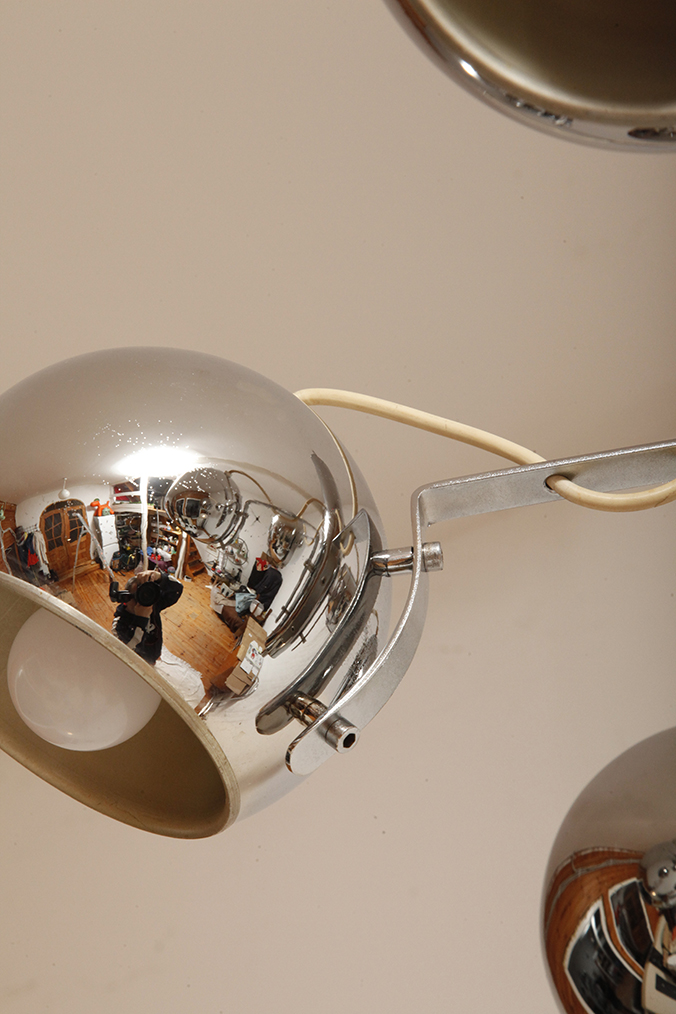 Konstrukcja bardzo prosta, bez zbędnych elementów dociążających, nieco surowa w swoim wyrazie może cieszyć oko. Poprowadzone na zwewnątrz białe kable od okrągłych kloszy lampy do jej środkowej cześci dodają lampie tego niewypowiedzianego „czegoś”.