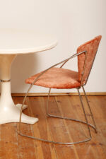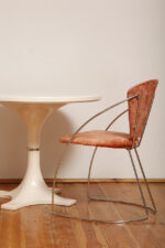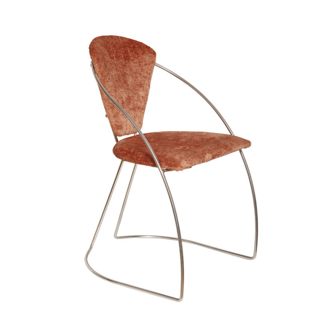 Rudo morelowe tapicerowane jadalniane/biurowe krzesło „Linda” na metalowej chromowanej konstrukcji, firma Arrben, Włochy, lata 80.