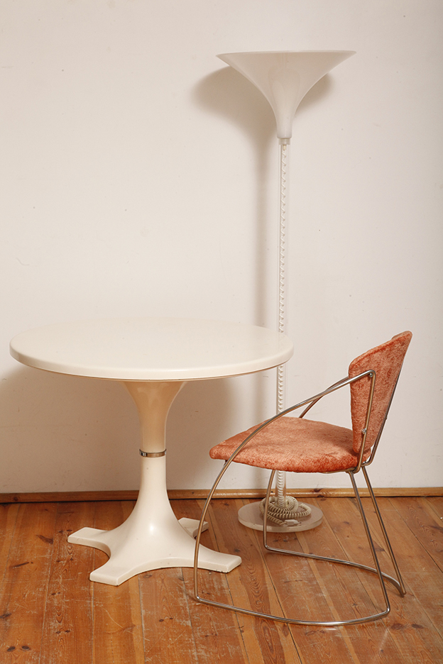 Chromowana konstrukcja zachowała się bez zarzutu. Nie ma żadnych ubytków, odbarwień, zaników chromowanej powłoki, co po tylu latach często się zdarza. Modernistyczne kształty mogą cieszyć oko.