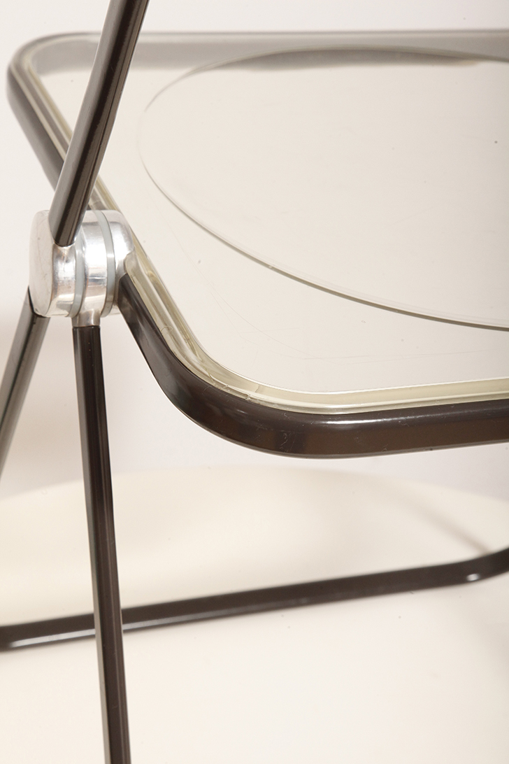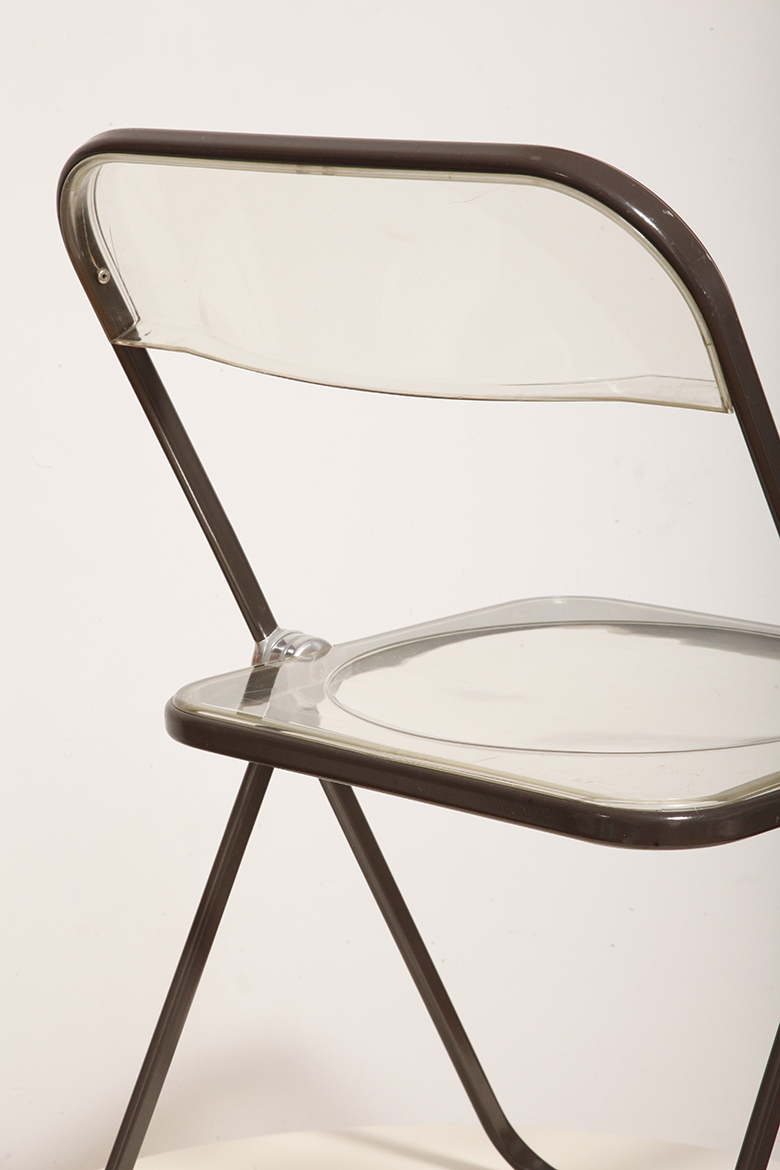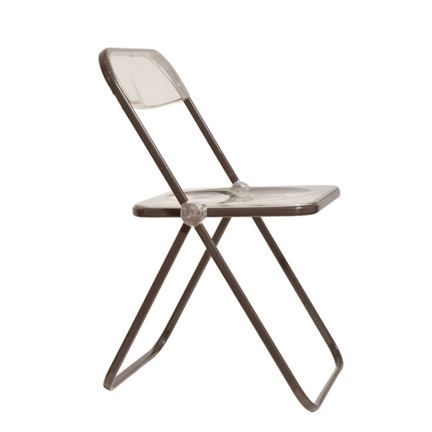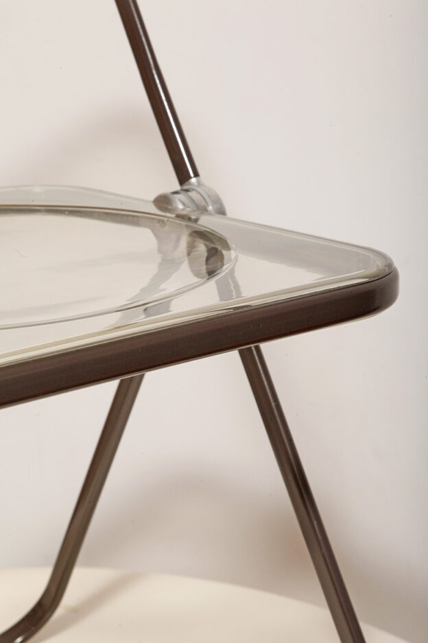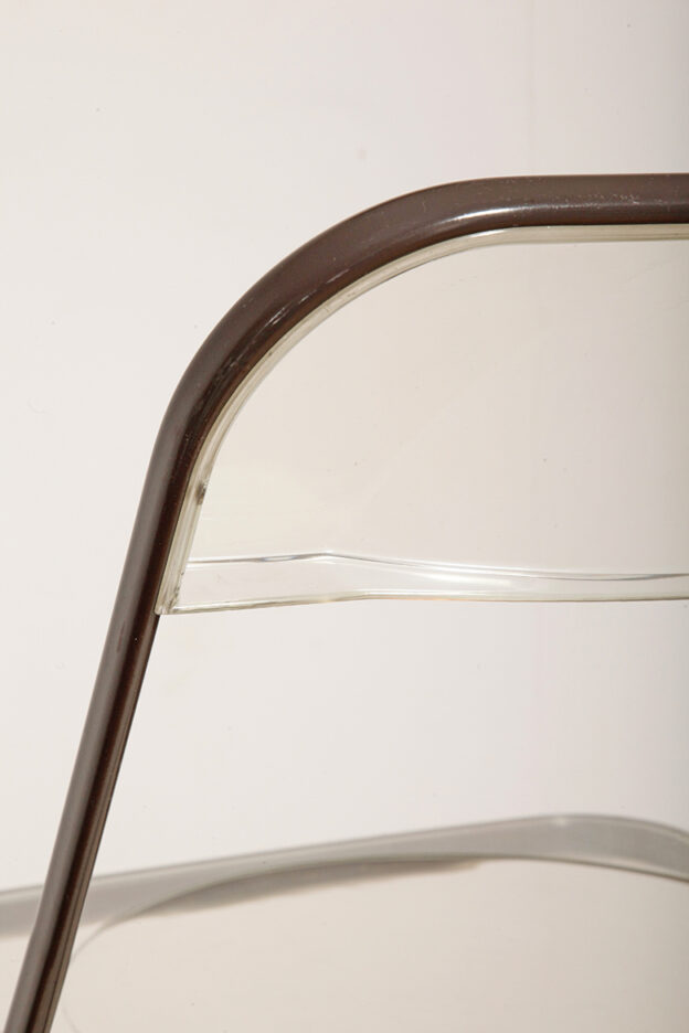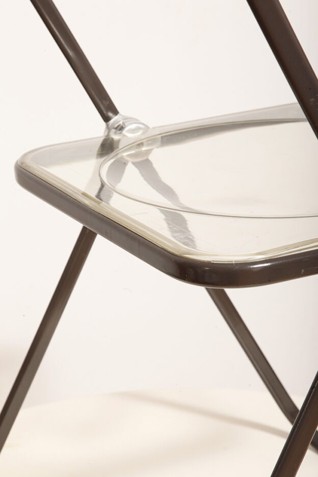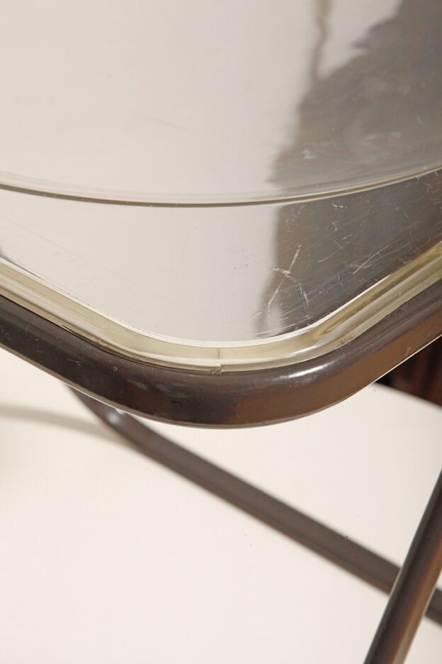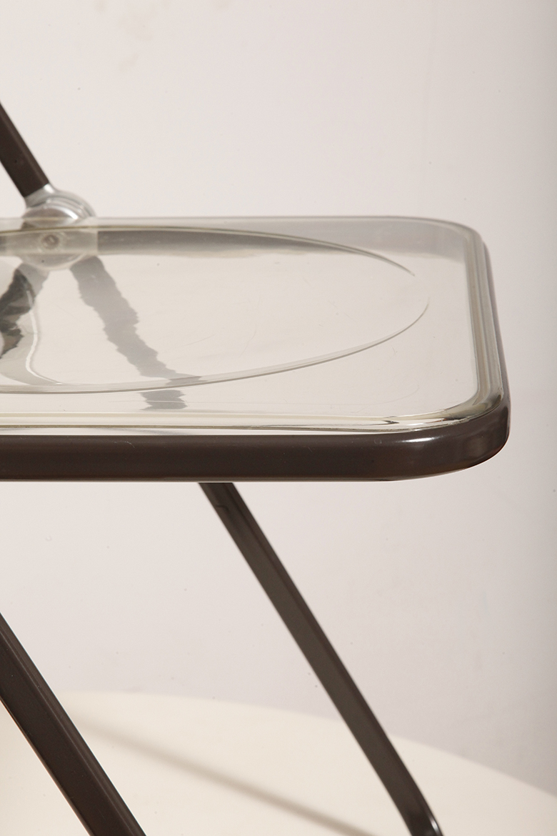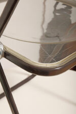 Składane lekkie krzesło „Plia” na metalowej ramie w kolorze kawy z mlekiem z siedziskiem i oparciem z transparentnego tworzywa / ABS, projekt Giancarlo Piretti dla Anonima Castelli, Włochy, wzór z 1967 roku