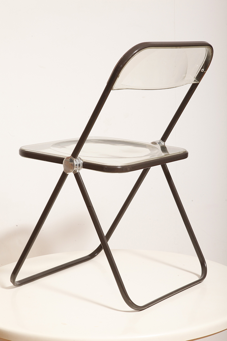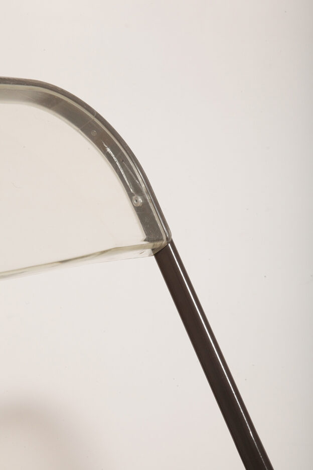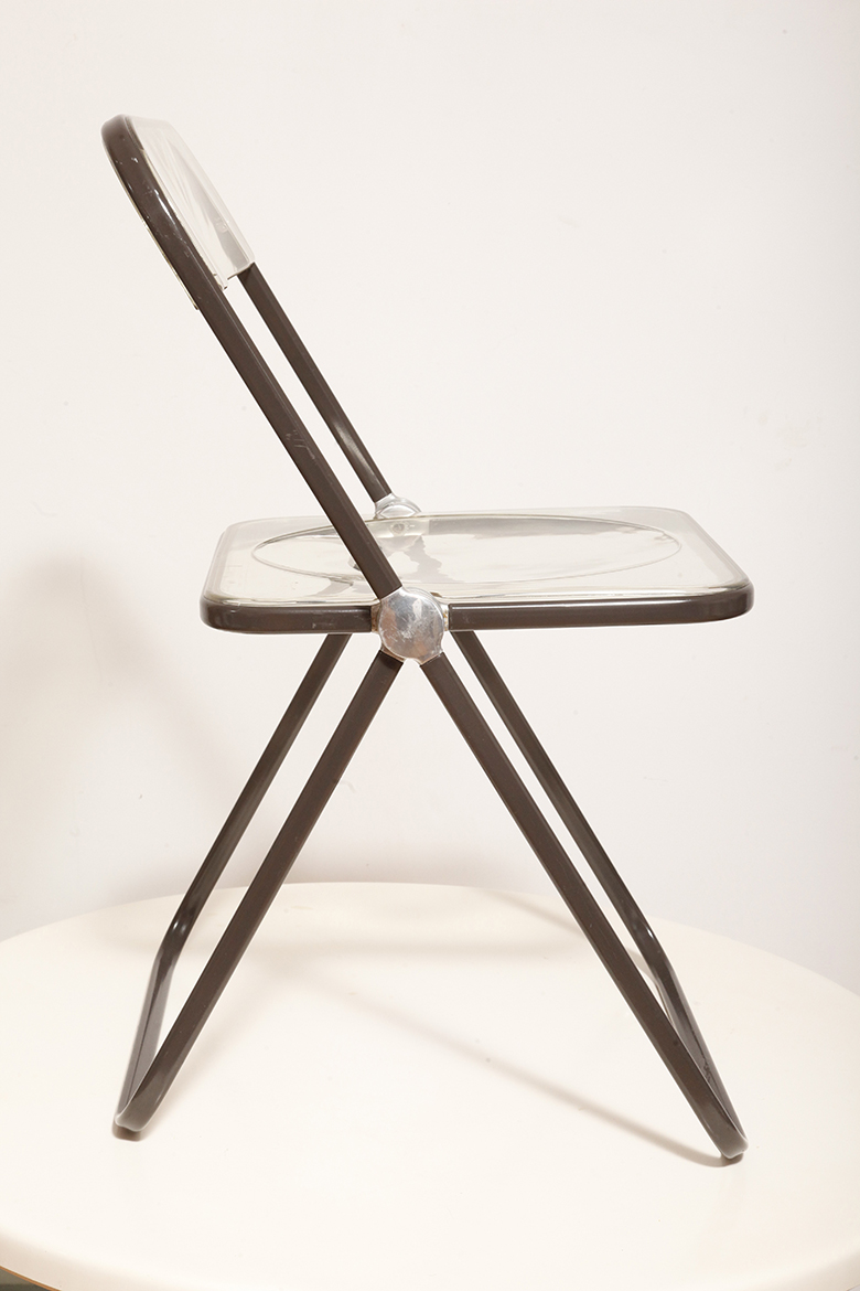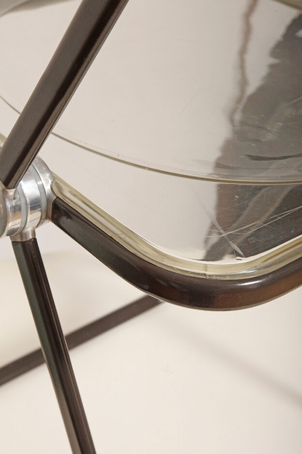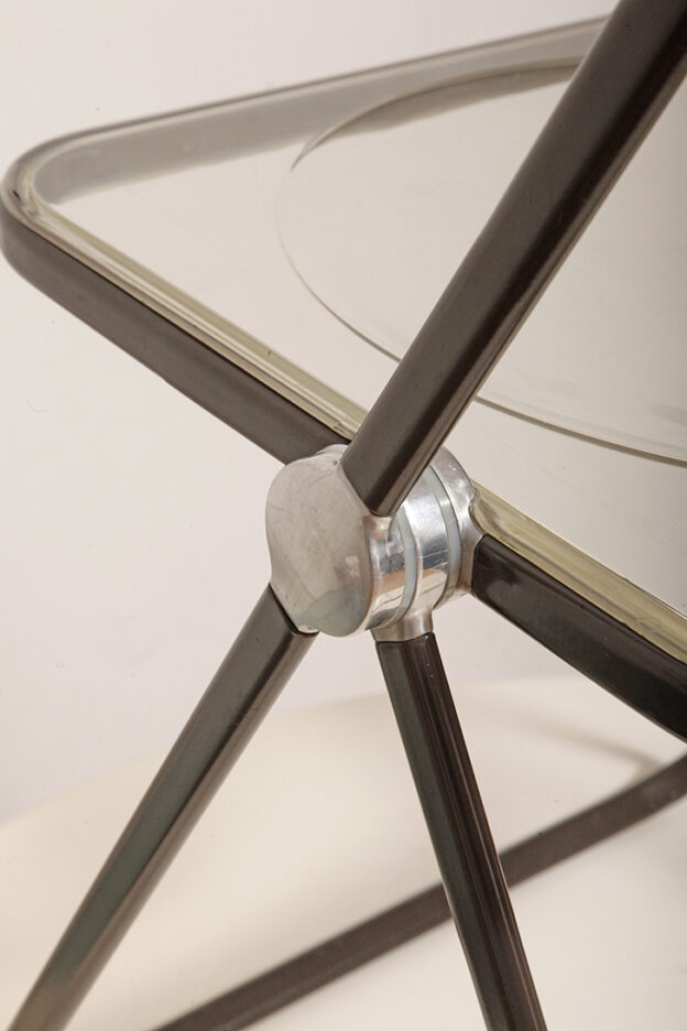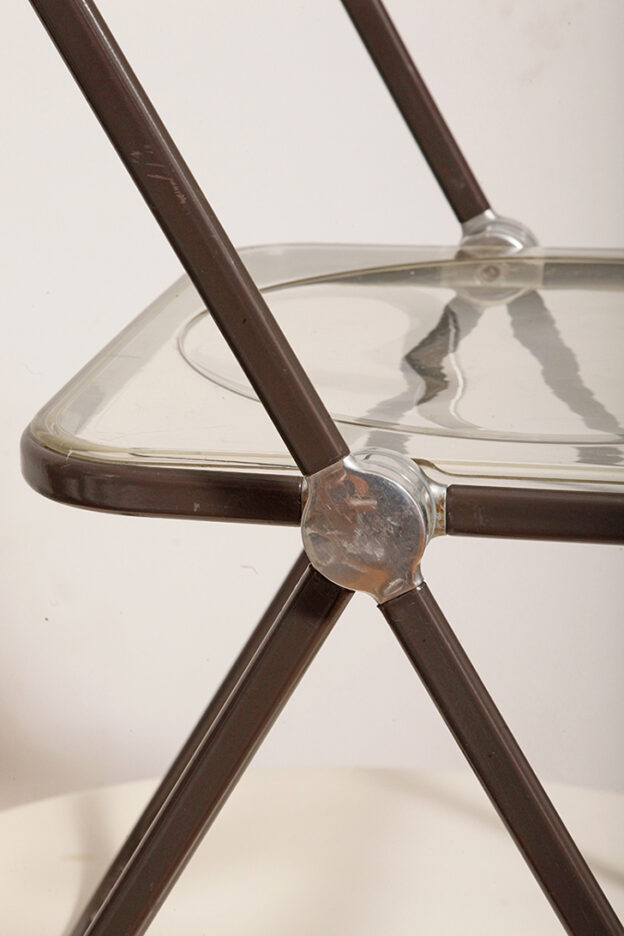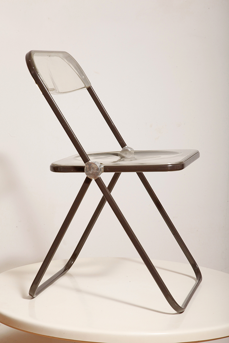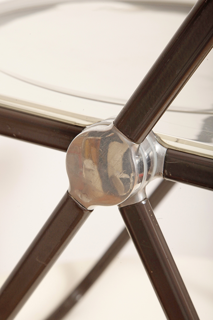 Składane lekkie krzesło „Plia” na metalowej ramie w kolorze kawy z mlekiem z siedziskiem i oparciem z transparentnego tworzywa / ABS, projekt Giancarlo Piretti dla Anonima Castelli, Włochy, wzór z 1967 roku
