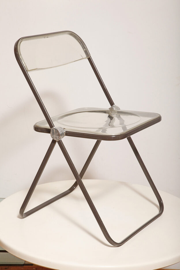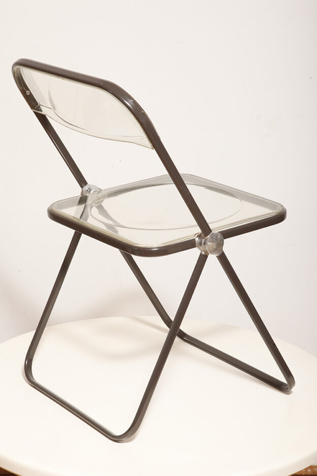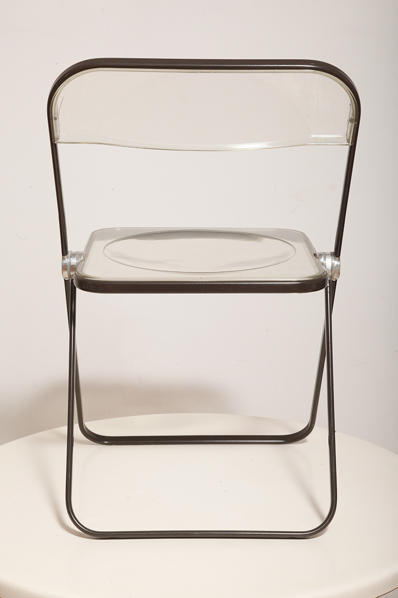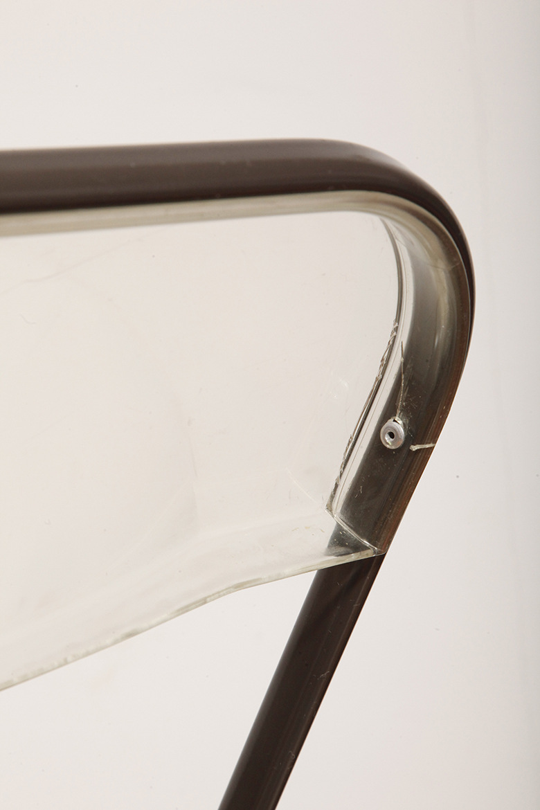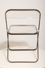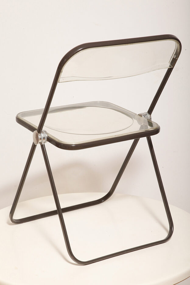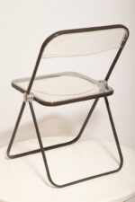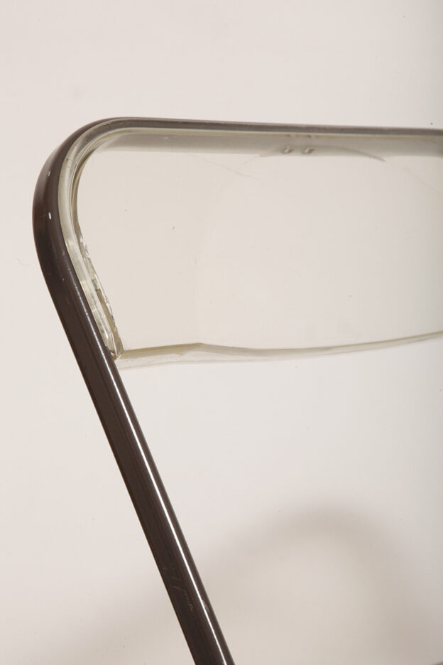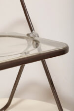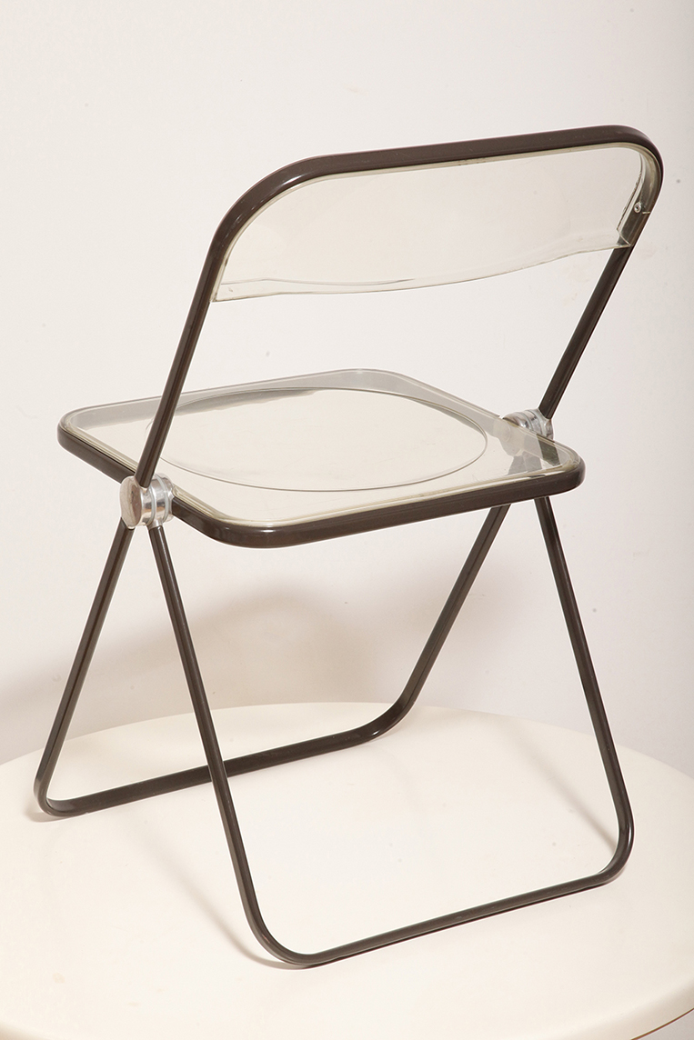 Składane lekkie krzesło „Plia” na metalowej ramie w kolorze kawy z mlekiem z siedziskiem i oparciem z transparentnego tworzywa / ABS, projekt Giancarlo Piretti dla Anonima Castelli, Włochy, wzór z 1967 roku