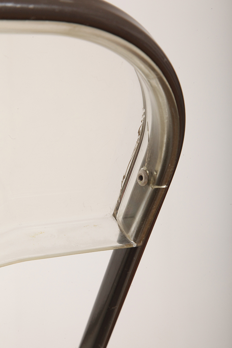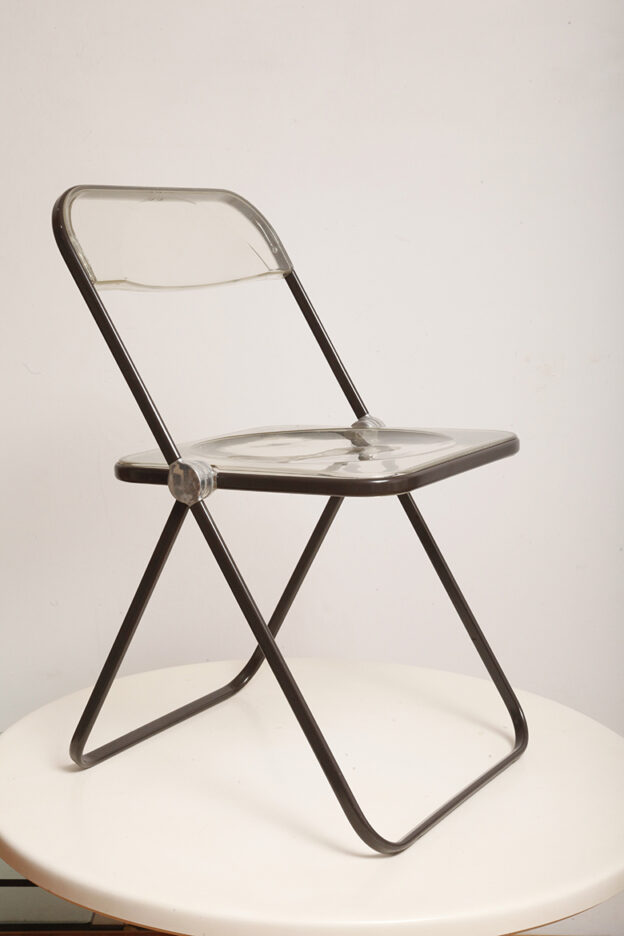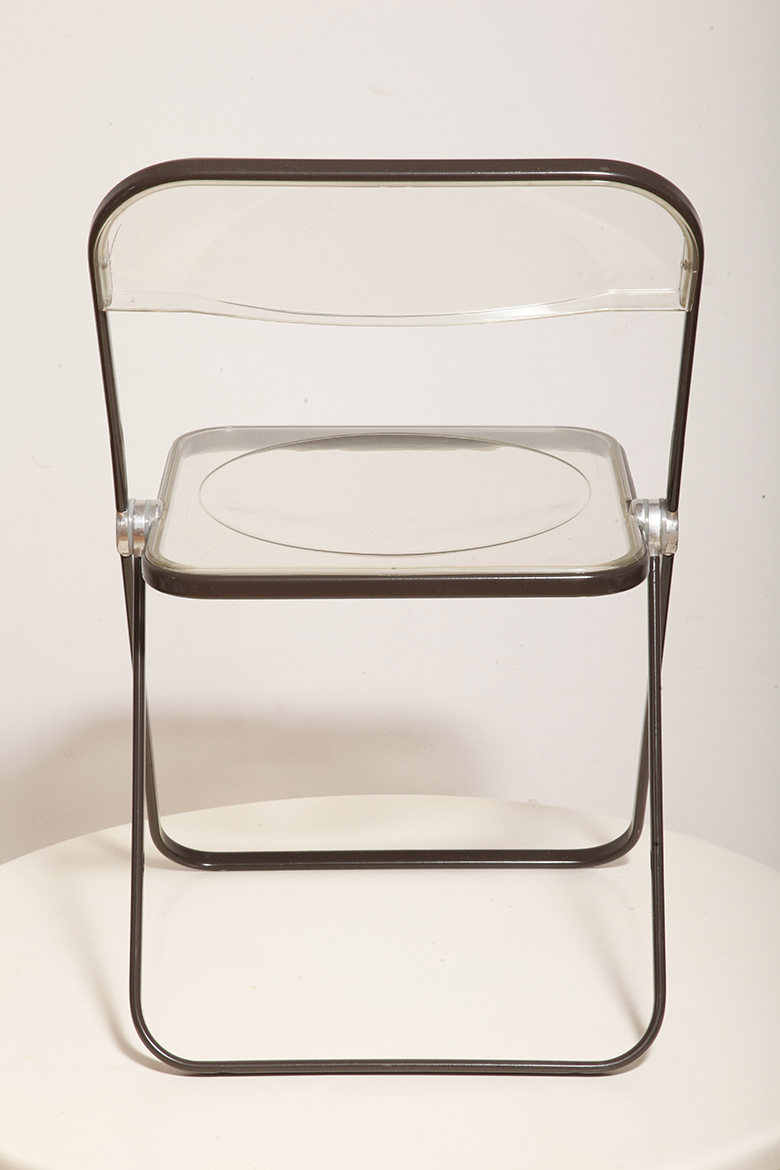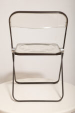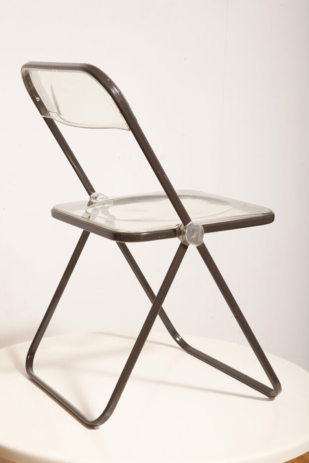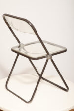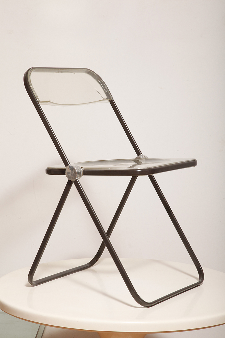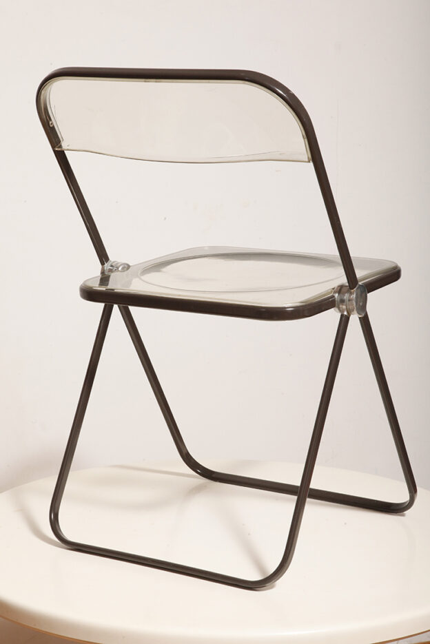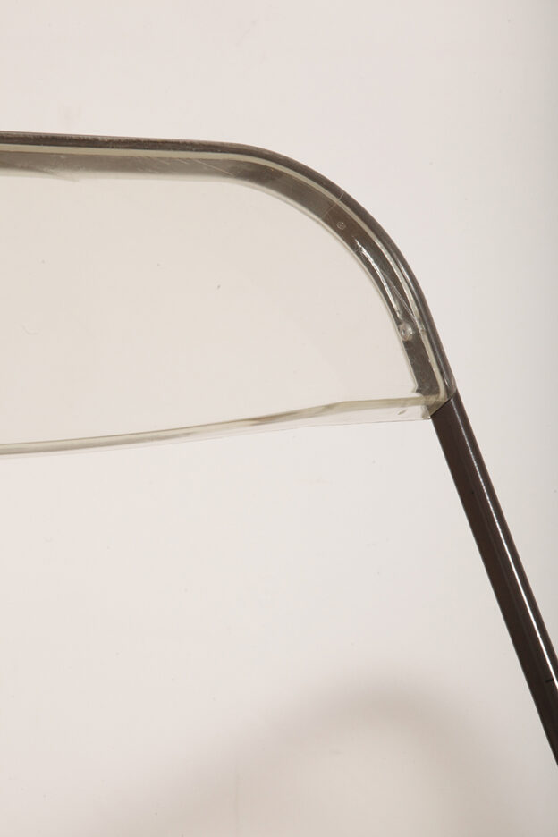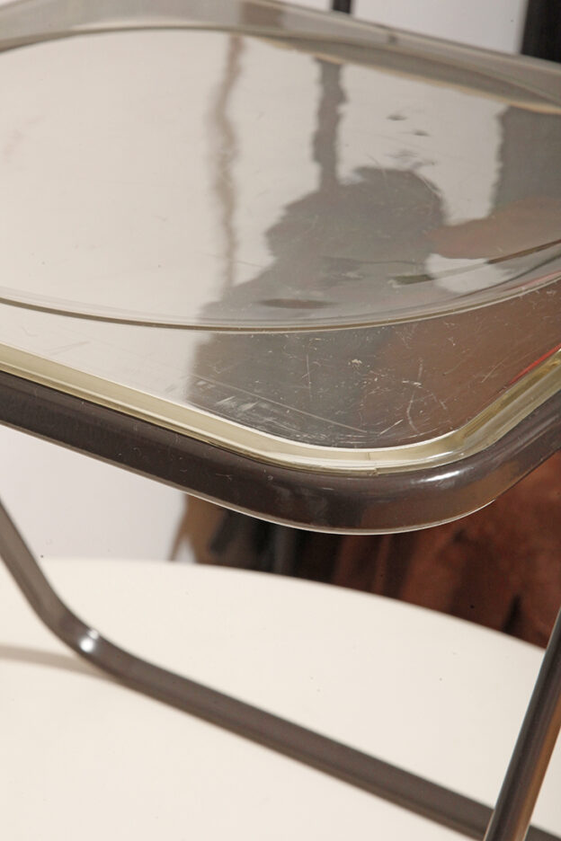 Składane lekkie krzesło „Plia” na metalowej ramie w kolorze kawy z mlekiem z siedziskiem i oparciem z transparentnego tworzywa / ABS, projekt Giancarlo Piretti dla Anonima Castelli, Włochy, wzór z 1967 roku