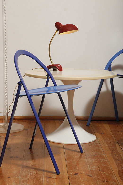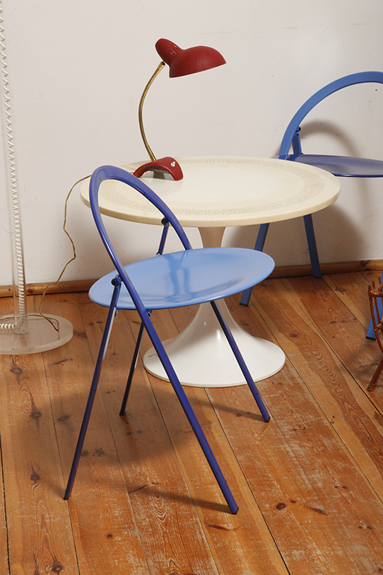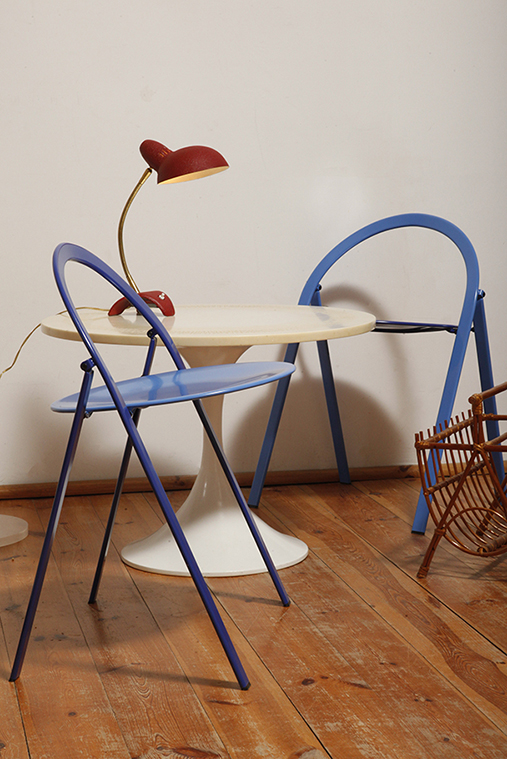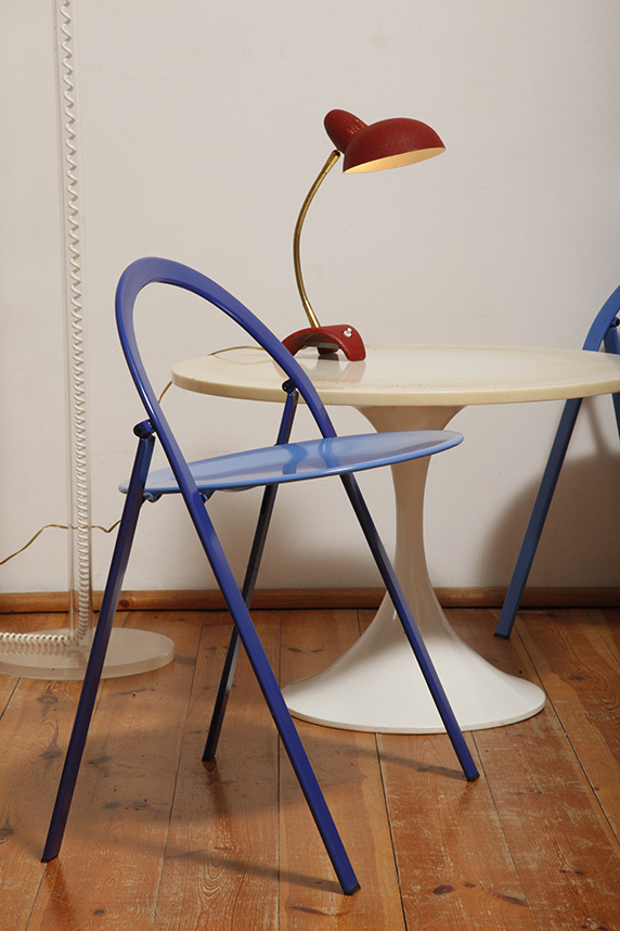 Te krzesła (mamy trzy takie same) doskonale oddają śmiałą i radosną estetykę okresu postmodernistycznego, z wyraźnymi odniesieniami do stylu Memphis, czy też czystych form sztuki ery kosmicznej/minimalistycznej. Dzięki temu stanowią idealną inwestycję dla kolekcjonerów, projektantów wnętrz i miłośników wzornictwa vintage.