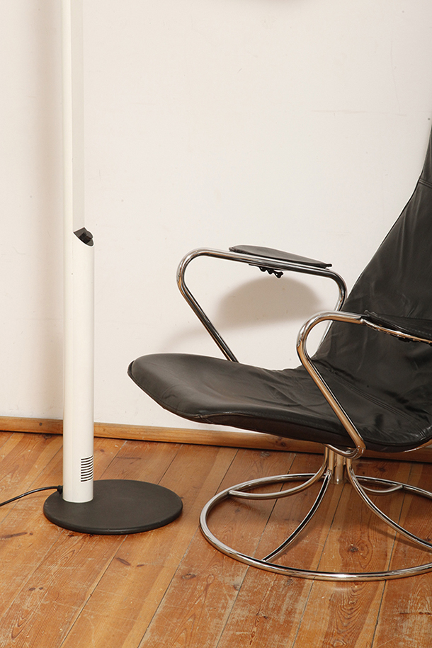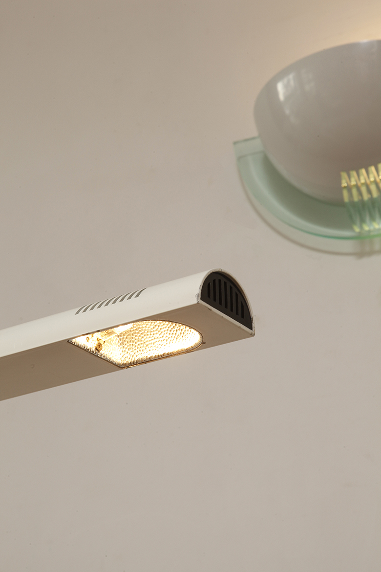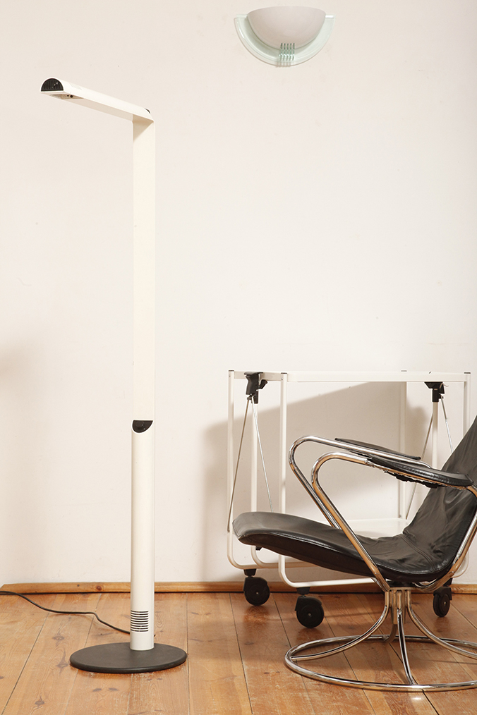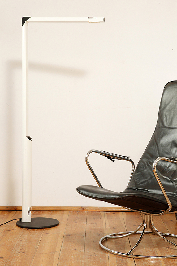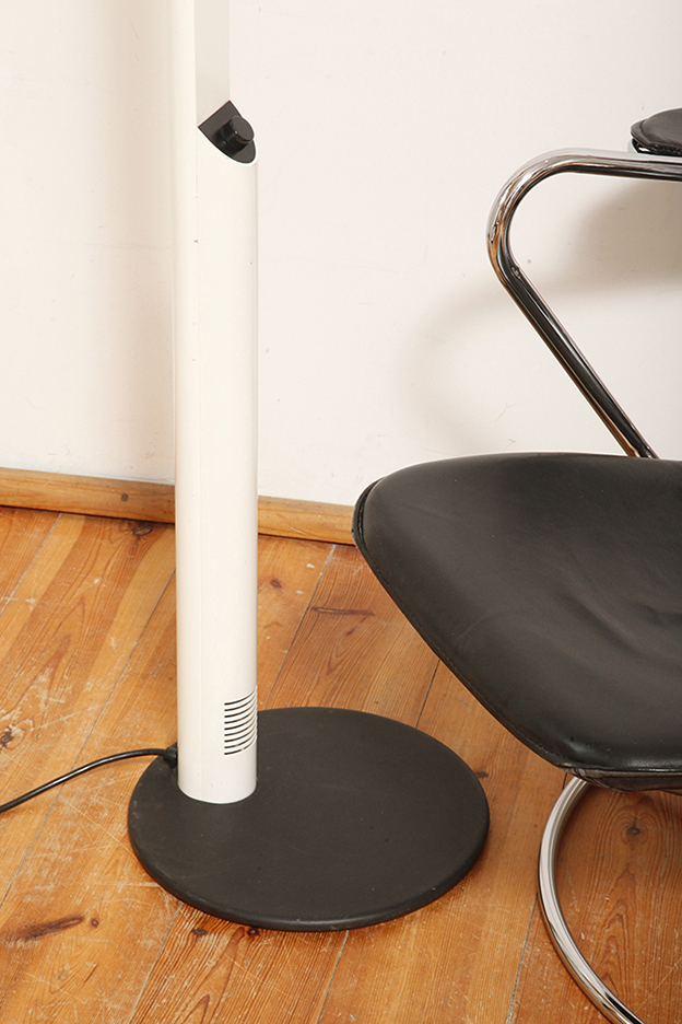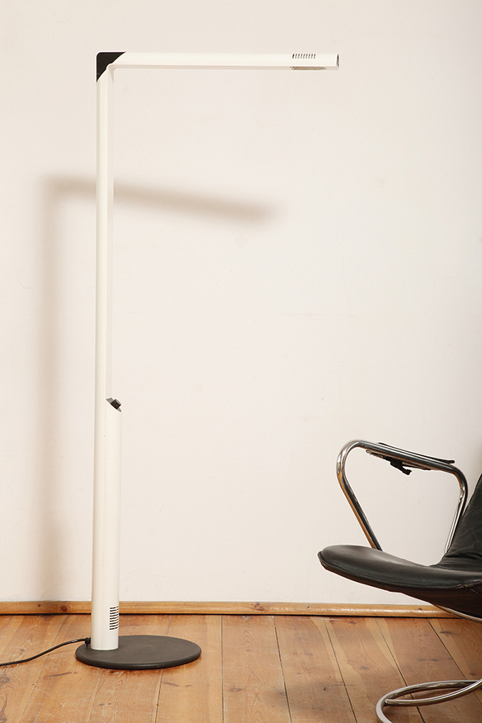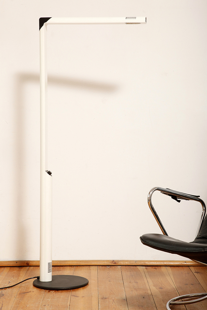 Dyfuzor można obracać w celu rozproszenia światła bezpośredniego, lub pośredniego, w wersji podłogowej. Można regulować jego wysokość przesuwając po głównym czarnym metalowym ramieniu w kształcie kątownika.