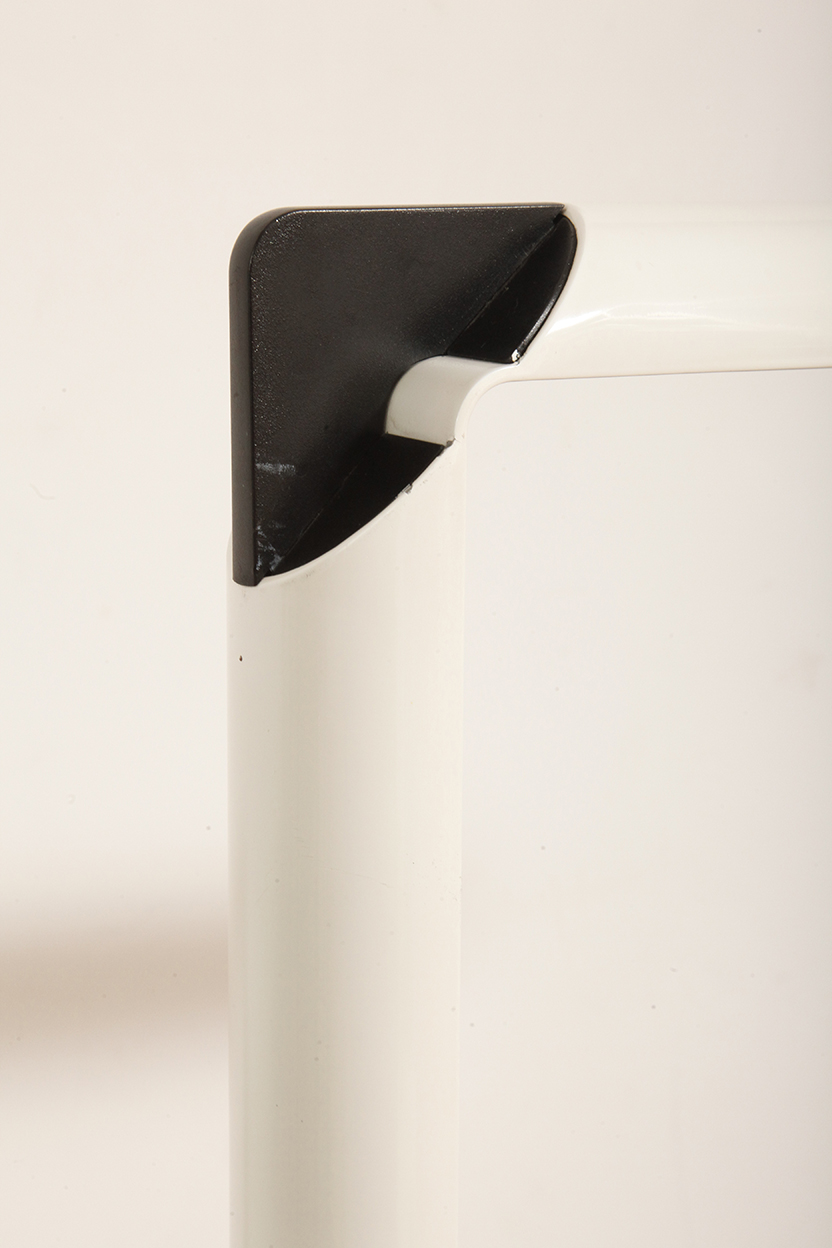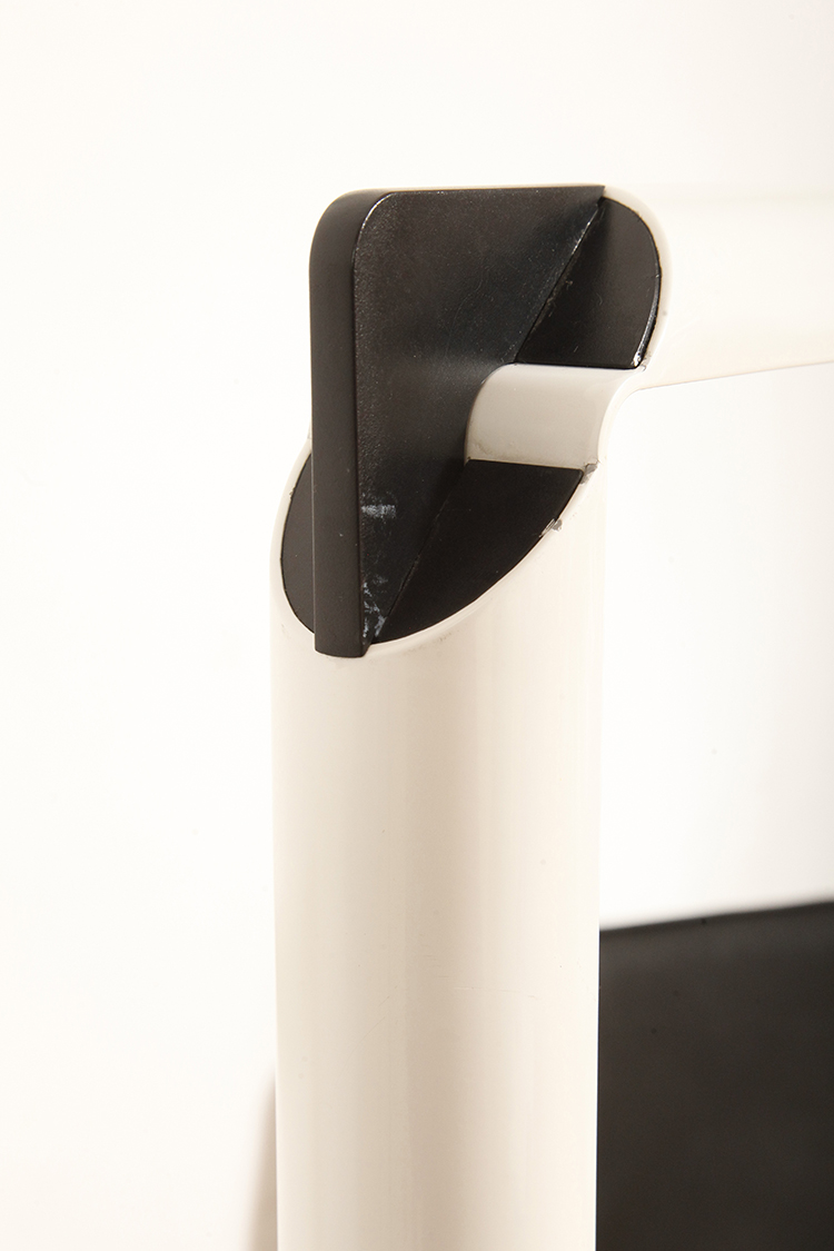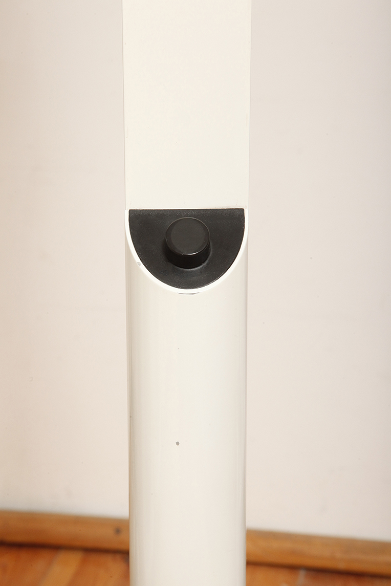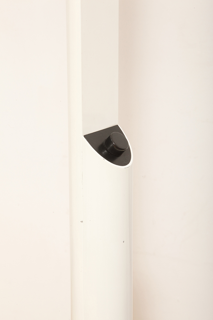 Smukła metalowa minimalistyczna, jednopunktowa, postmodernistyczna biała z czarnymi elementami lampa podłogowa „Veronica”, Gianfranco Frattini dla Luci illuminazione (Lucitalia), Włochy, wzór z 1979 roku