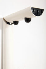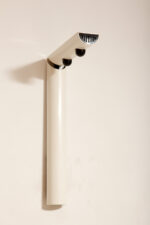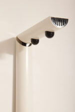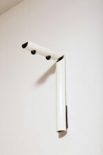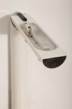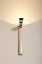 Postmodernistyczna elegancja, czyli kinkiety „Daniele” (mamy dwie sztuki tych kinkietów). Zaprojektowane przez Gianfranco Frattini dla włoskiej firmy oświetleniowej Luci są świadectwem wyrafinowanej wrażliwości projektanta i jego mistrzostwa w formie rzeźbiarskiej. Wykonane w zimnej bieli lampa z lat 80. odzwierciedla zabawną geometrię i ekspresyjny minimalizm, które definiowały postmodernistyczny design, jednocześnie zachowując ponadczasową elegancję.