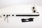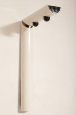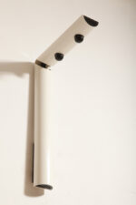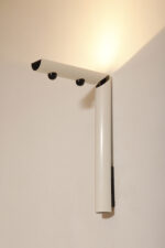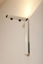 Smukły biały z czarnymi dodatkami minimalistyczny metalowy kinkiet/lampa ścienna „Daniela” w kształcie odwróconej litery „L”, projekt Gianfranco Frattini dla firmy Luci, Włochy, lata 80.