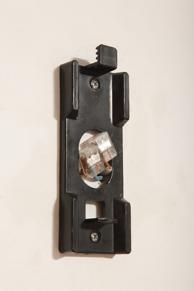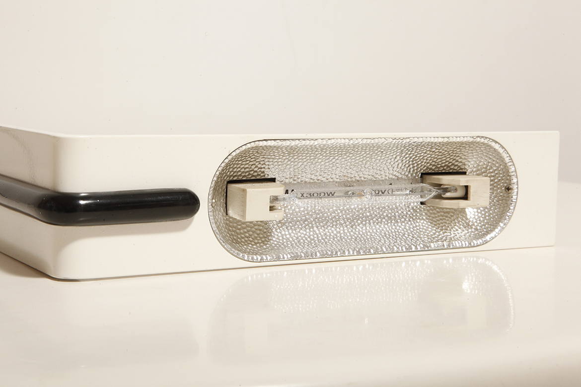 Zachowane w bardzo dobrym stanie vintage, sprawdzone elektrycznie. Jedynie w jednym z dwóch czarnych plastikowych płytek montażowych do ściany brakuje niedużego elementu.