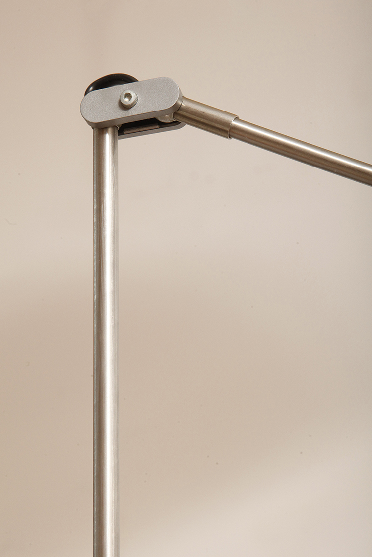 Ciężka choć nieduża podstawa i bardzo lekka konstrukcja z łamanym ramieniem osadzonym na łożysku kulkowym. Dzięki temu źródło światła można bardzo precyzyjnie ustawiać.