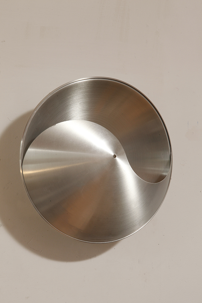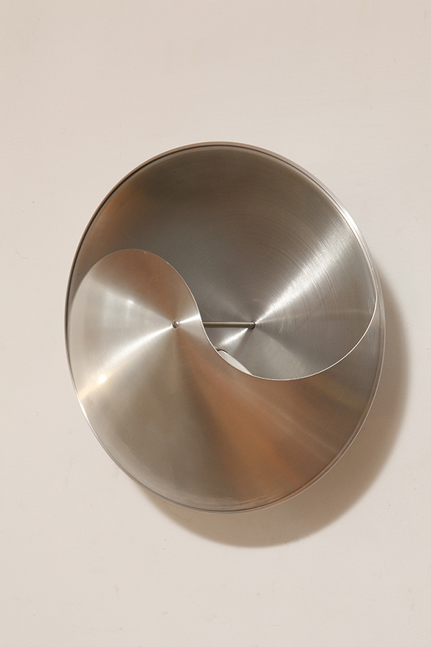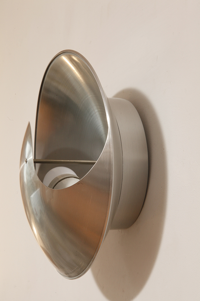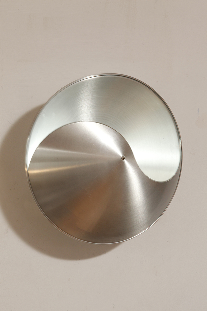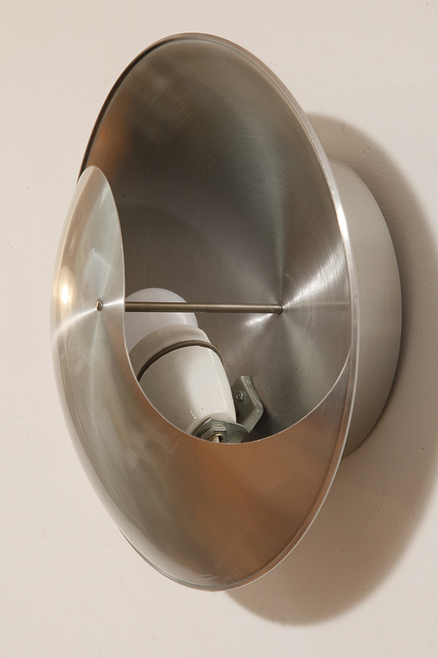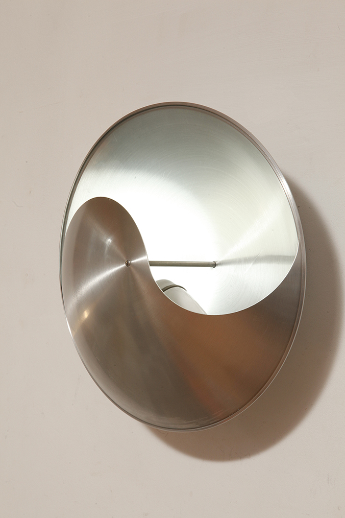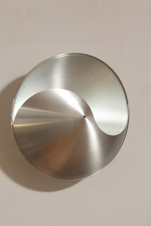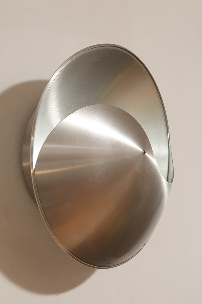 Srebrny lekki jednopunktowy kinkiet/lampa ścienna ze szczotkowanego aluminium „Yin-Yang” TYP C1636, projekt Hermiana Sneydersa de Vogel dla Raak Amsterdam, Holandia, lata 70.