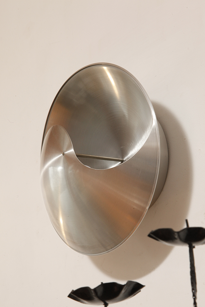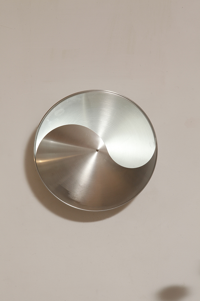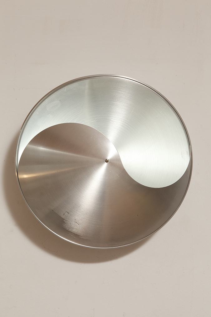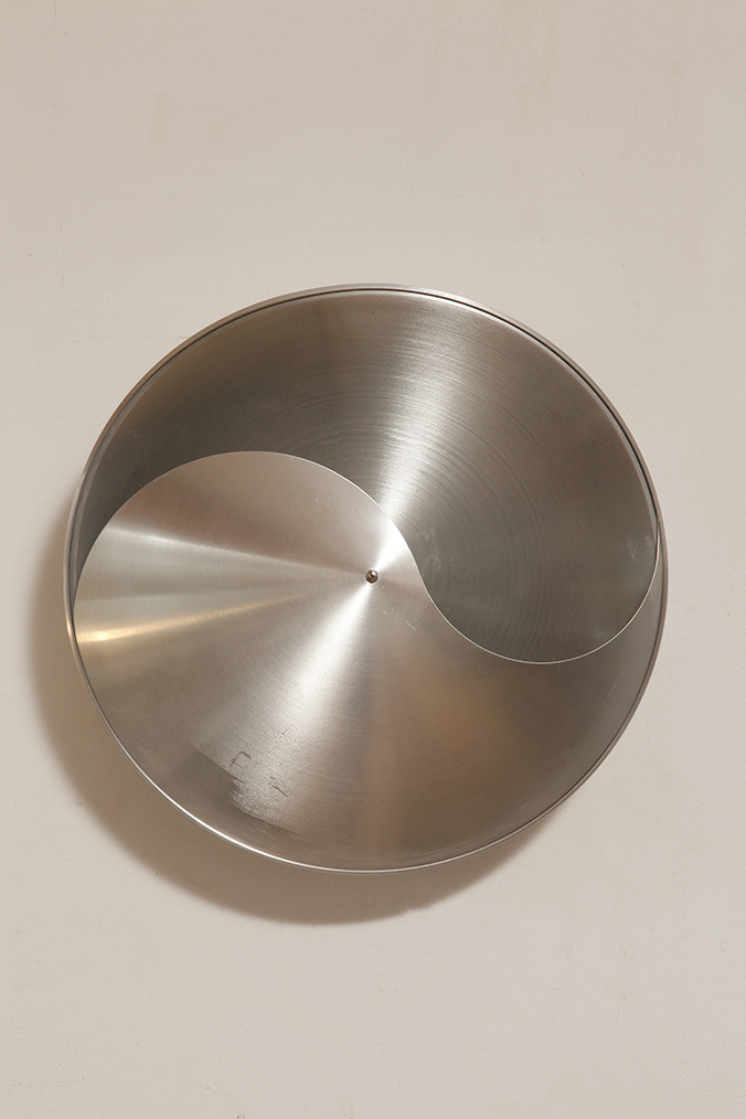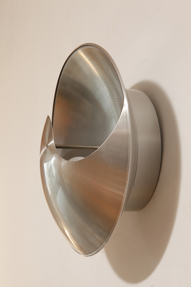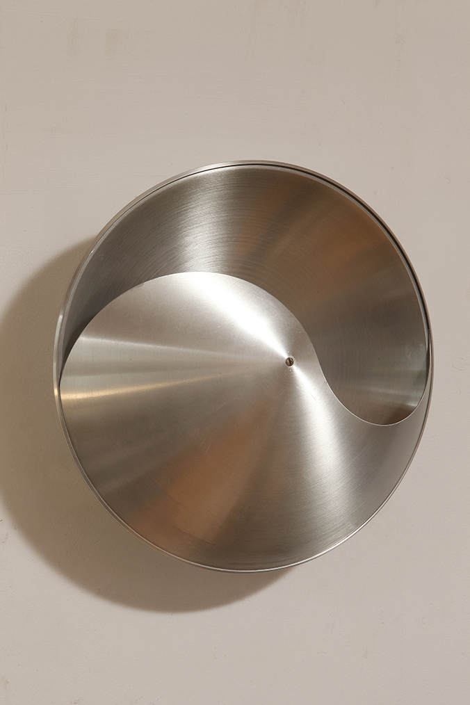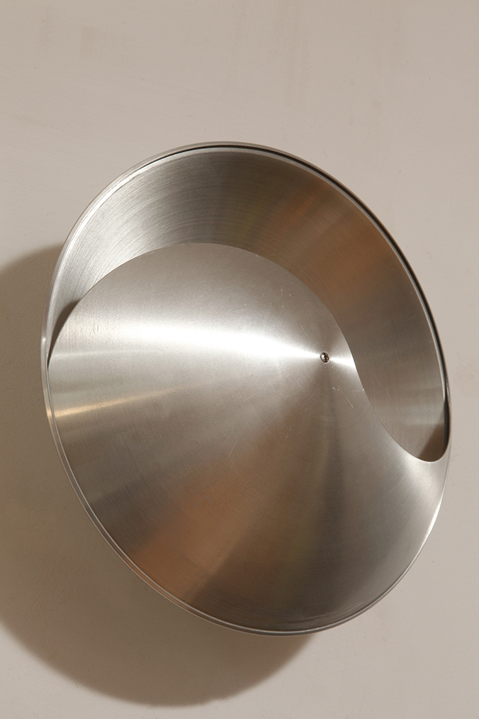 Srebrny lekki jednopunktowy kinkiet/lampa ścienna ze szczotkowanego aluminium „Yin-Yang” TYP C1636, projekt Hermiana Sneydersa de Vogel dla Raak Amsterdam, Holandia, lata 70.