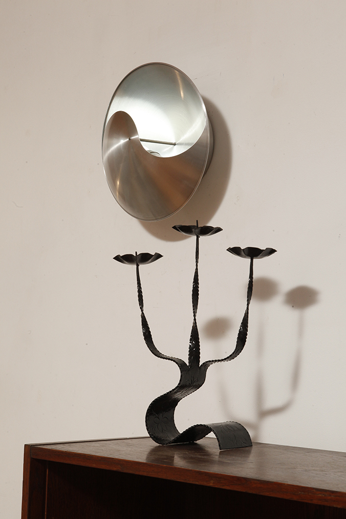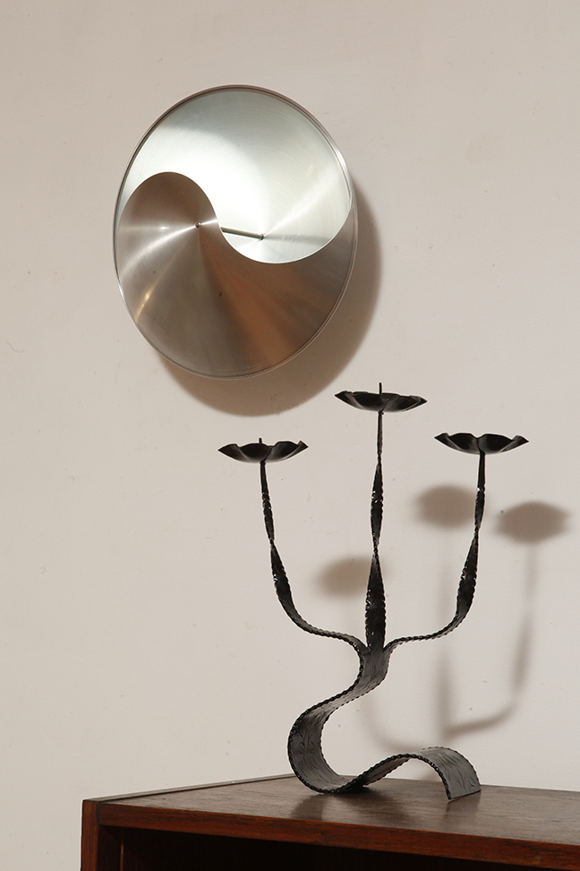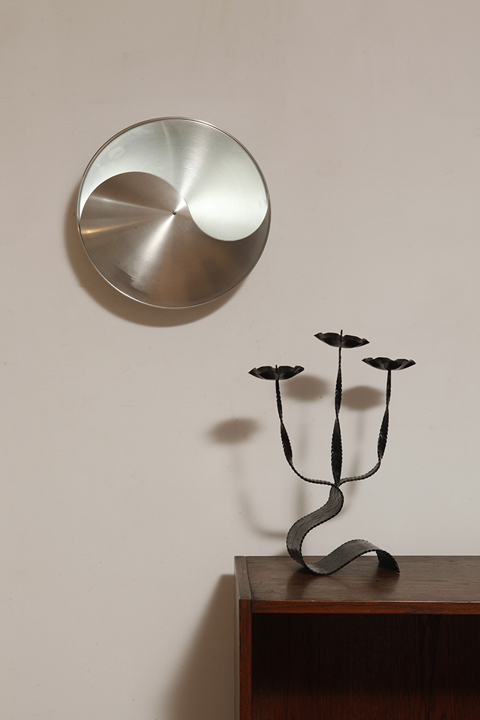 Projekt tych wyrafinowanych lamp „JinJang”, które oprócz numeru typu C1636 nazywano również „Puntkomma”, został stworzony przez Hermian Sneyders de Vogel. Holenderska projektantka, która oprócz szerokiej gamy projektów mebli, mogła również pochwalić się projektowaniem biżuterii. Ten zestaw pięciu lamp wykonany jest ze szczotkowanego aluminium, z czego trzy są w kolorze miedzi. Pochyła linia pośrodku, nawiązująca do starożytnego chińskiego znaku kosmicznej dwoistości Yin-Yang, stanowi część klosza, za którym znajduje się źródło światła. Dzięki wygiętej formie lampy światło jest pięknie rozproszone i pozostaje „uwięzione” w kloszu. Naprawdę piękny efekt.