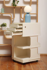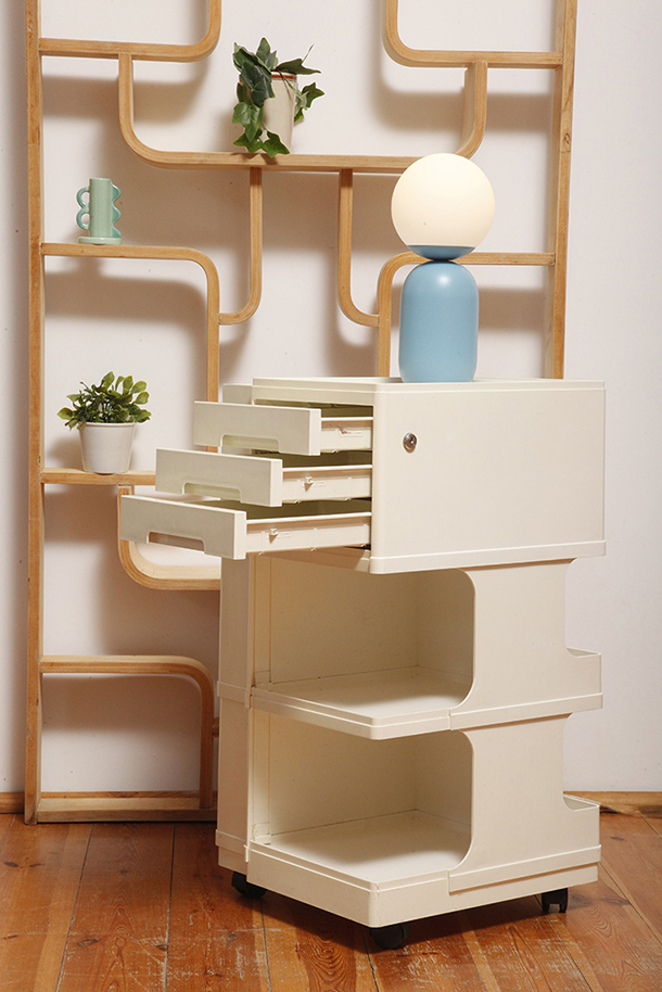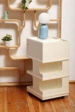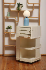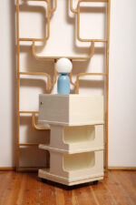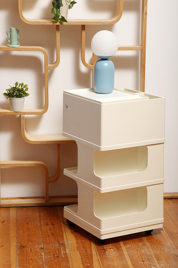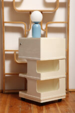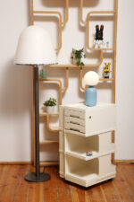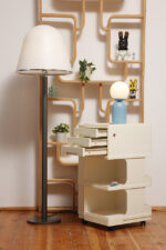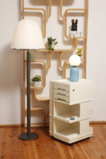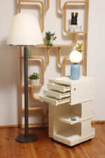 Żółta lampa podłogowa ze stolikiem, Polska, lata 70.