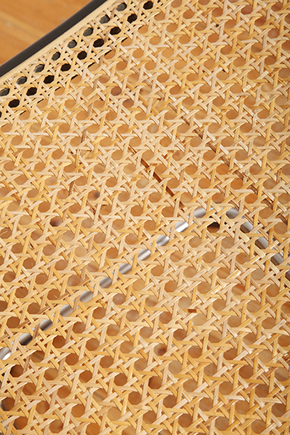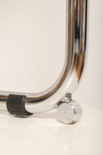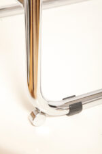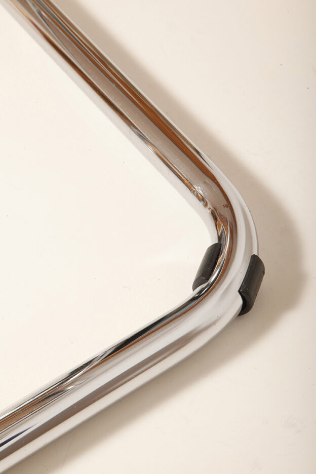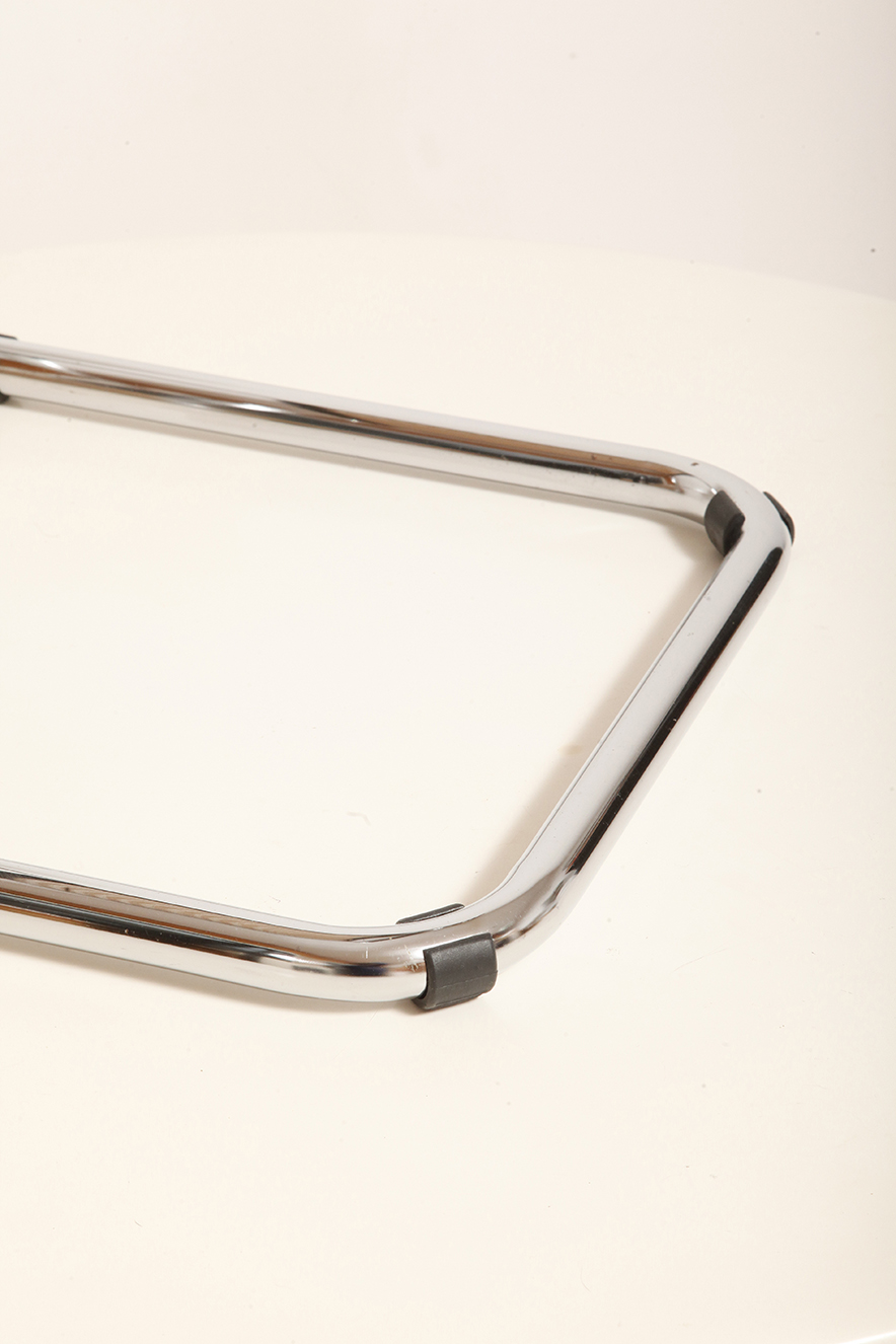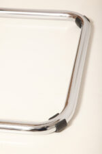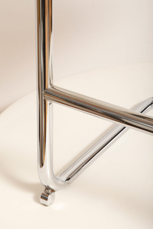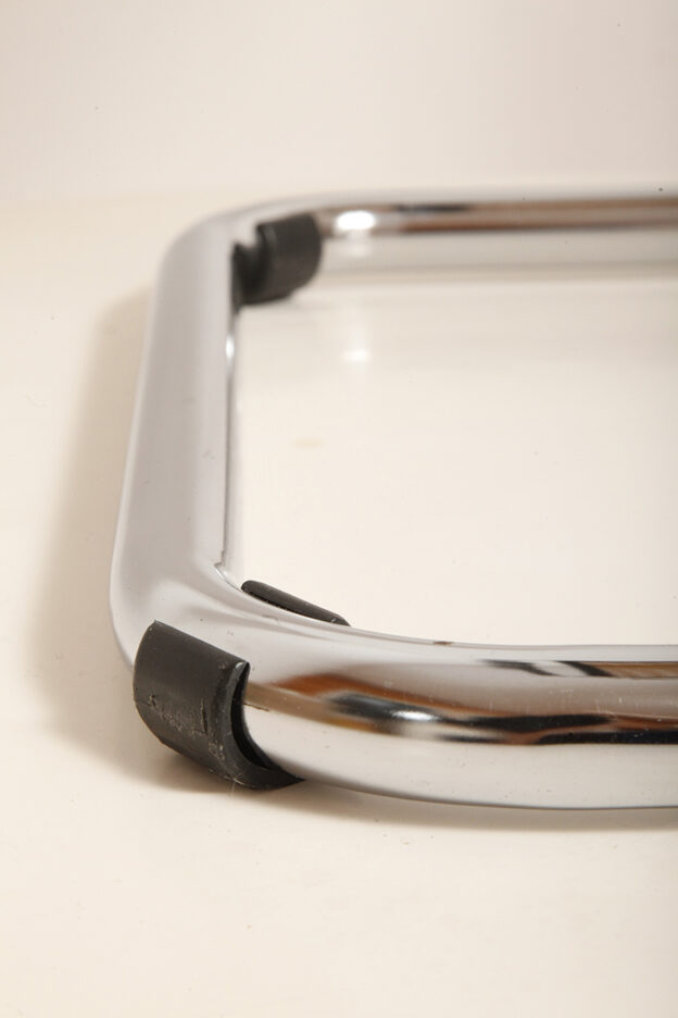 Pokrycie rattanowe bez ubytków i dziur, nie jest nigdzie zerwane, a chromowana powierzchnia na rurach jest właściwie bez zarzutu z wyjątkiem kilku punktowych mimi oznak czasu, bardziej ziarnistych i niewidocznych w zasadzie w codziennym użytkowaniu. Z jednym wyjątkiem pod jednym z fabrycznych okrągłych blokad na dole jednego hoker jest większy ubytek chromowanej powierzchni.