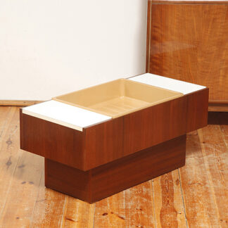 Dębowa szafka/komoda z parą przesuwanych drzwi ze sklejki lakierowanych na różowy i jasno kremowy kolor, TYP U 450, projekt Jiri Jiroutek dla Interier Praha, Czechosłowacja, wzór z 1958 roku