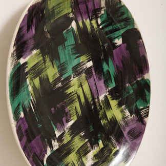 Dekoracyjny/stołowy porcelitowy wielokolorowy ręcznie malowany talerz, Zakłady Porcelitu Stołowego Pruszków, Polska, lata 70.